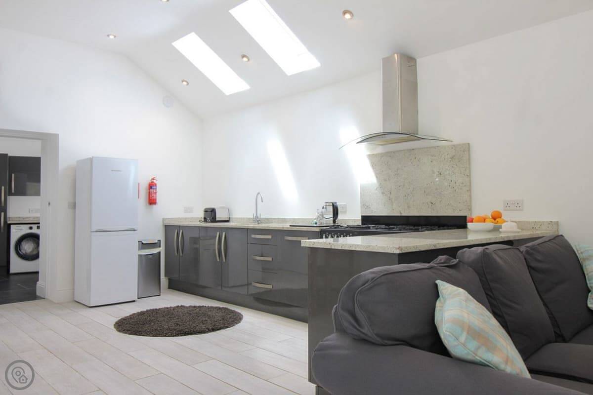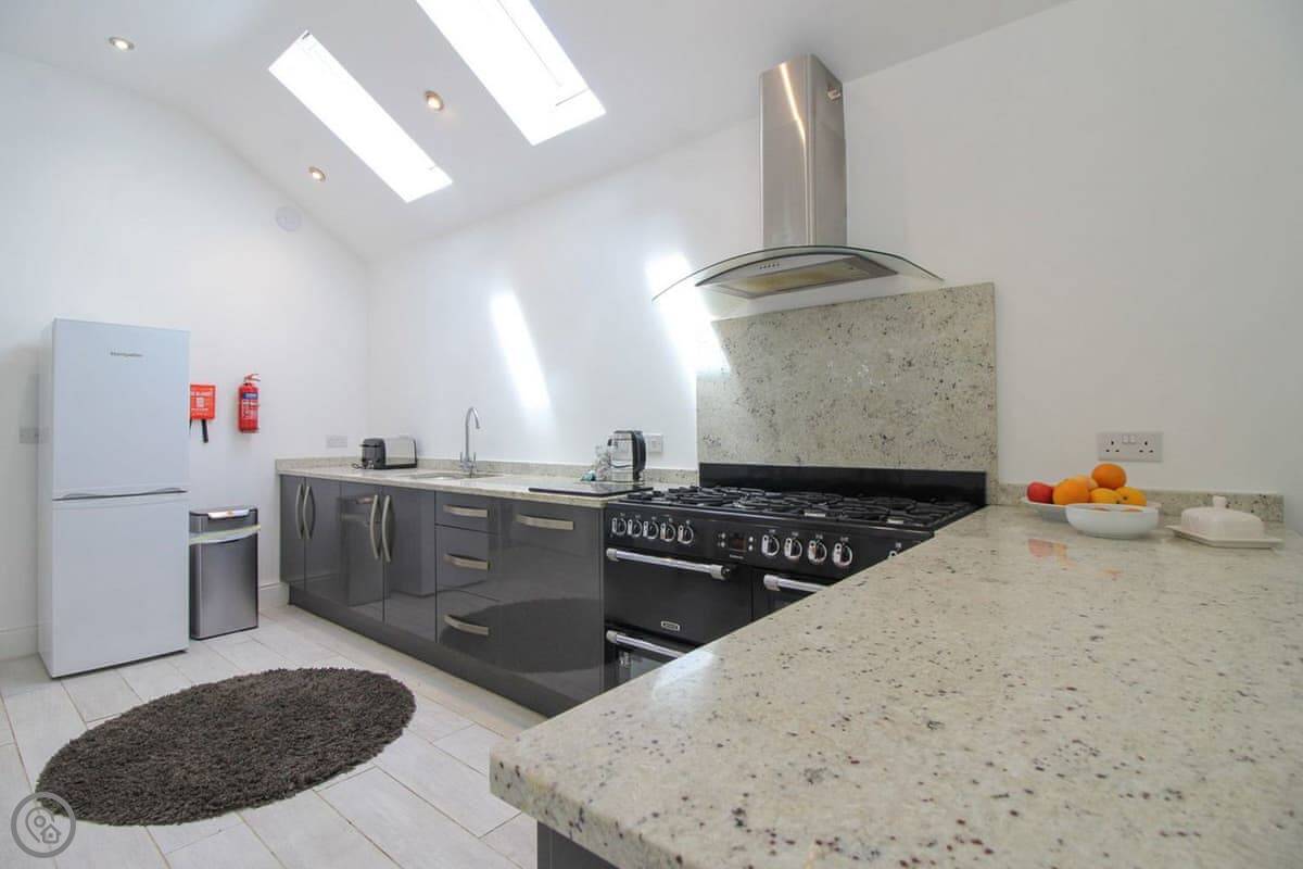 The kitchen is proper, with a range oven, dishwasher, and good space. You can cook in there. The private courtyard out the back gets the sun in the evening.