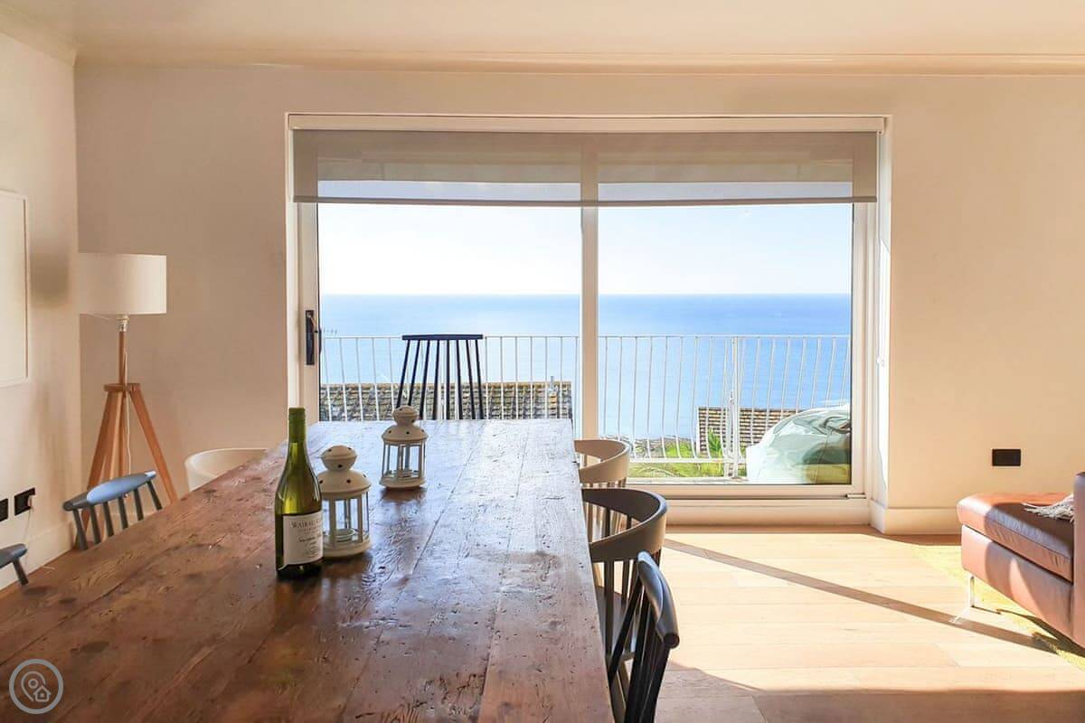 Surf Song is fantastic, reverse-style property which has been extensively renovated during the winter of 2020/2021 and has uninterrupted 180° sea views from Looe island to Rame Head. The house features pieces from well-known designers and original photography.
