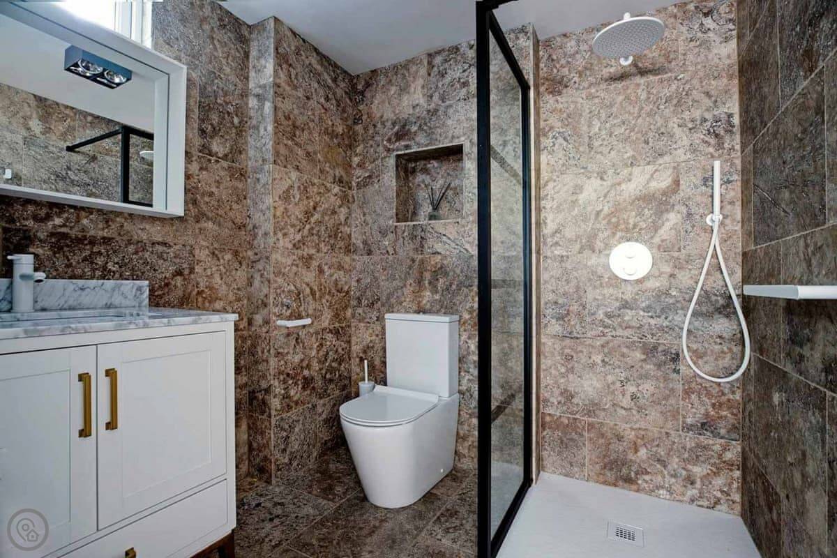 The open plan living space on the first floor maximises the magical, ever-changing sea views. A full-width balcony is a superb spot for an evening glass while watching the glistening sea below. An immaculate kitchen with all modern devices, including a large range cooker and marble work surfaces means you’ll love cooking up a holiday feast, gather round the dining table and take in the views through the patio doors. Tucked behind the living area is a TV room with comfortable L-shaped sofa for relaxing after a busy day exploring. Four stunning bedrooms; one with a super kingsize bed and en-suite shower room; one with kingsize bed and the final two with double beds; all furnished with the most beautiful attention to detail and bathrooms that exude modern decadence.