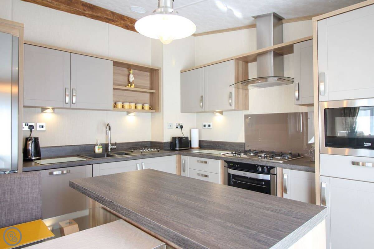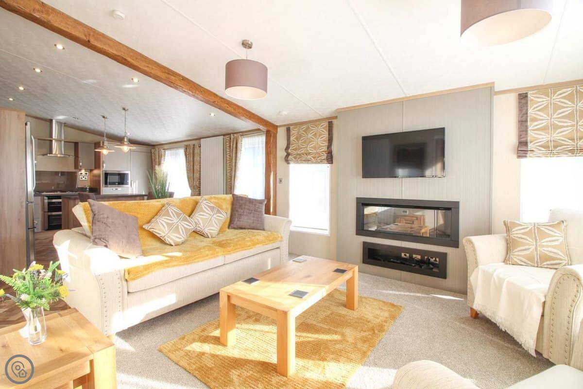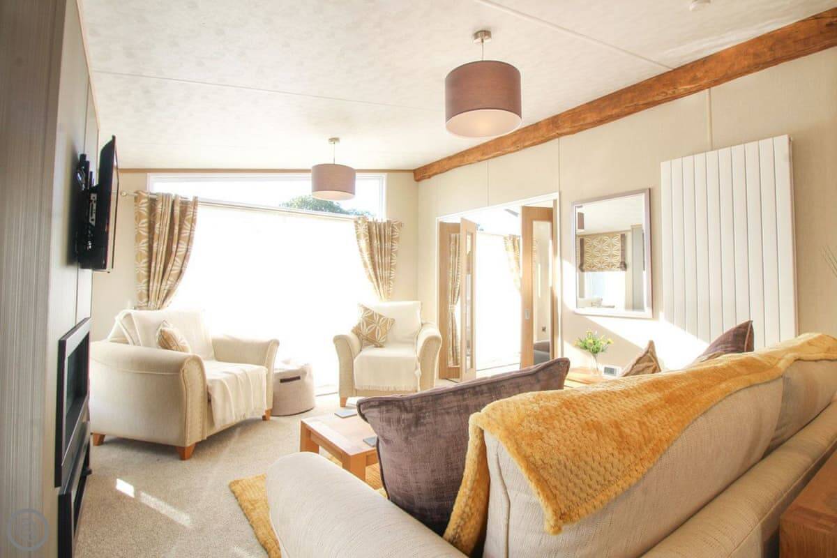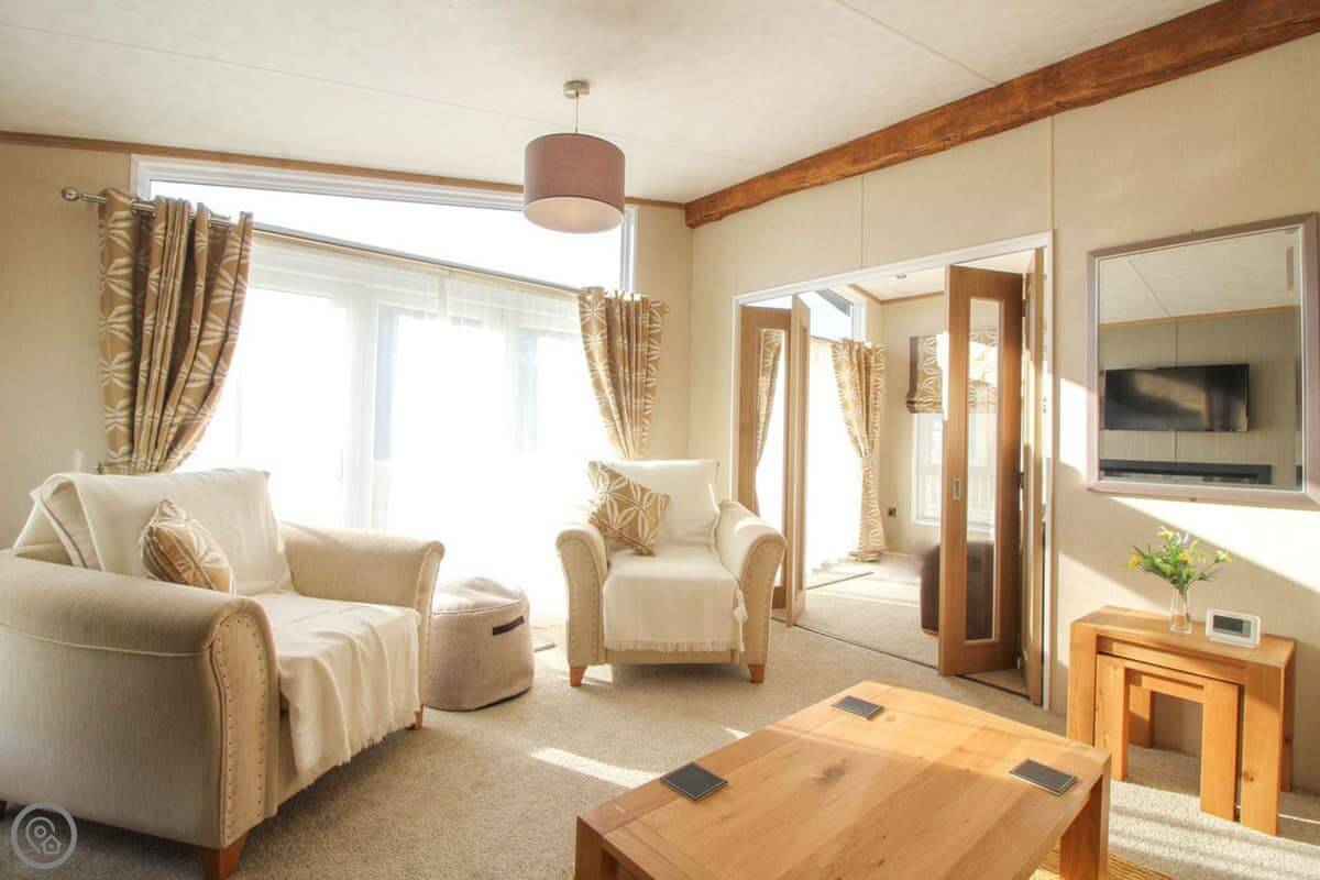 As you enter Sun Valley through an avenue of ancient horse chestnut trees, it’s apparent right away that this is no ordinary holiday park. Sun Valley is 20 acres of beautifully tended grounds in a quiet, picturesque valley only one mile from a lovely beach. River Lodge is beautifully presented and equipped with a fantastic open plan living space and a second small living room, both opening onto the south-facing deck. With plenty of comfortable seating and a fully equipped kitchen this is a fantastic lodge to stay in for a relaxing holiday. The bedrooms are superb, with vaulted ceilings and stylish decor. There is an en-suite shower room to the master bedroom as well as a twin room and a family bathroom. This really is a home from home with all the modern facilities you would expect.