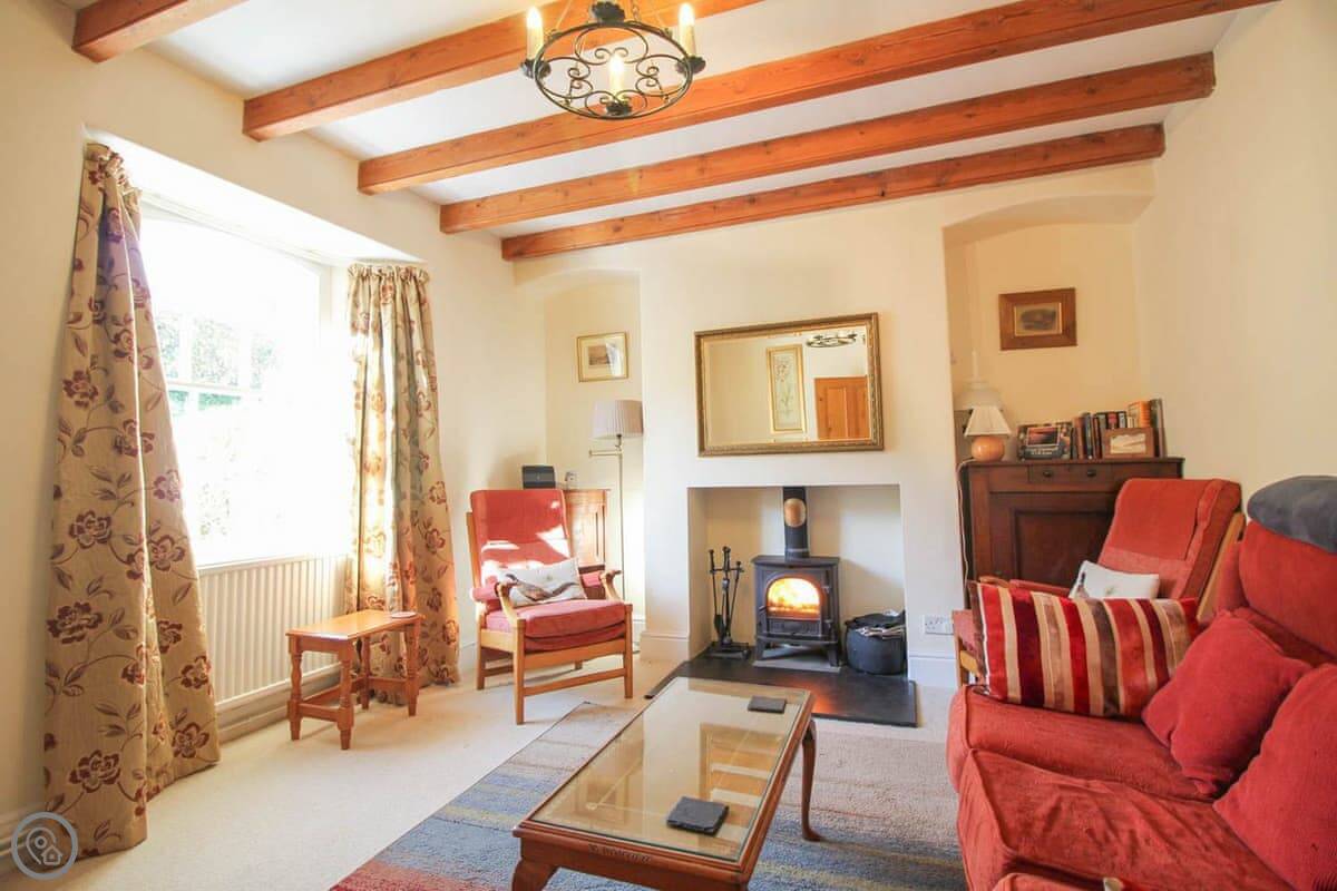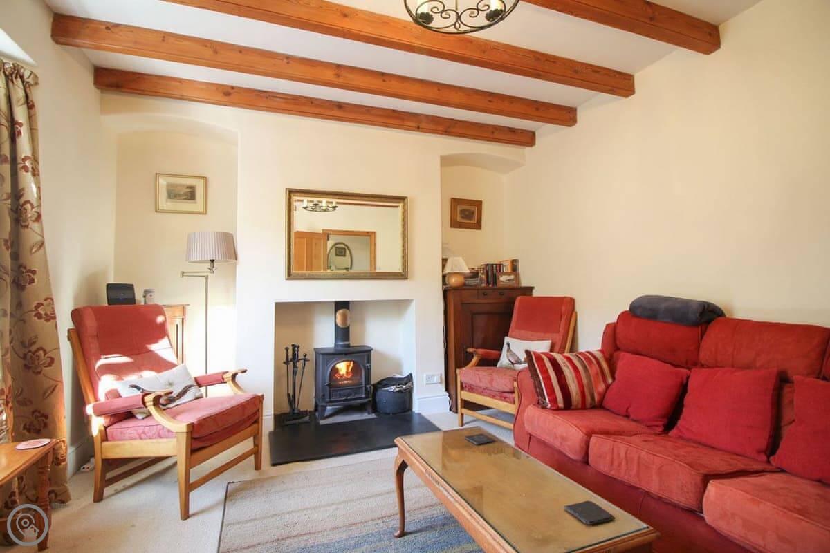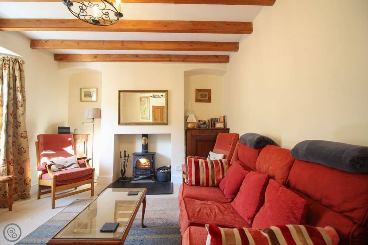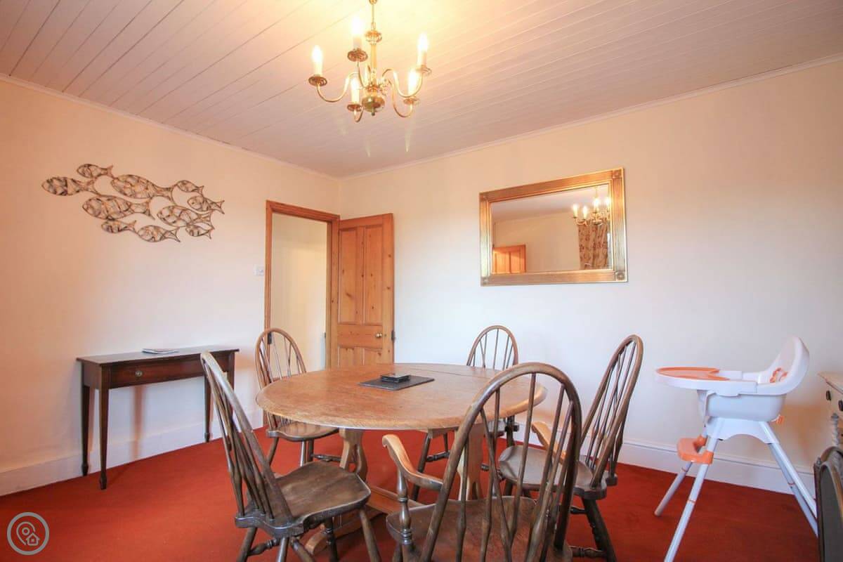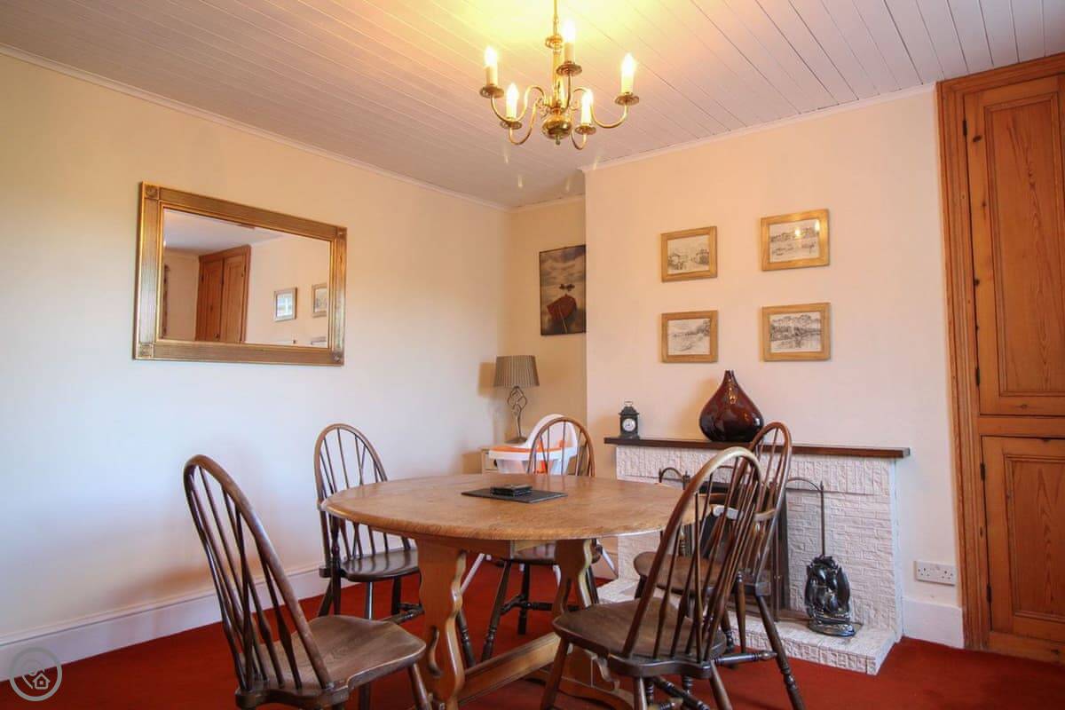 The living room has a wood burning stove. There's a separate dining room and a kitchen with a dishwasher. Bedding is included. We can provide a cot and a highchair. There's parking for one car.