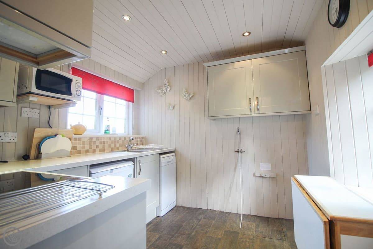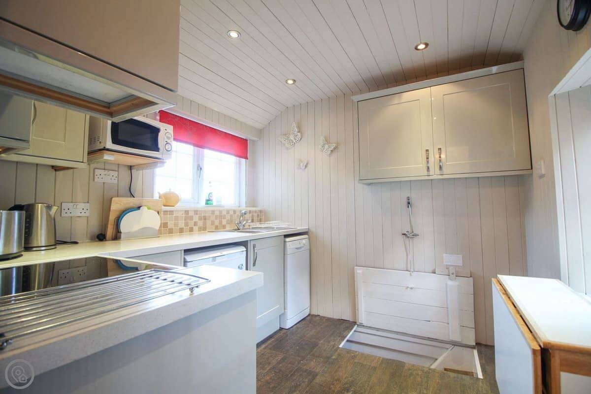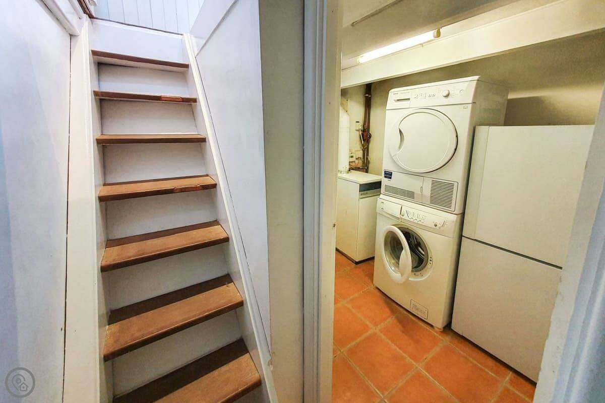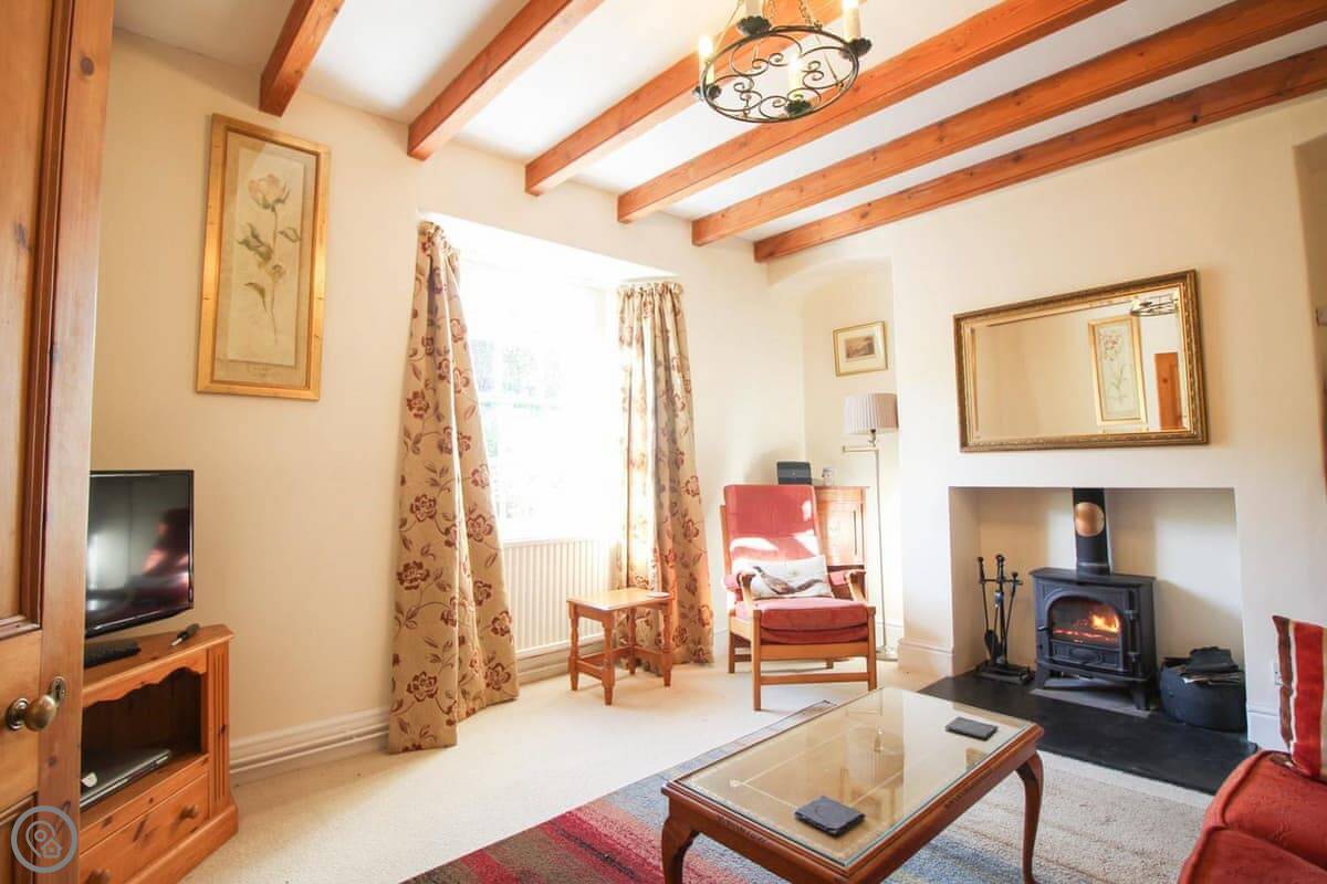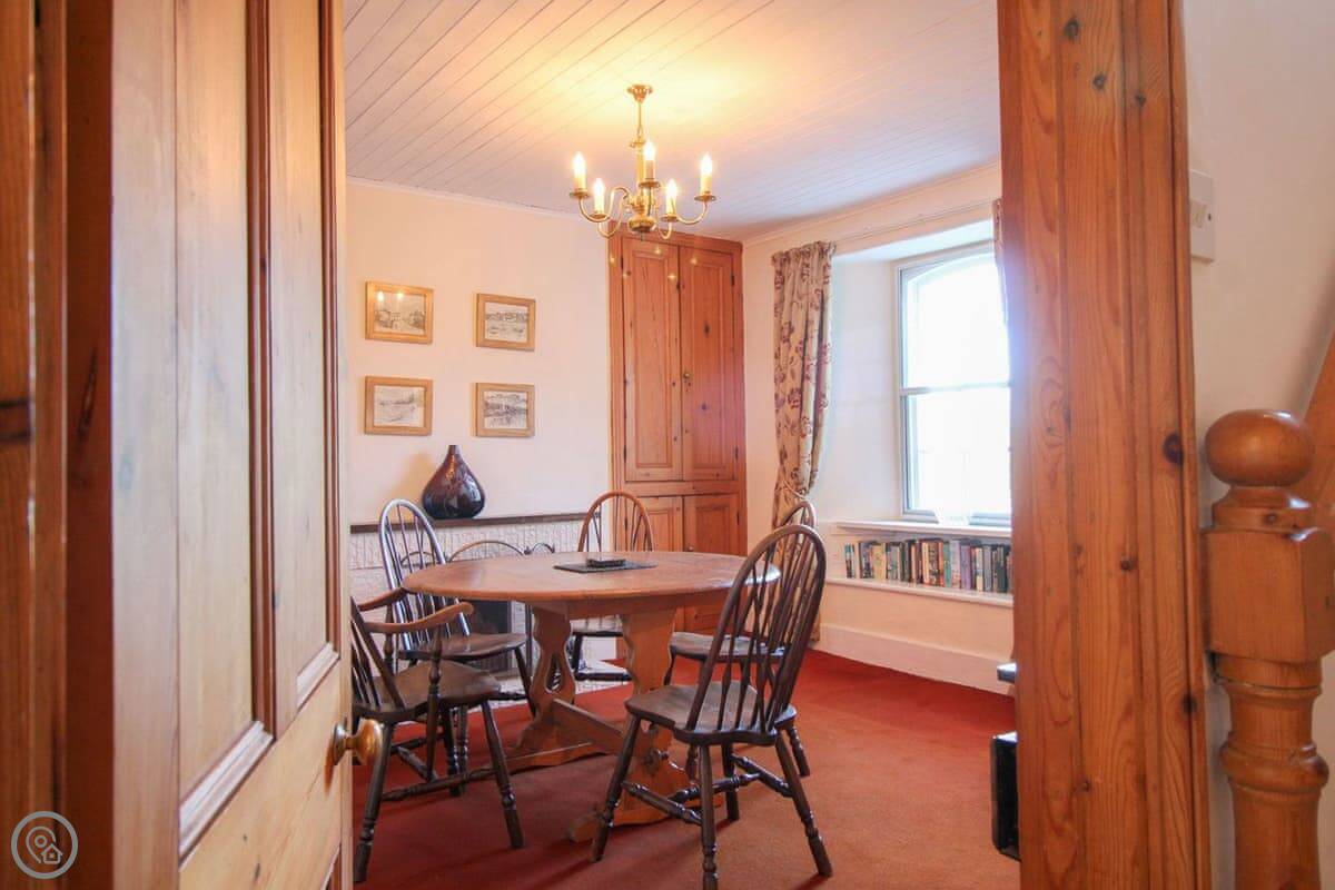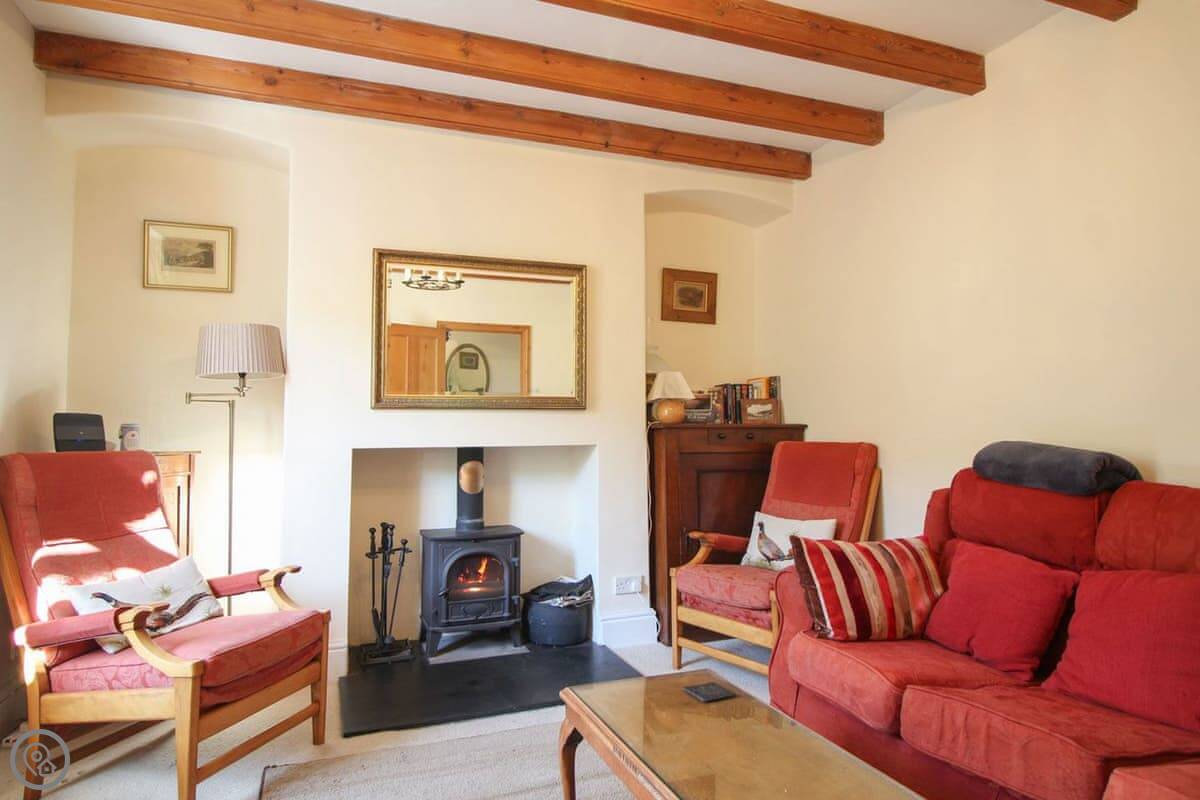 The living room has a wood burning stove. There's a separate dining room and a kitchen with a dishwasher. Bedding is included. We can provide a cot and a highchair. There's parking for one car.