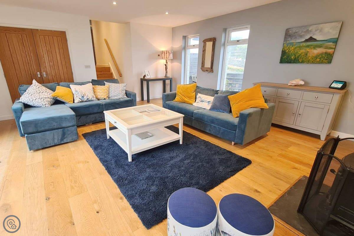 Chilowan is a split level property in the village of Trewarmett the views from the terrace are breathtaking from Polzeath to Tintagel. There are two spacious bedrooms, a kitchen/dining room with great views down the valley towards Trebarwith Strand and the living room has a wood burner, sumptuous, comfortable seating and sliding doors that lead to the small patio and lawn which is fenced off to give a secure space for dogs to run around.