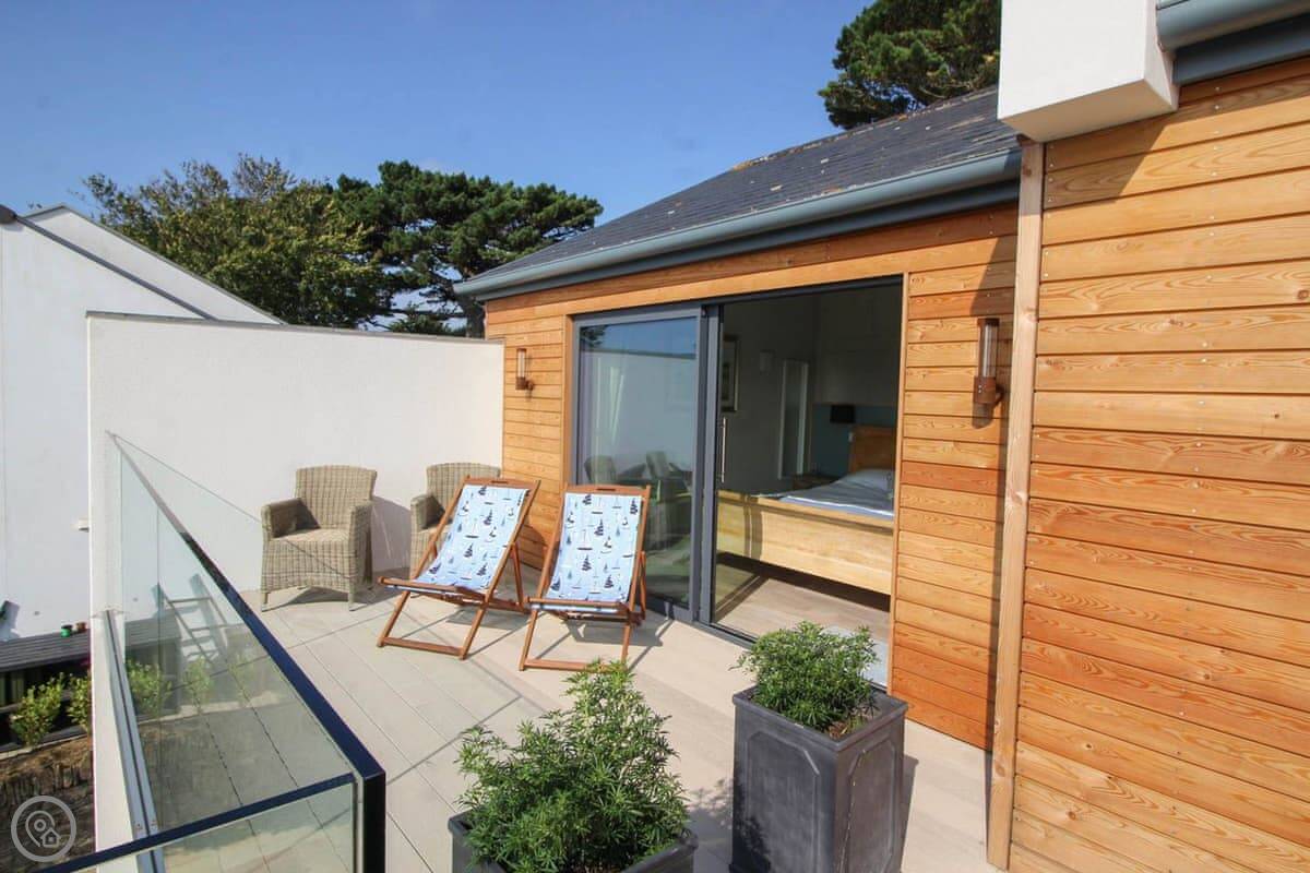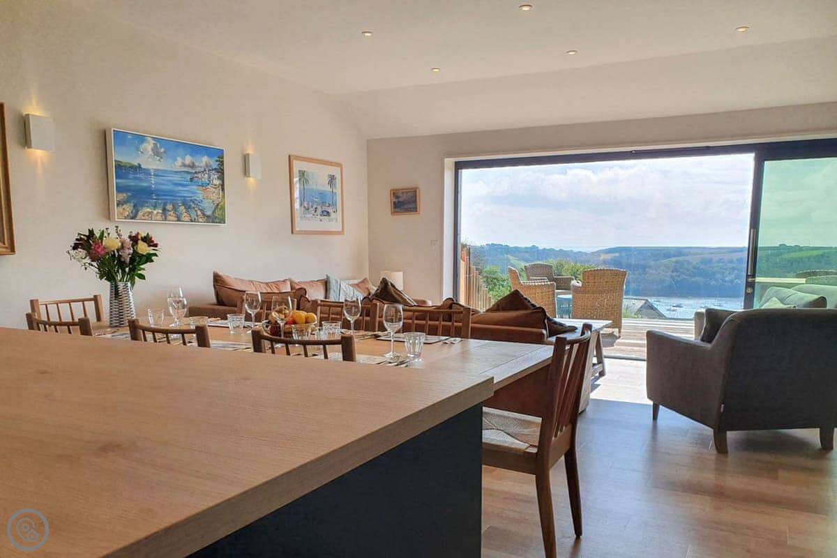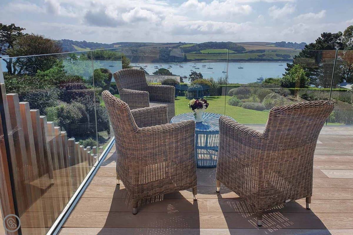 Located on the western side of St Mawes, just a short walk from the Castle and close to the superb Lamorran Gardens, Long Commons is a large house offering amazing panoramic views across St Mawes Bay, St Anthony’s Head with its ever-changing scenes of marine activity. Constructed to the highest specifications, most bedrooms at Long Commons come with en-suites, there are amazing sliding doors on both levels and an extended balcony on the first floor. The house is set out in reverse style with an open plan living space and master bedroom located on the first floor to take advantage of the magnificent views. The living area has an Everhot stove. There is a sizeable south facing patio and a wonderful garden with plenty of space for children to run around. There is an outdoor kennel and outside tap available.
