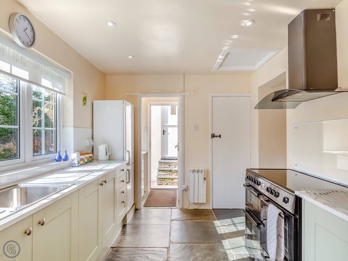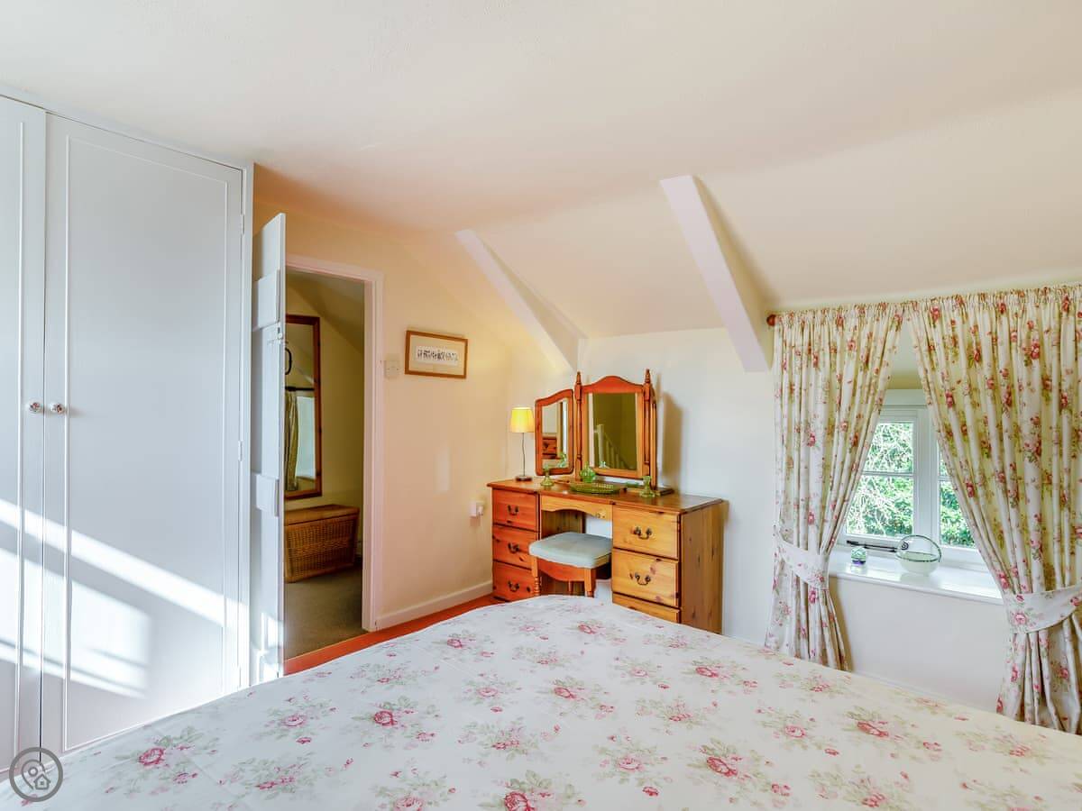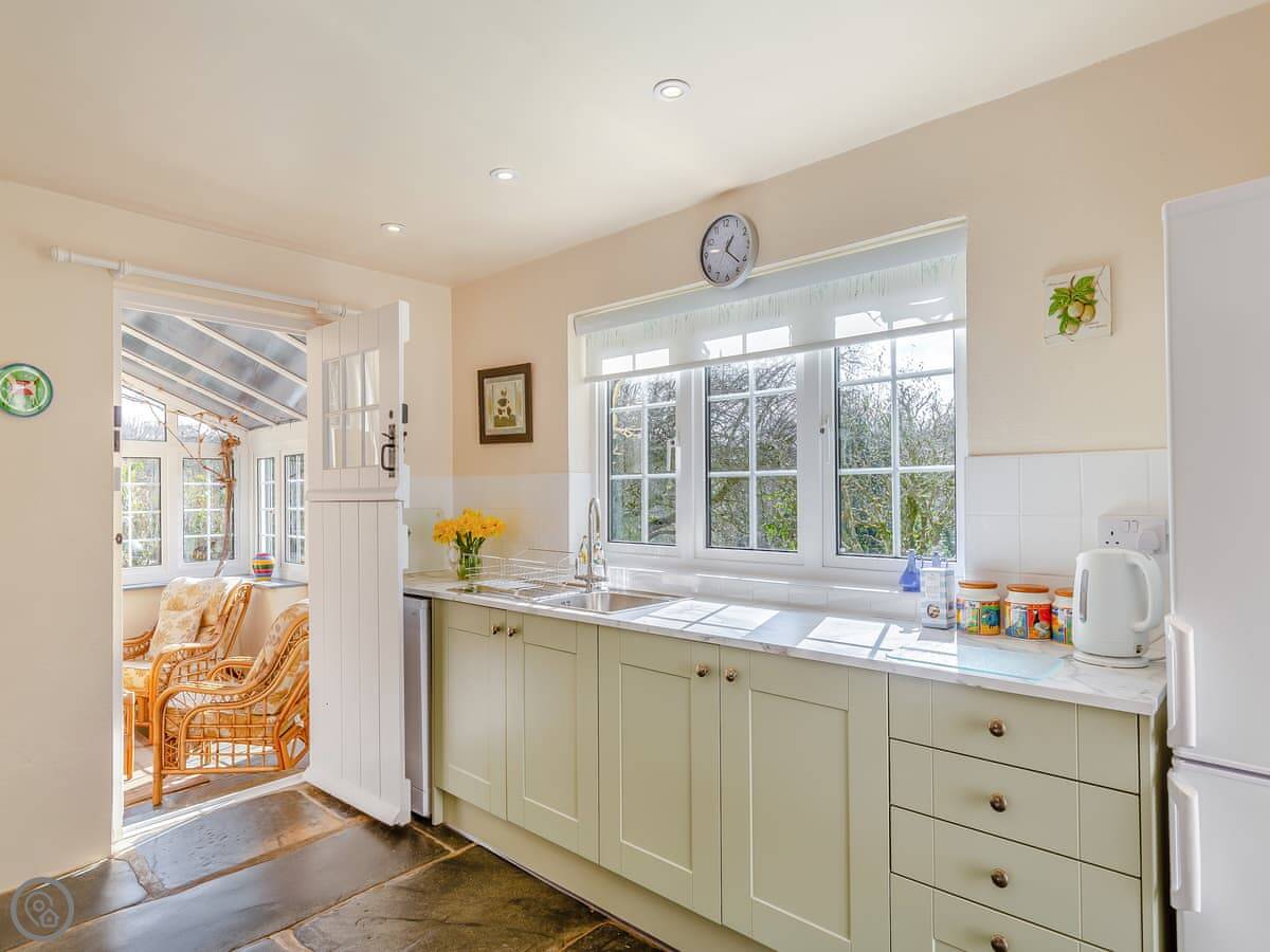 This beautiful Grade II listed cottage dates from the late 17th century and is in a south facing valley with wonderful mature gardens, surrounded by fields and woodland. The cottage has a welcoming feel, with slate tiles in the kitchen, and a large wood burner nestled in a traditional Inglenook fireplace in the living room. The kitchen is well-equipped for cooking up a holiday feast, gather in the dining room to enjoy company and planning the next days adventure. A door leads from the kitchen into the conservatory, with comfortable wicker furniture and plenty of light streaming in. One bedroom on the ground floor has a zip and link bed which can be set as a kingsize or twin beds, this room also has its own en-suite and direct access to the garden. Two further bedrooms can be found on the first floor; one double and one twin room.