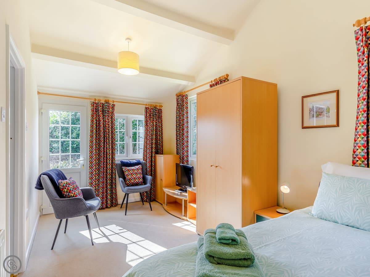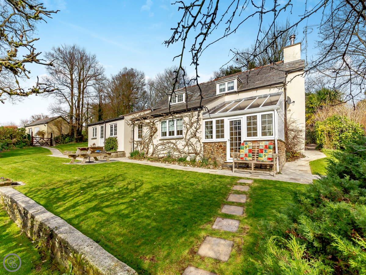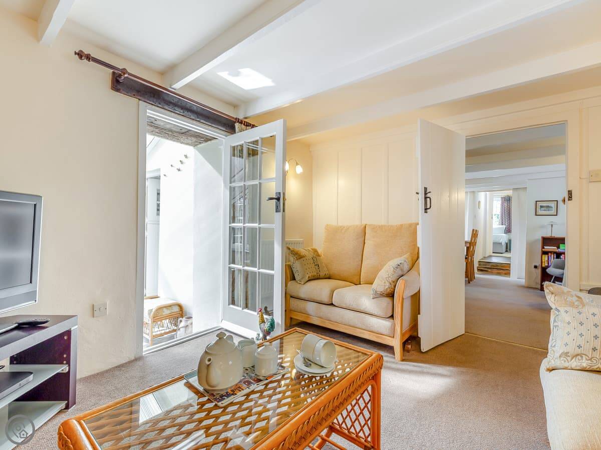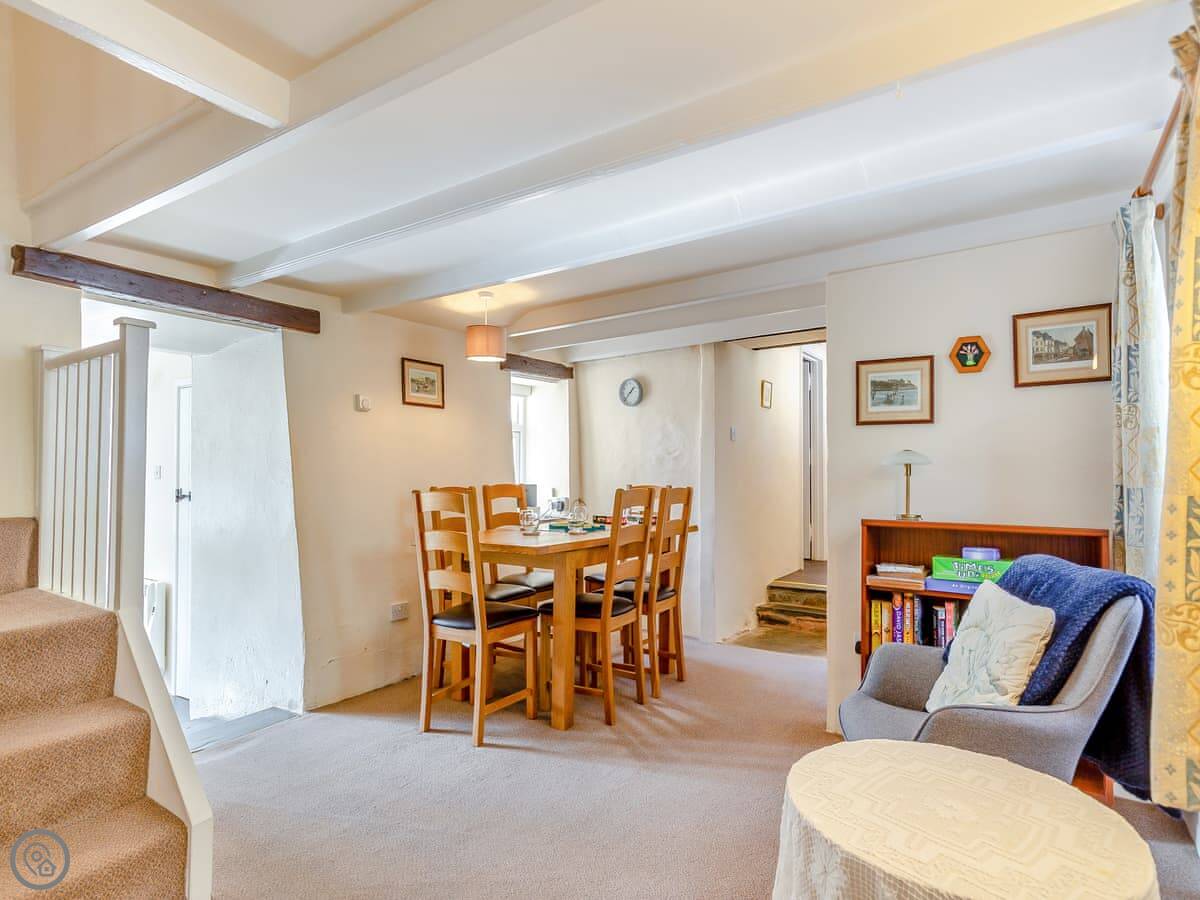This beautiful Grade II listed cottage dates from the late 17th century and is in a south facing valley with wonderful mature gardens, surrounded by fields and woodland. The cottage has a welcoming feel, with slate tiles in the kitchen, and a large wood burner nestled in a traditional Inglenook fireplace in the living room. The kitchen is well-equipped for cooking up a holiday feast, gather in the dining room to enjoy company and planning the next days adventure. A door leads from the kitchen into the conservatory, with comfortable wicker furniture and plenty of light streaming in. One bedroom on the ground floor has a zip and link bed which can be set as a kingsize or twin beds, this room also has its own en-suite and direct access to the garden. Two further bedrooms can be found on the first floor; one double and one twin room.