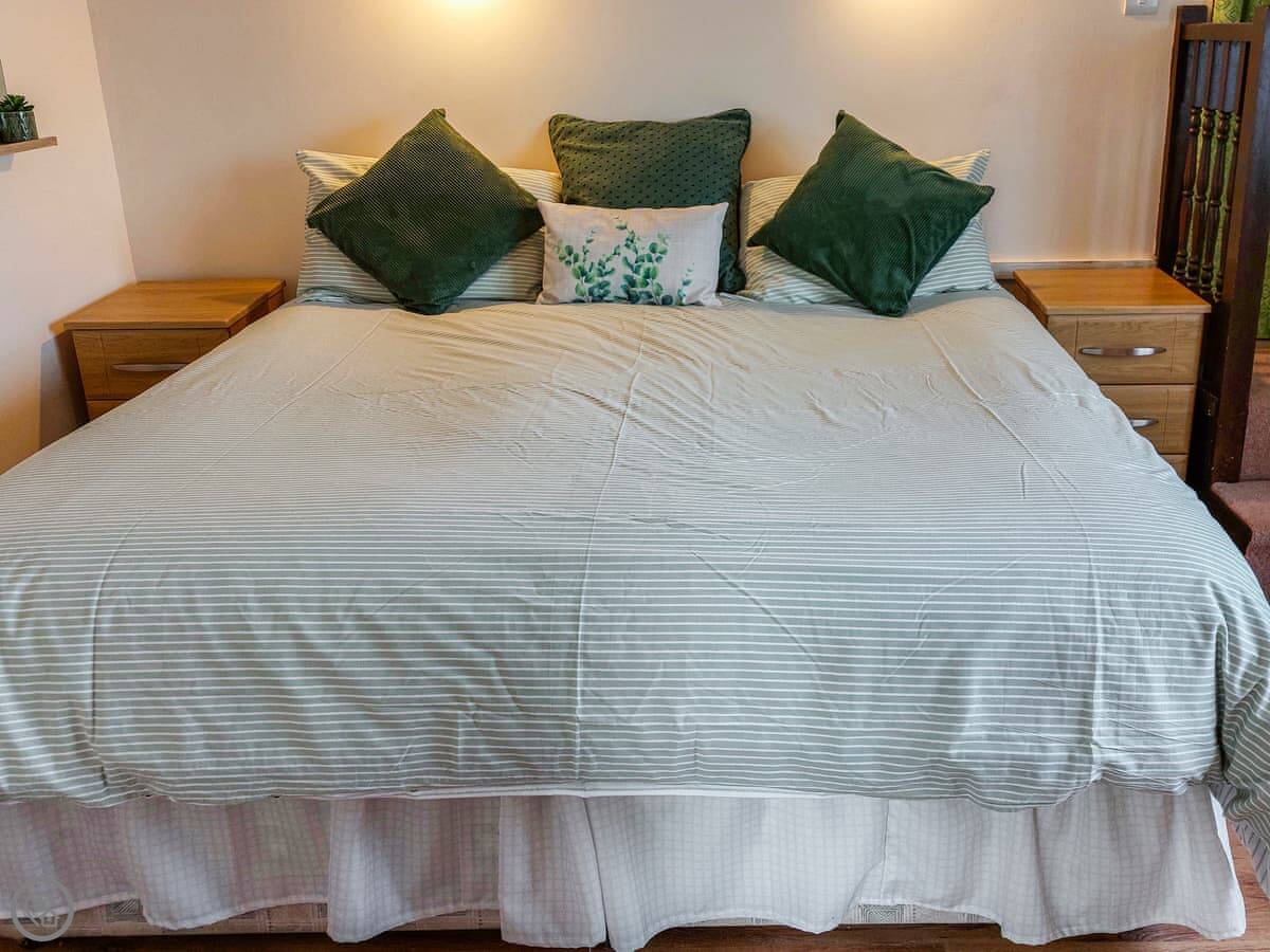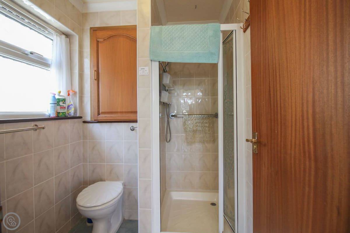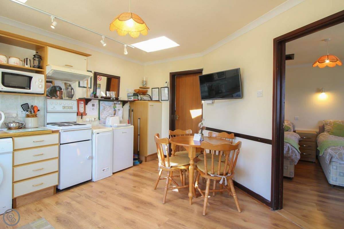 It's a 3 Star property. It's clean and functional. Not fancy. The kitchen is open plan. One bedroom, one shower room. Everything's on the same level, so there are no stairs inside.