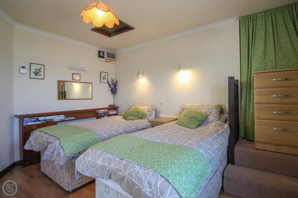 Hithertwo is on the hill in Polzeath, overlooking the beach. It's part of a pair with Comehither next door. This one sleeps two, the other sleeps six. You can book them together if you need to.