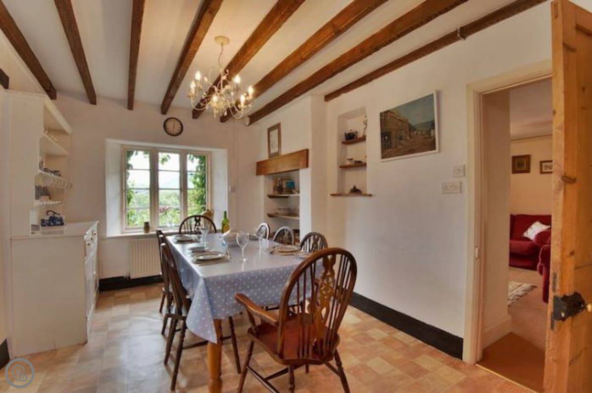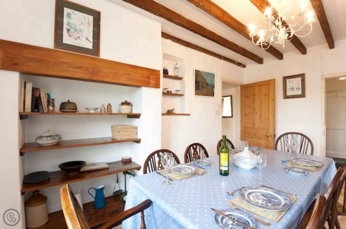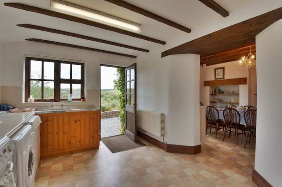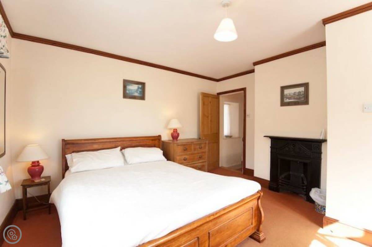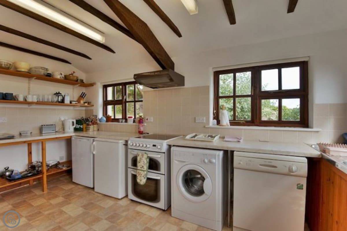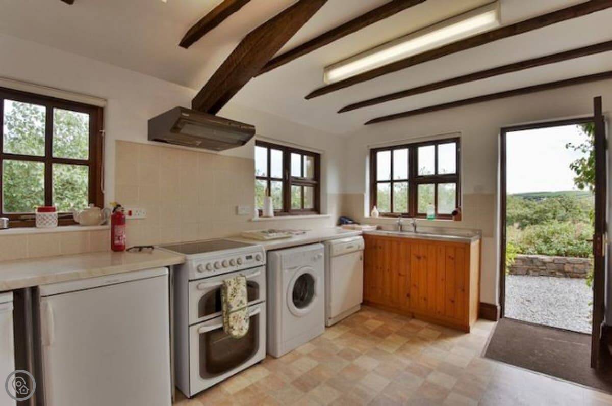 For facilities, it's got what you'd expect: WiFi, a washing machine, dishwasher, woodburning stove. Bedding is included. There's a cot and highchair if you need them. On-site parking. One well-behaved dog is allowed.
