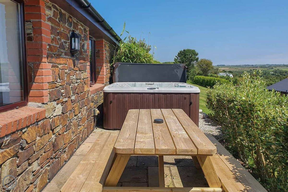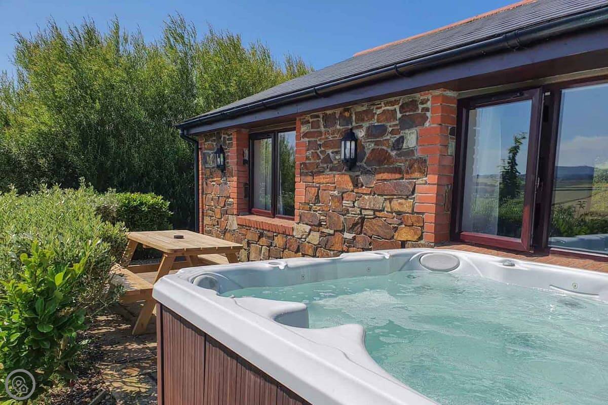 Mermaid has the enormous benefit of a wonderful jacuzzi on the patio, overlooking the rolling countryside. Relax and enjoy the view! Beach 2 miles.