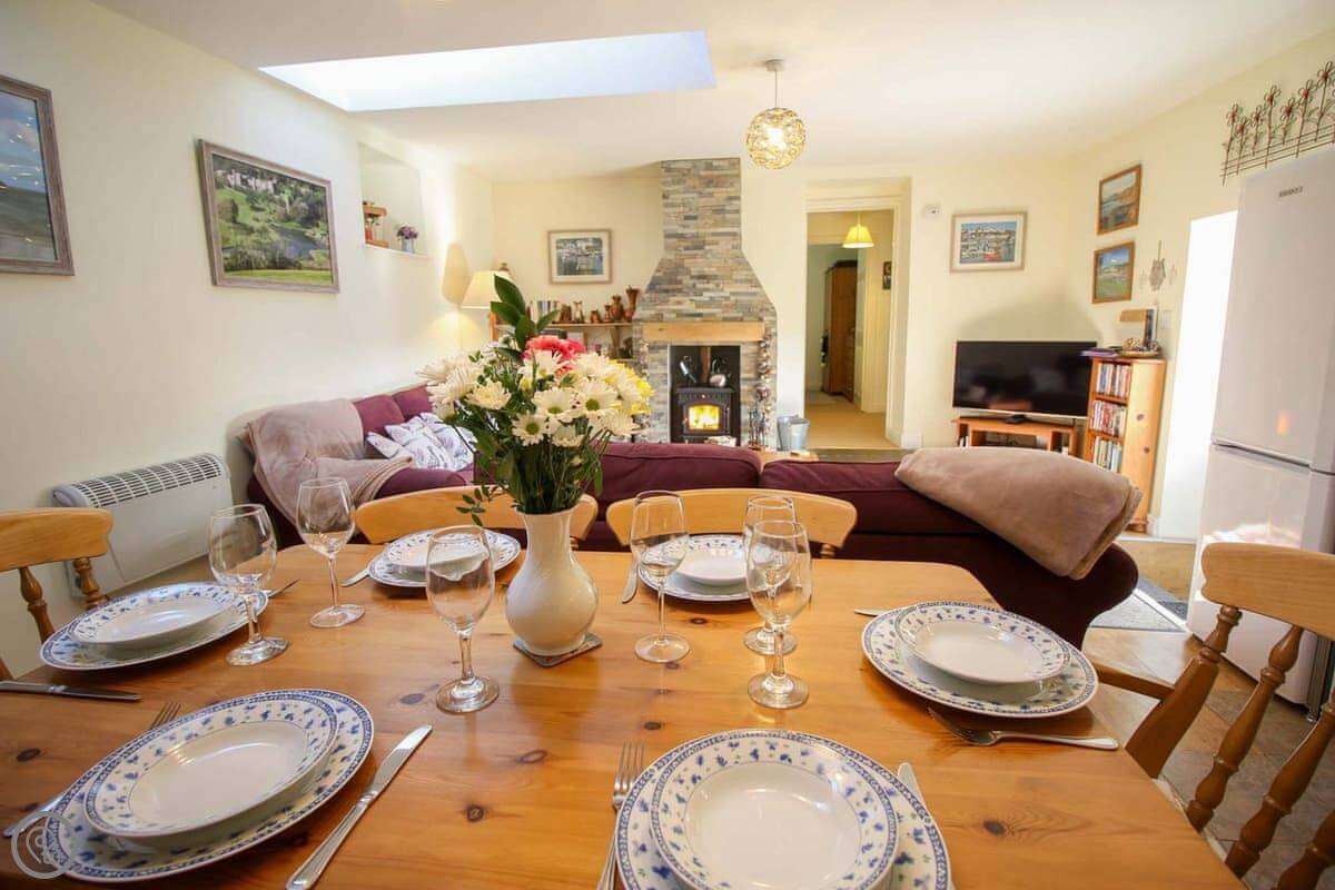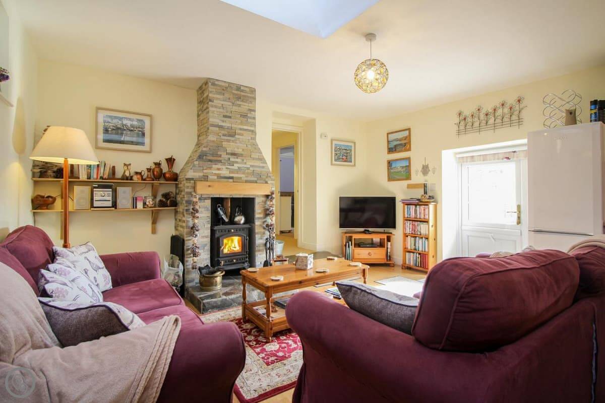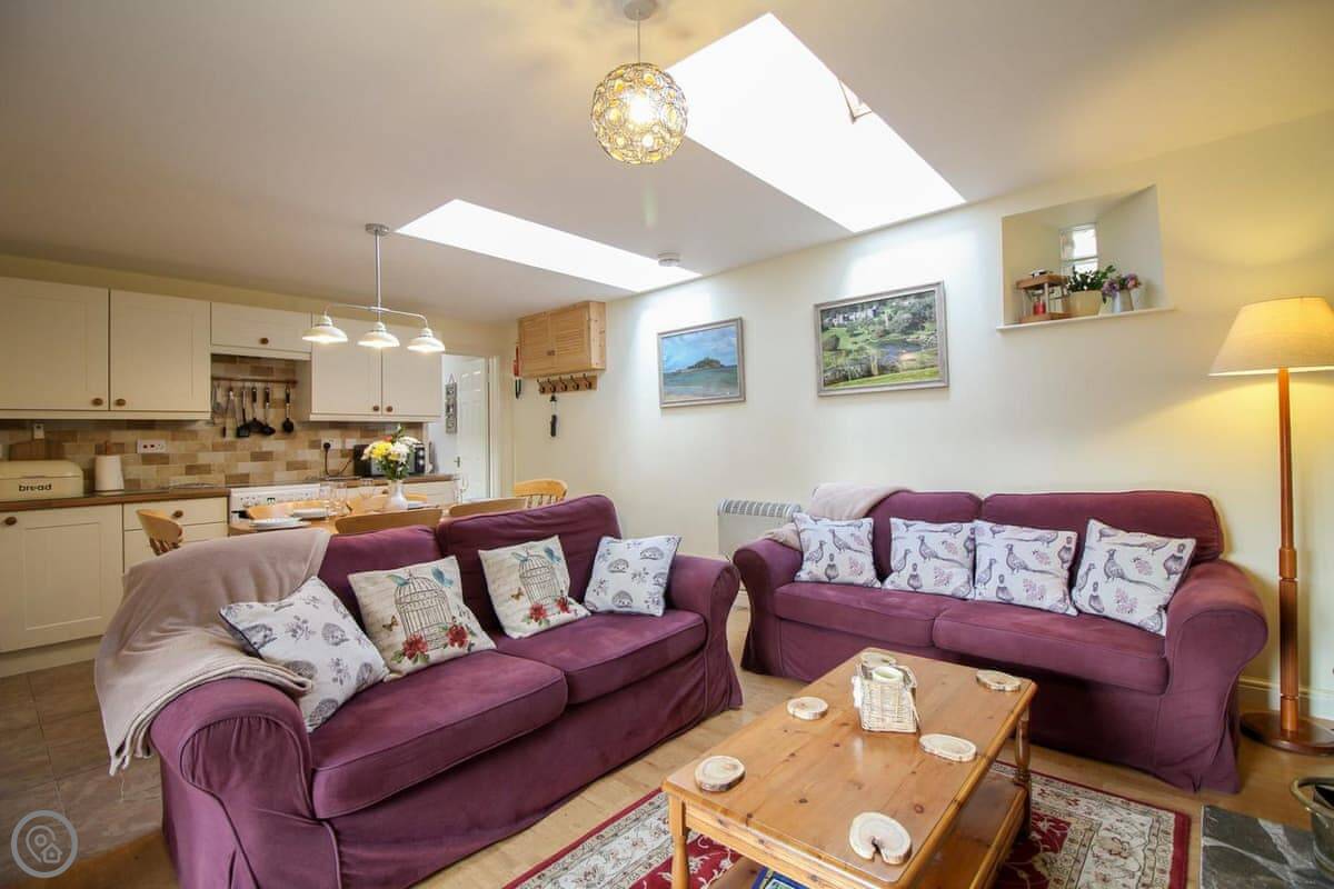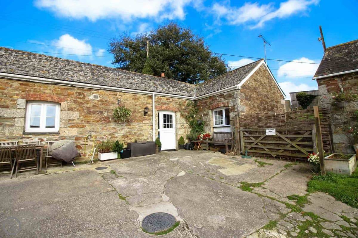 Sloe Cottage is in Withielgoose. It's a converted stone barn. It's all on one floor, which is good if you don't want stairs. It's part of a small group of barns, so you share the front courtyard with a few other cottages. You have your own patio area at the back.