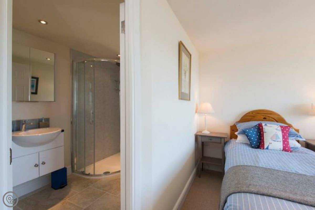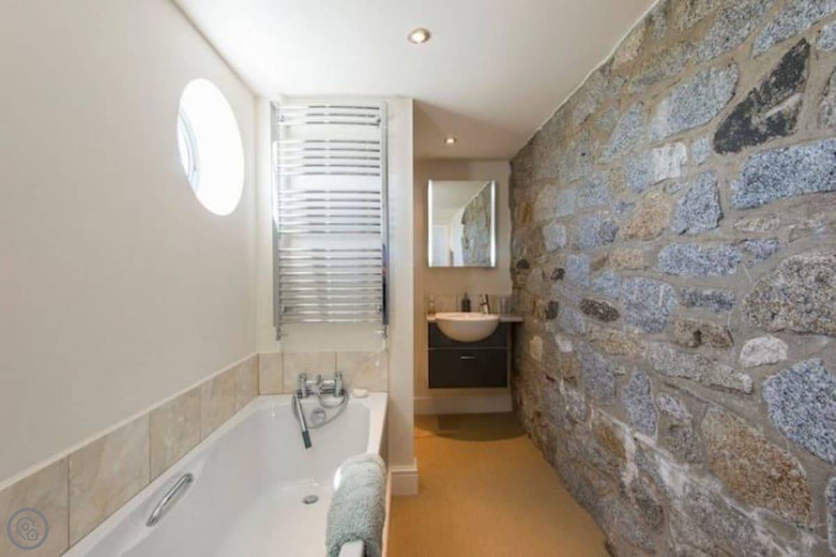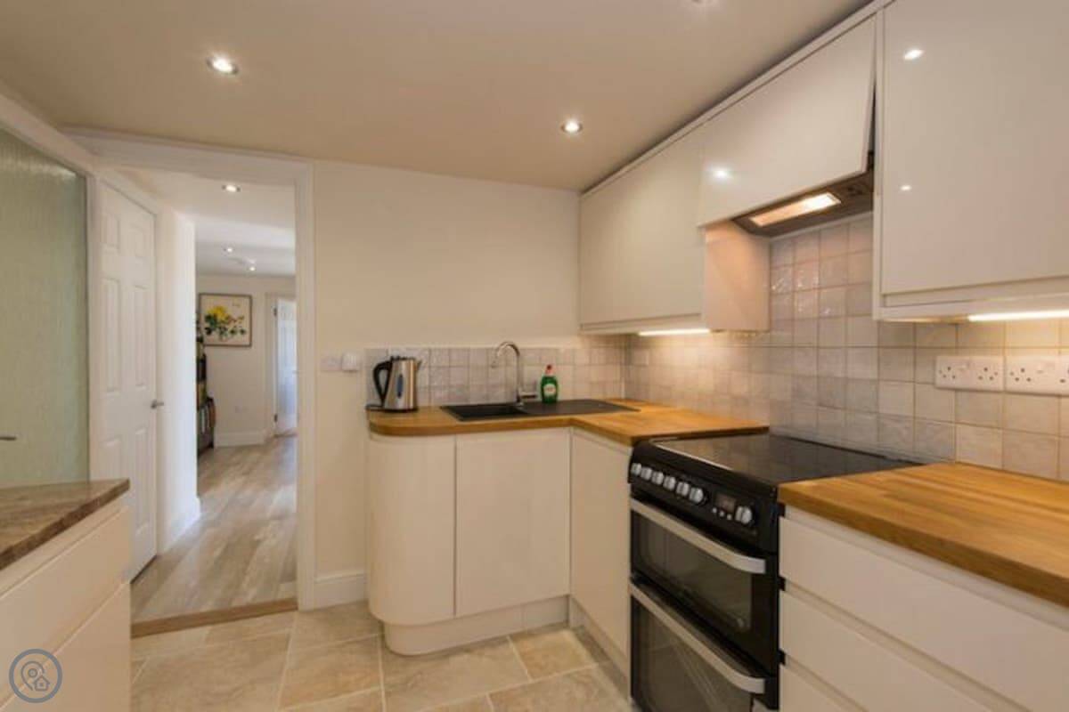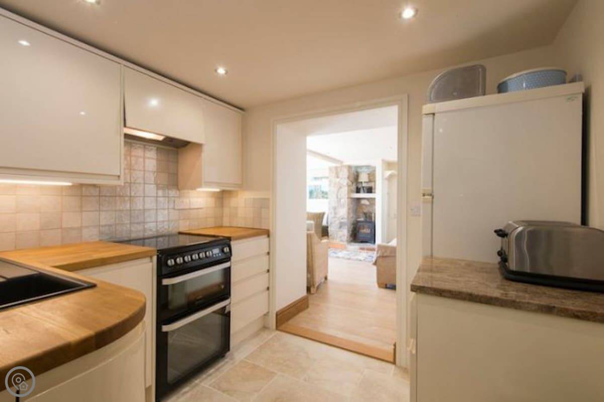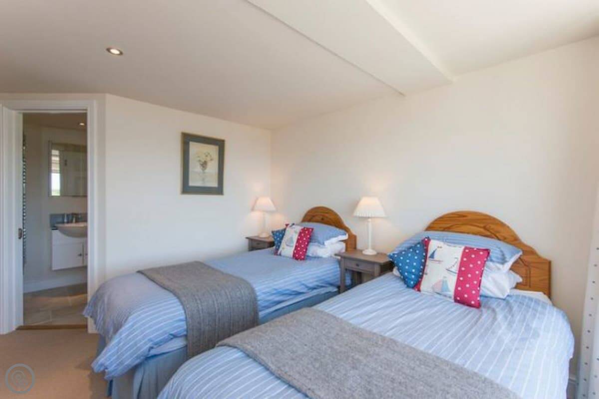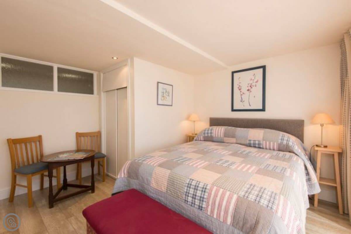 The village centre is about a four minute walk. You can get to the harbour, the pubs, and the shops easily, but it's quiet up here. The beach is about a third of a mile.