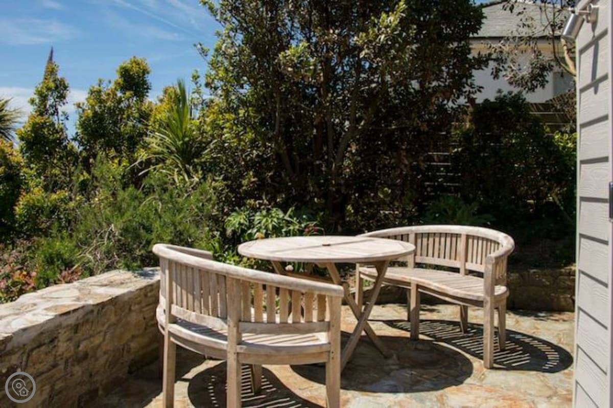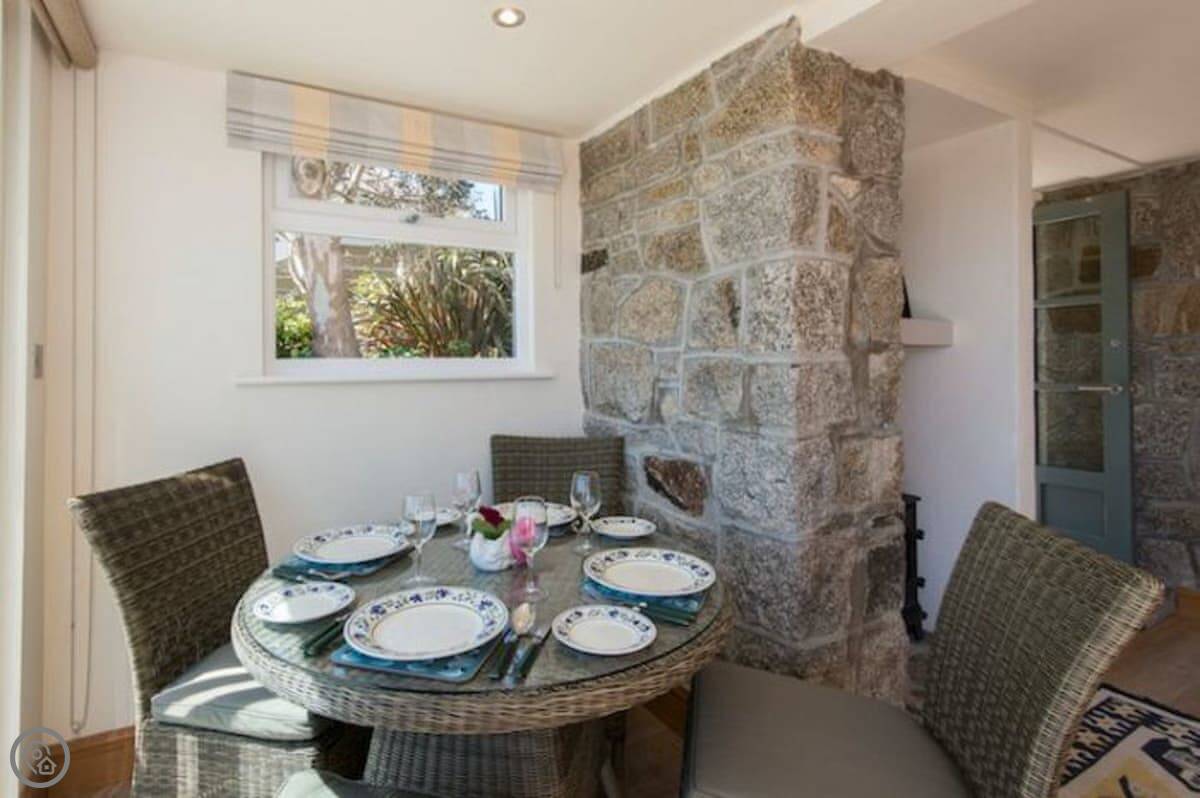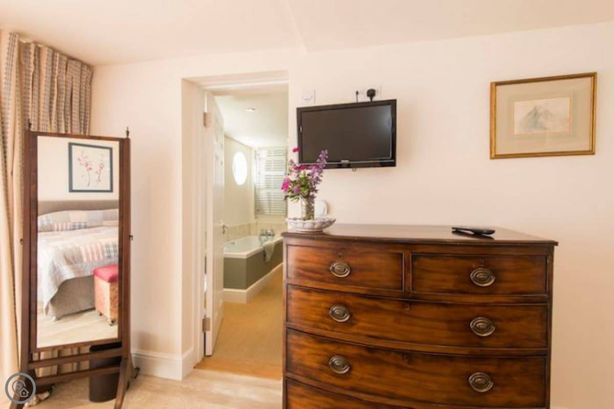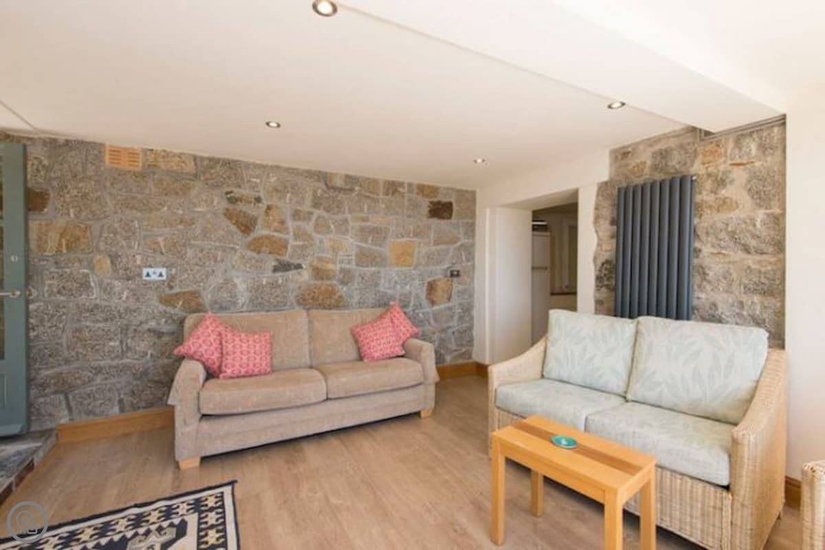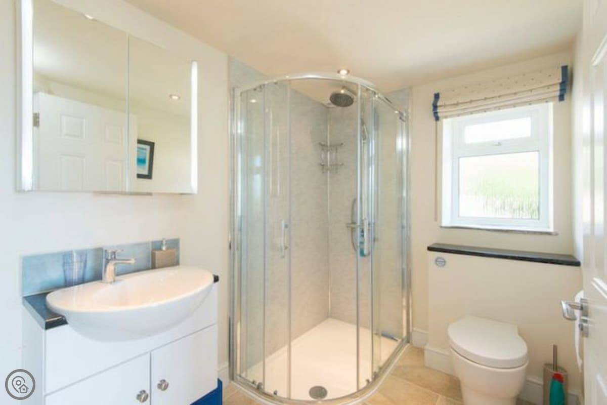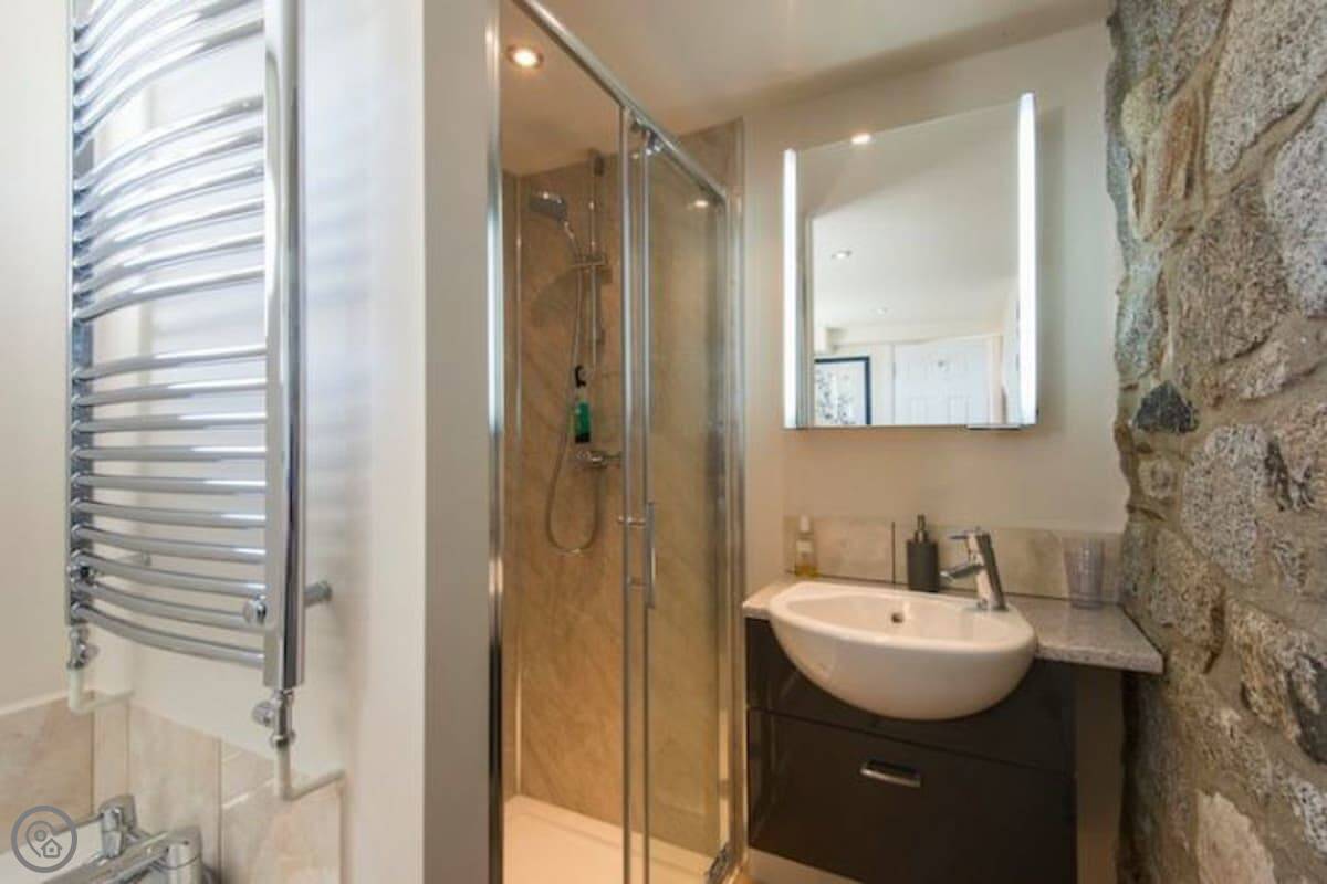 The village centre is about a four minute walk. You can get to the harbour, the pubs, and the shops easily, but it's quiet up here. The beach is about a third of a mile.