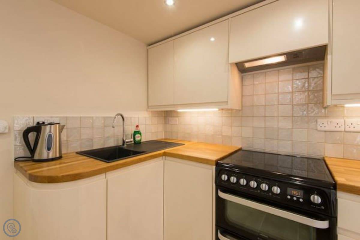 For facilities, you've got the dishwasher, WiFi, TV, parking. Bedding and towels are included. There's a cot and highchair if you need them. No pets, I'm afraid.