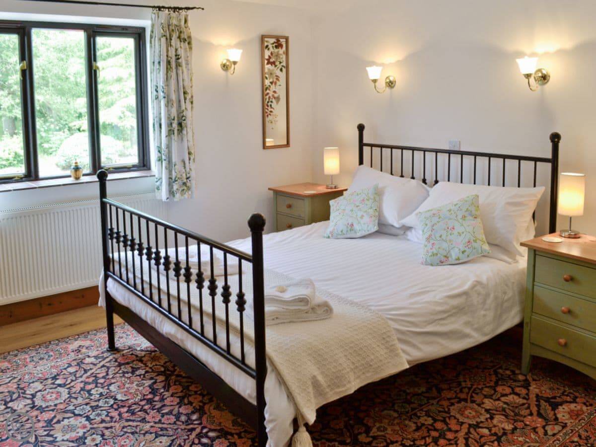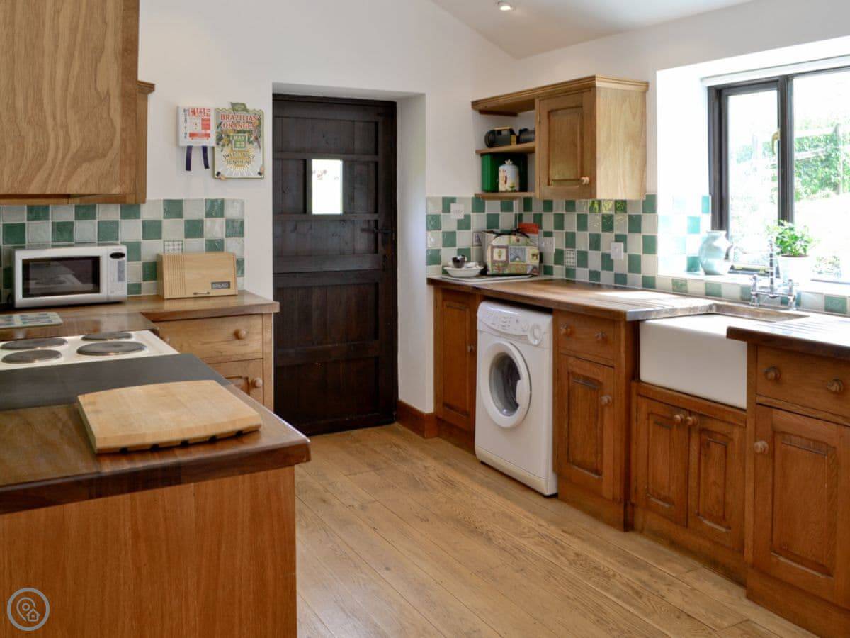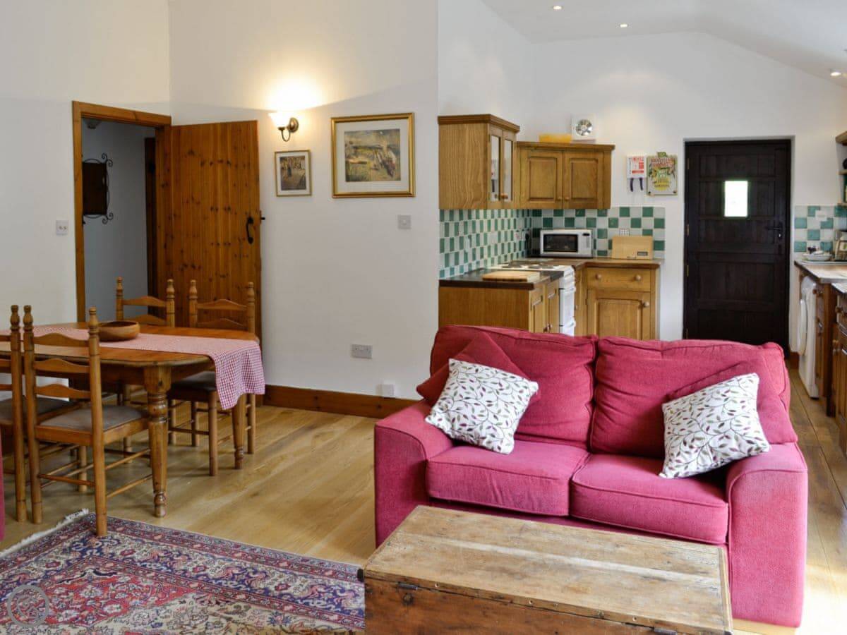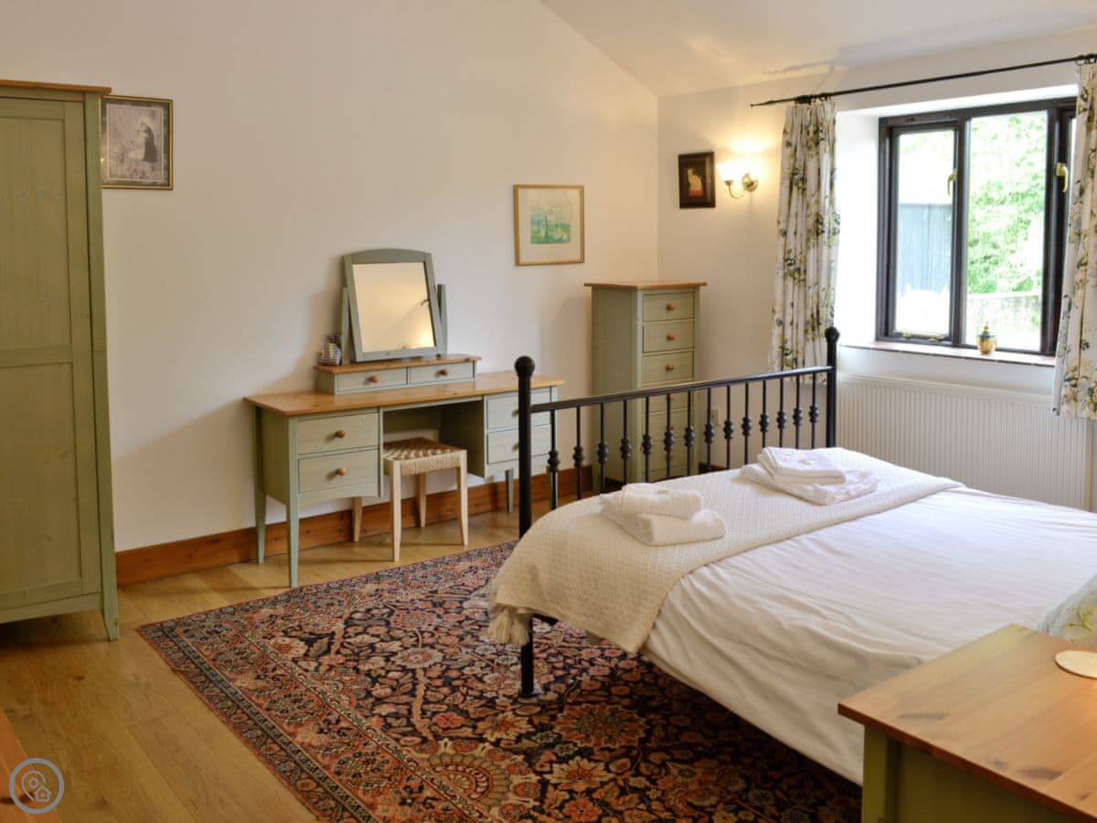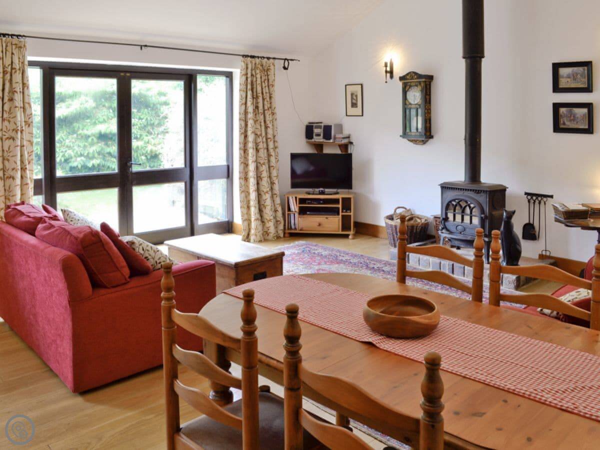 Being a barn, the ceilings are a good height, but it's still got the original wooden floors with rugs down. There's a woodburning stove for winter. Wifi, TV, parking, all that is included. Bedding and towels too. You can bring one dog.