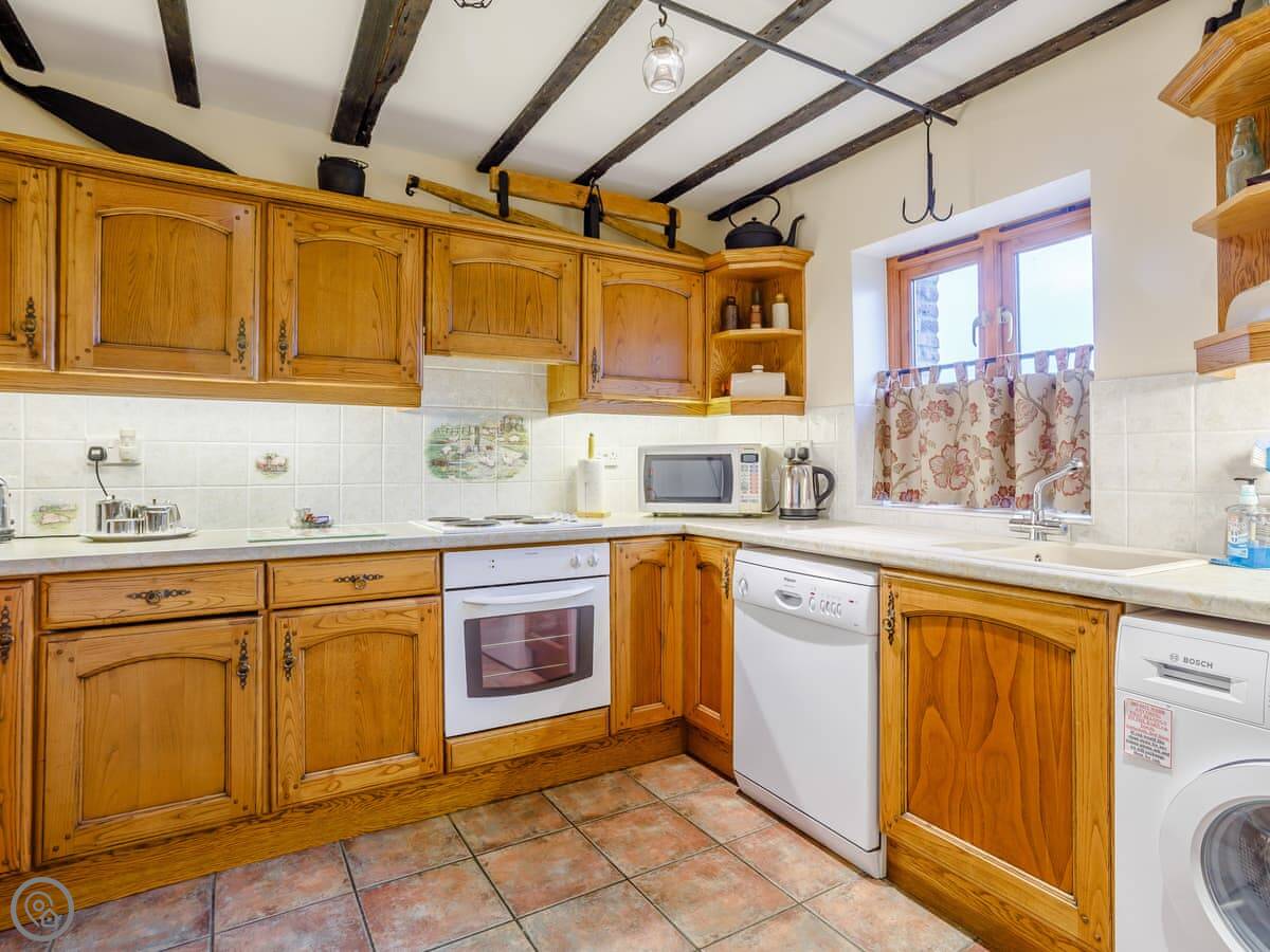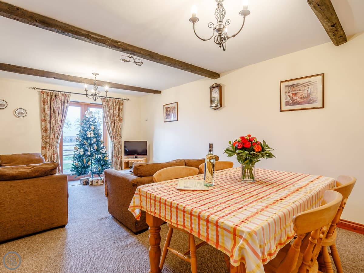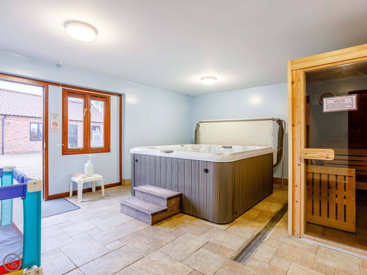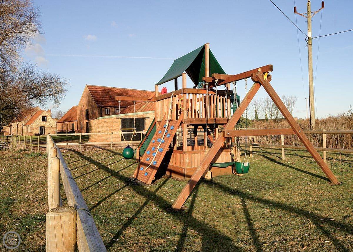 You share access to the farm grounds, which are good for walking. There's a heated outdoor pool open in the summer, a games room, and a hot tub. There's also a small kids' play area. You're on a working farm, so you'll see tractors and animals about.