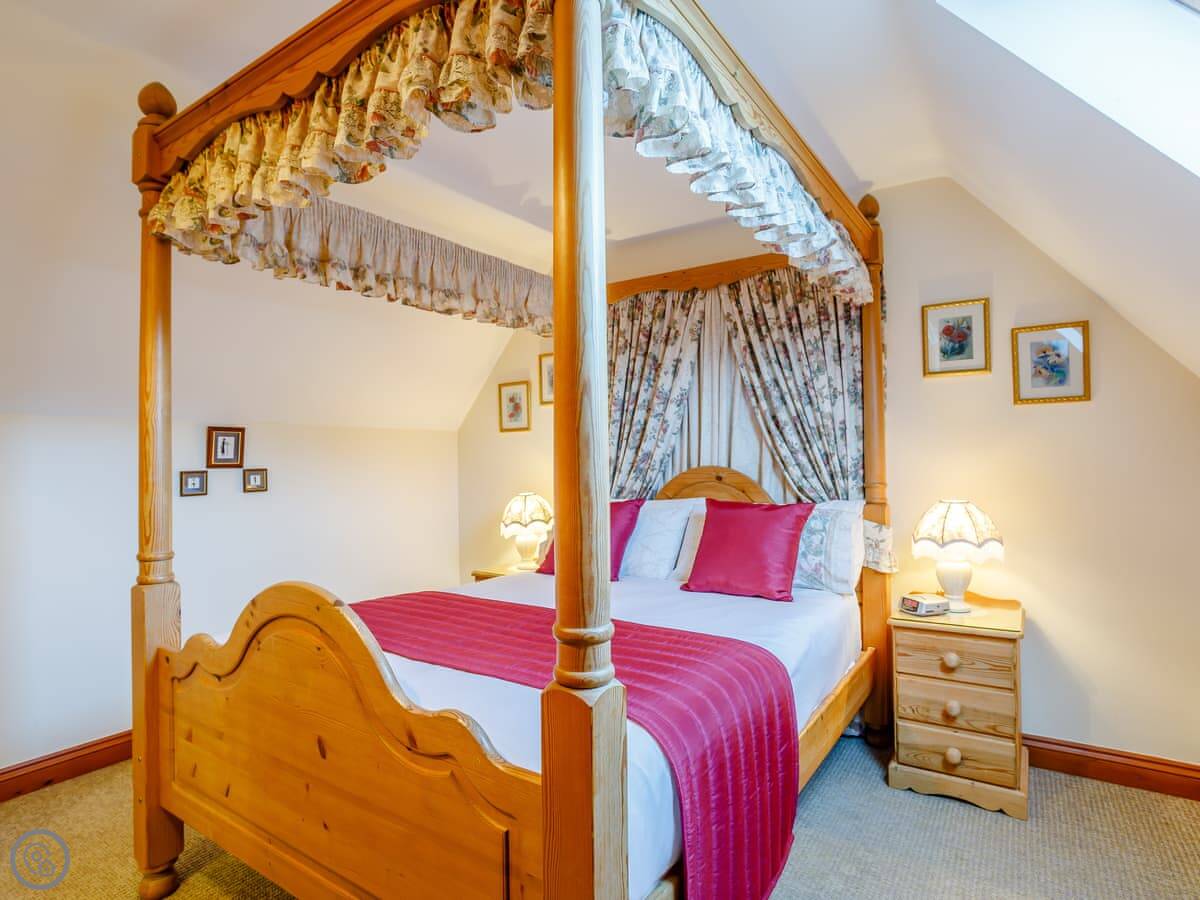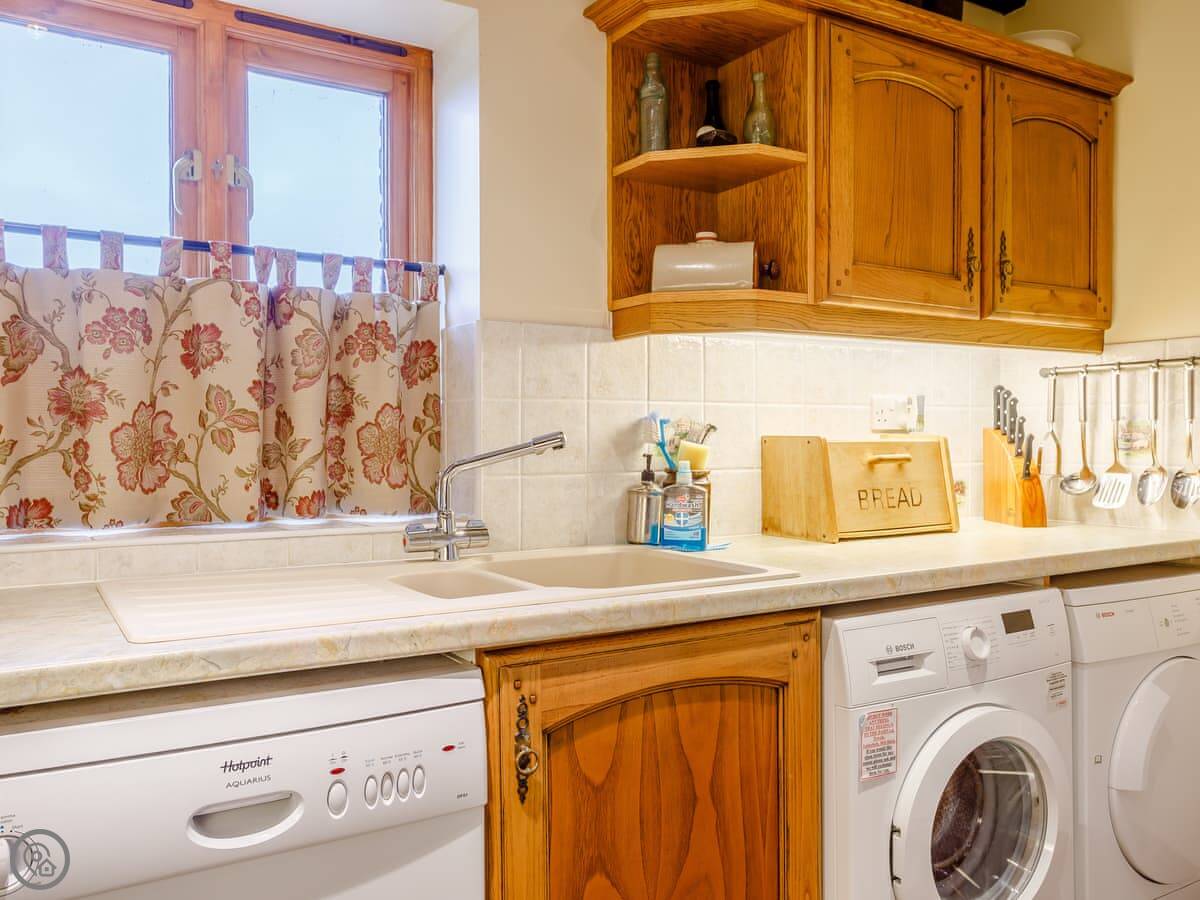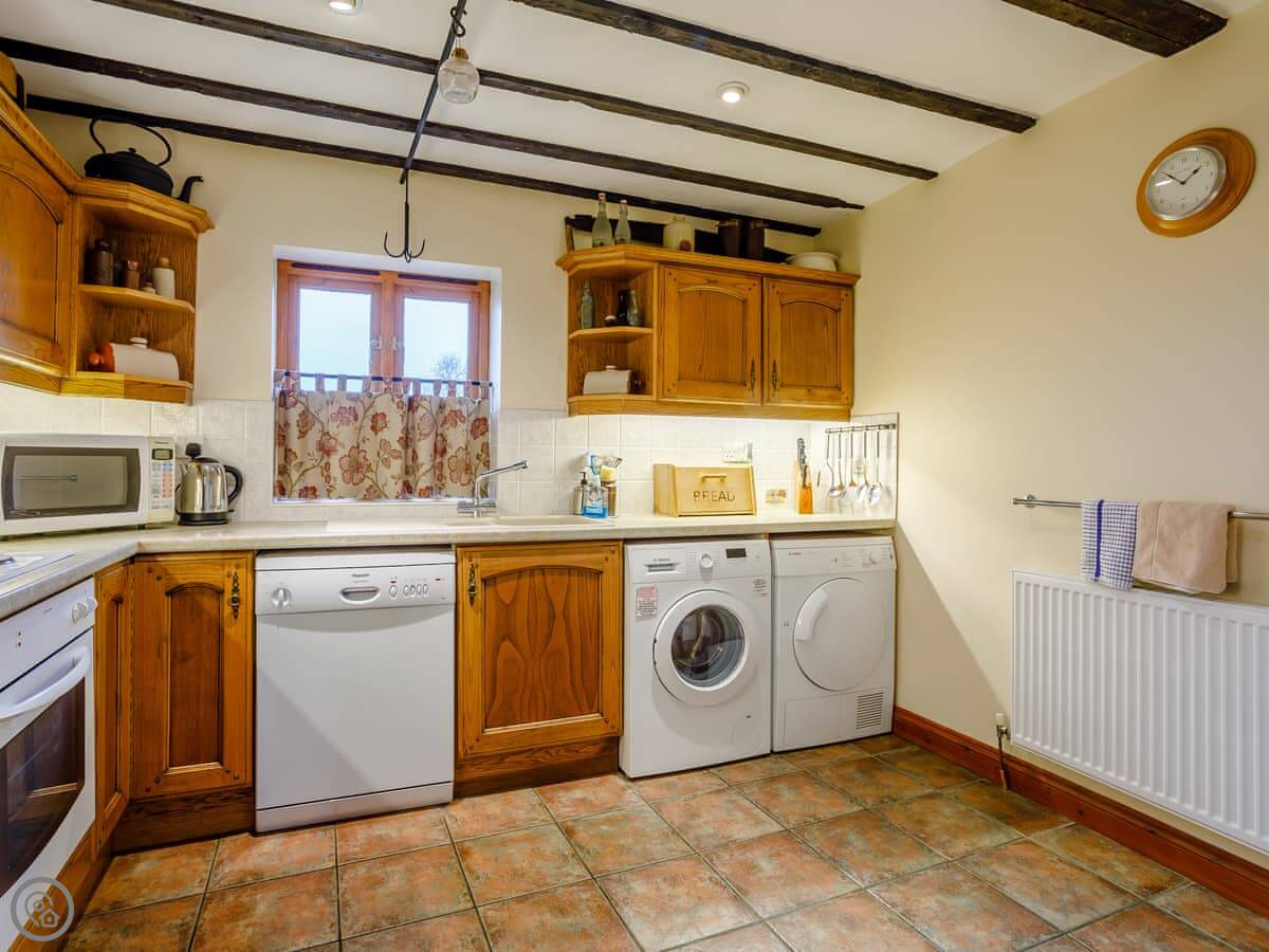 You share access to the farm grounds, which are good for walking. There's a heated outdoor pool open in the summer, a games room, and a hot tub. There's also a small kids' play area. You're on a working farm, so you'll see tractors and animals about.