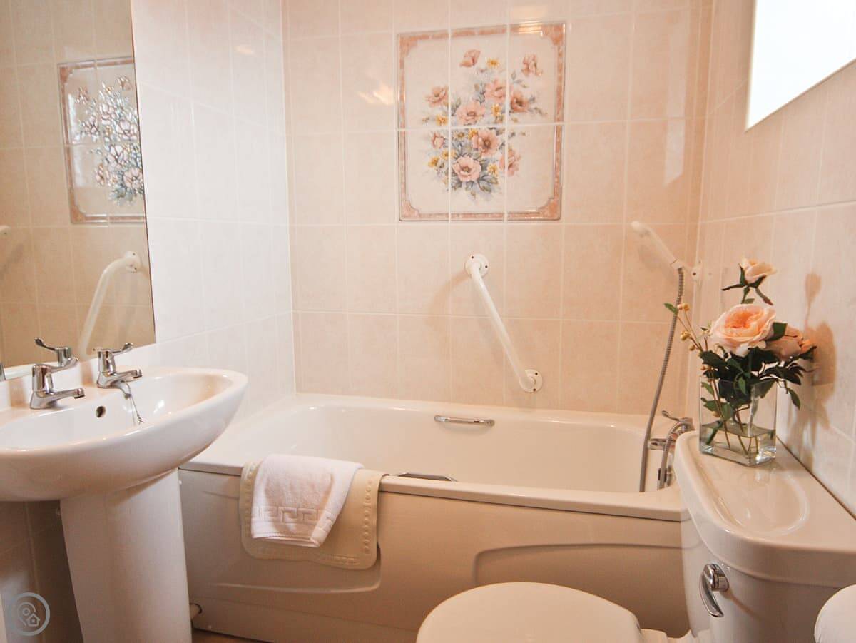 There's a wet room with a seat and grab rails, and one of the beds is electric so you can adjust it. The doors and spaces are all wheelchair friendly.