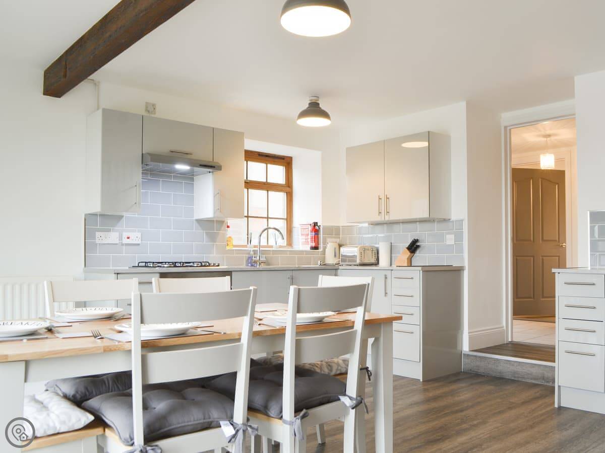 It sleeps six. Three bedrooms. It's got two bathrooms, which is handy. It's a 4 Star place, so it's comfortable. It used to be a sandstone stable block, so the walls are thick and some of the original features are still there. It's been done up well.