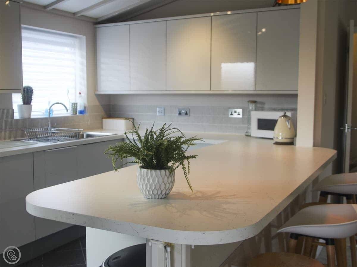 Inside, there's a dishwasher and washing machine. Wifi is included. We provide bedding and there's a cot if you need it. The shower has a seat.