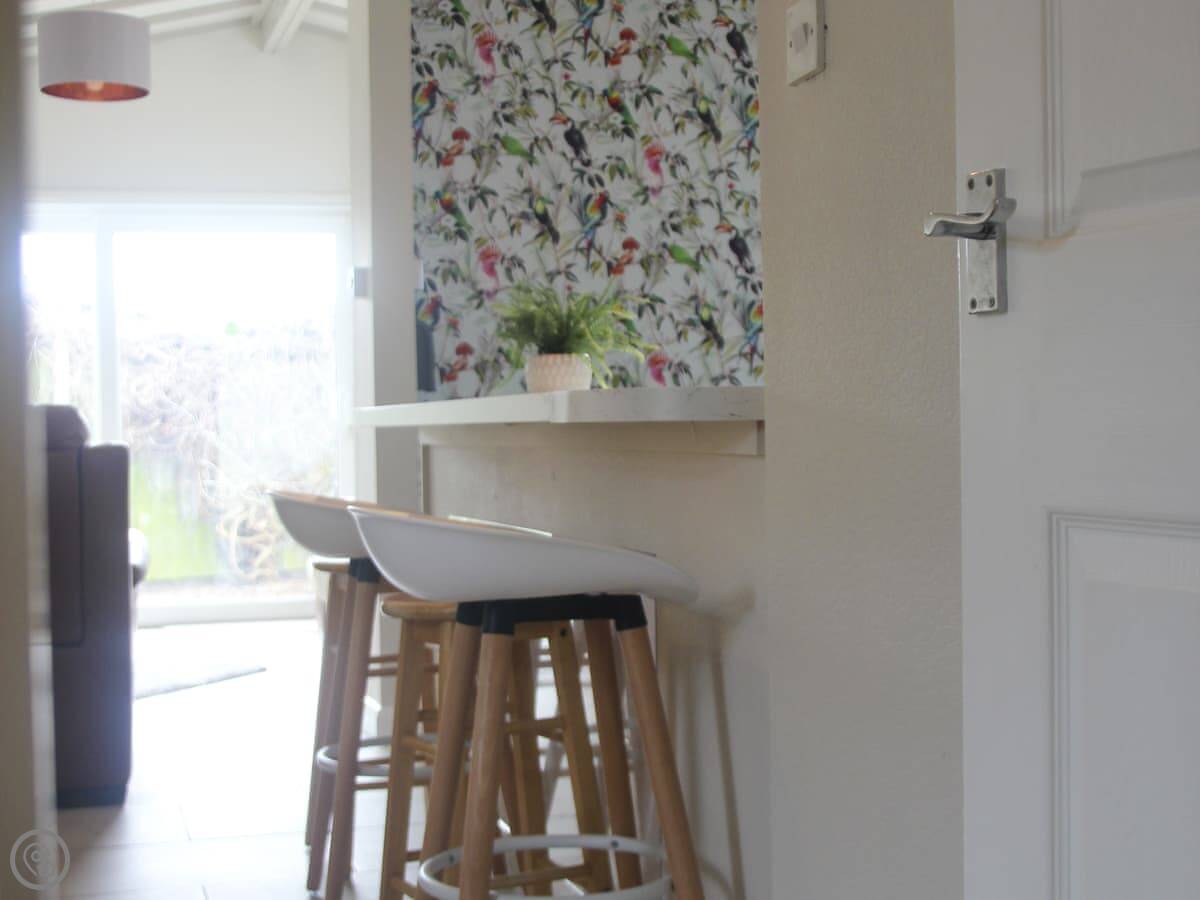 The bungalow has a wood burner for cooler evenings. There's a patio with a BBQ and the garden is enclosed. Parking is right there on the drive.