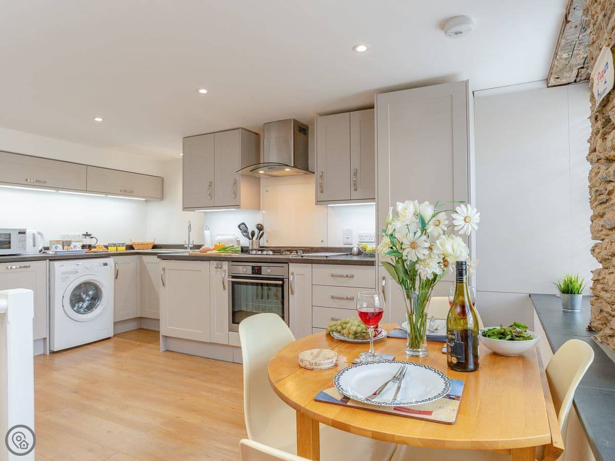 You’re about two minutes’ walk from the harbour and the main shops and pubs. You really don’t need the car. Readymoney Cove, which is a sandy beach, is a ten to fifteen minute walk down the hill.
