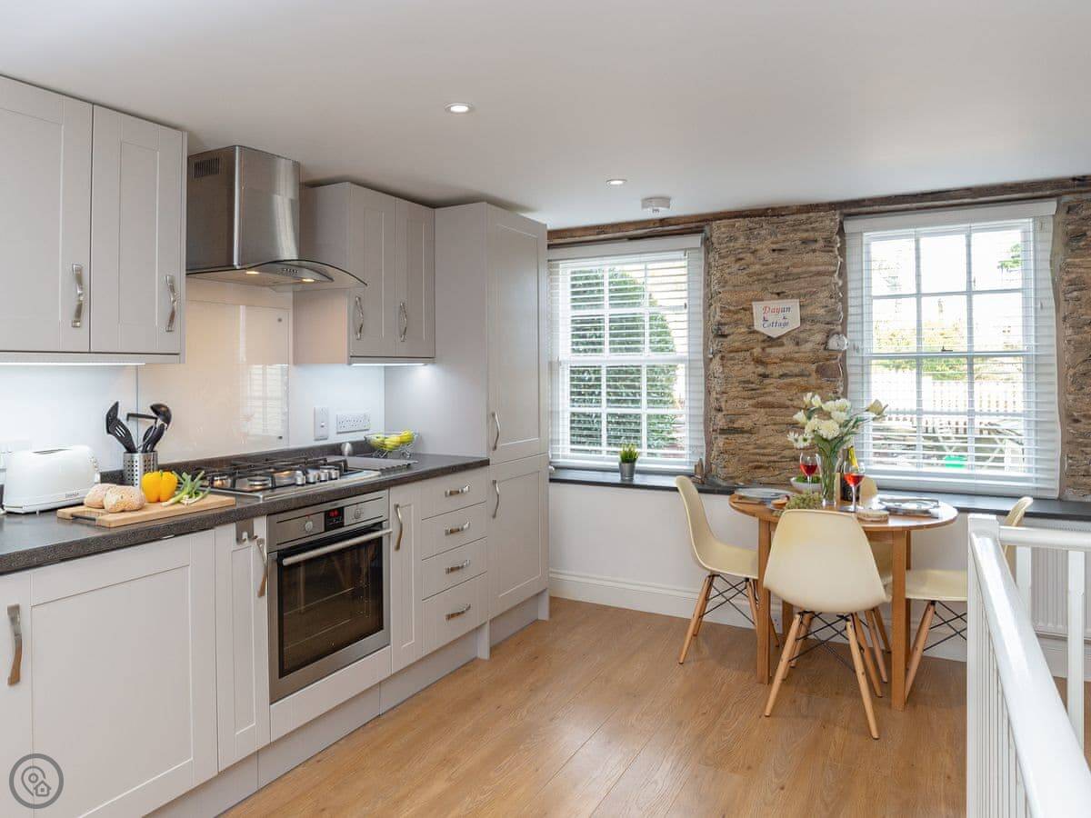 Dayan Cottage is in Fowey town centre. It’s on the ground and first floor of a stone building, with another flat above.