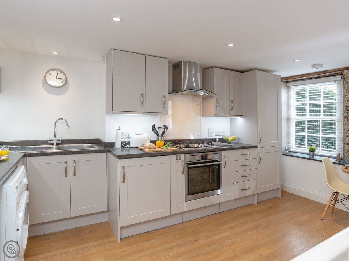 Two bedrooms, both with their own bathrooms. Sleeps three. It’s been done up nicely inside but still has the old windows and stone walls. I’d call it comfortable, not fancy. It’s got a 4 Star rating.