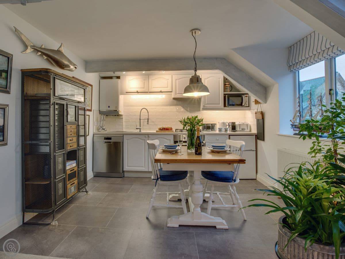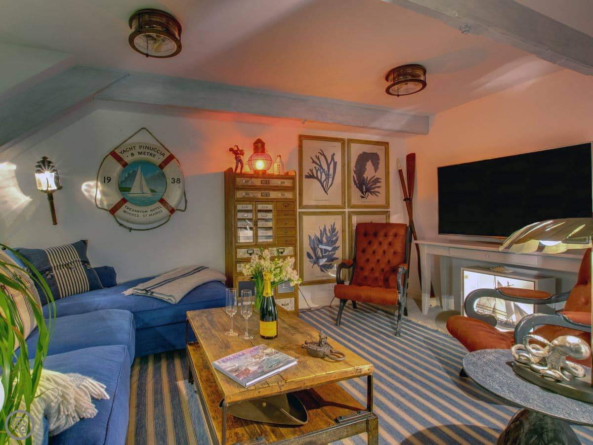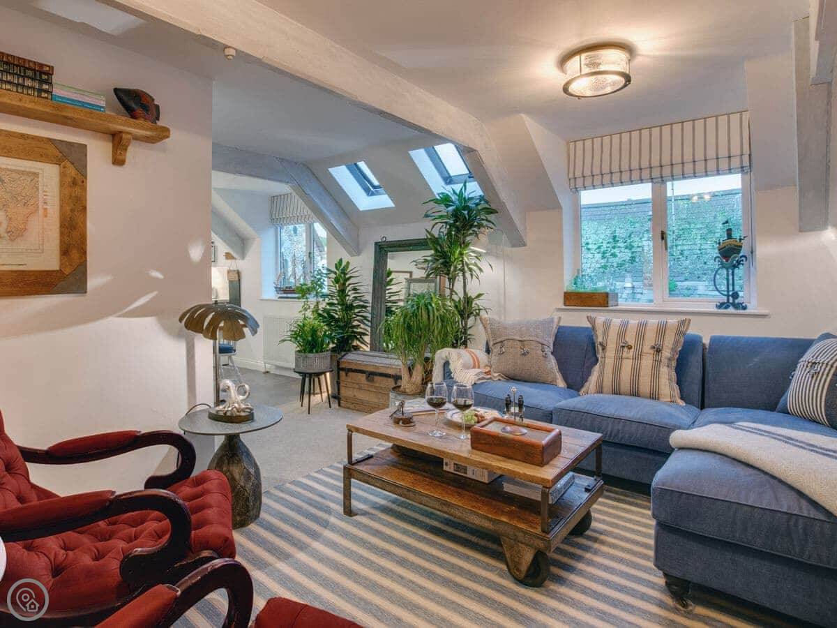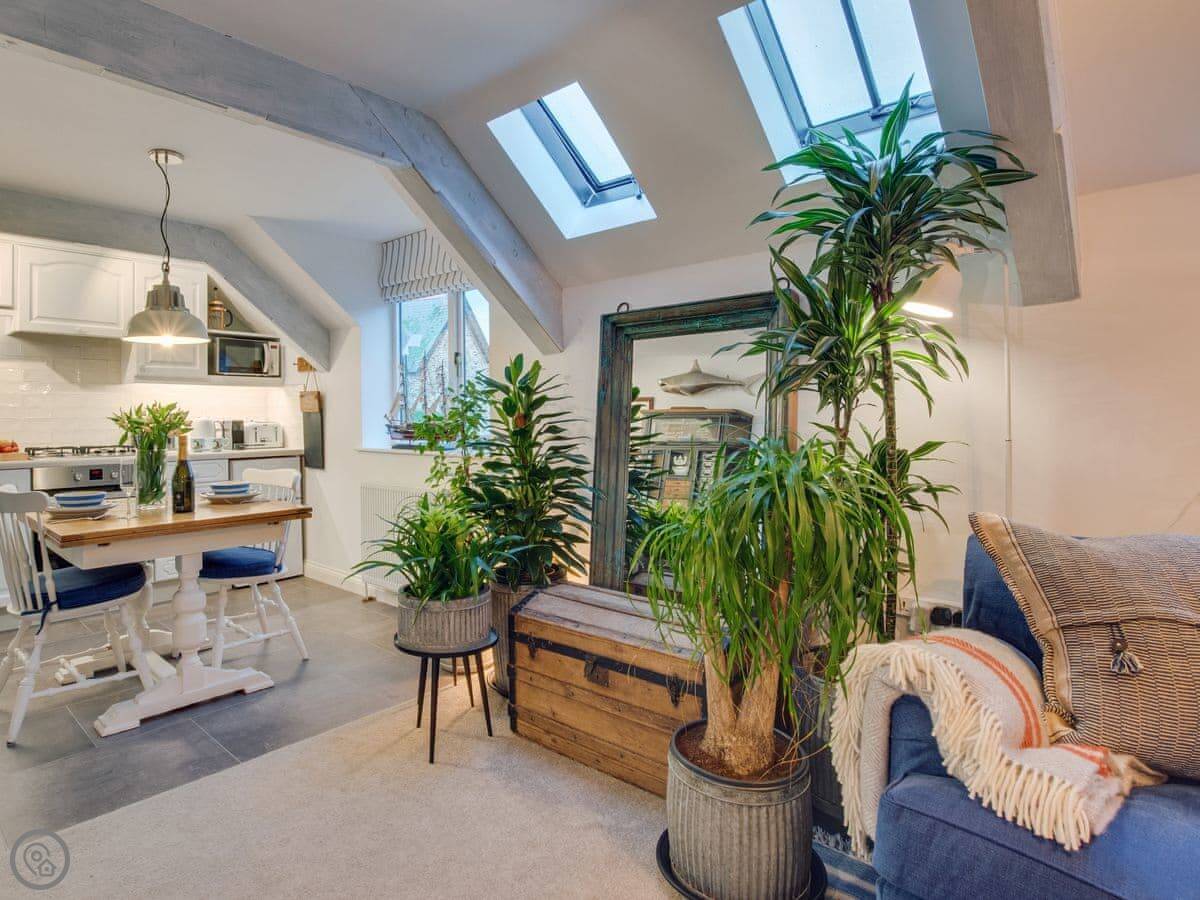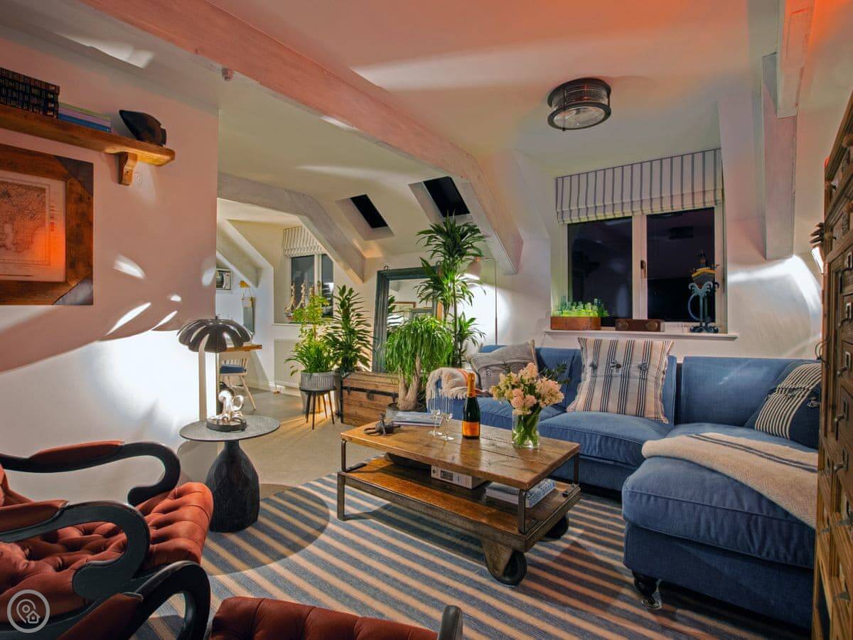 The Salt Loft is a one-bedroom apartment in Fowey. It's for two people. The location is the main thing, you're right in the middle of town, a minute's walk from the water.