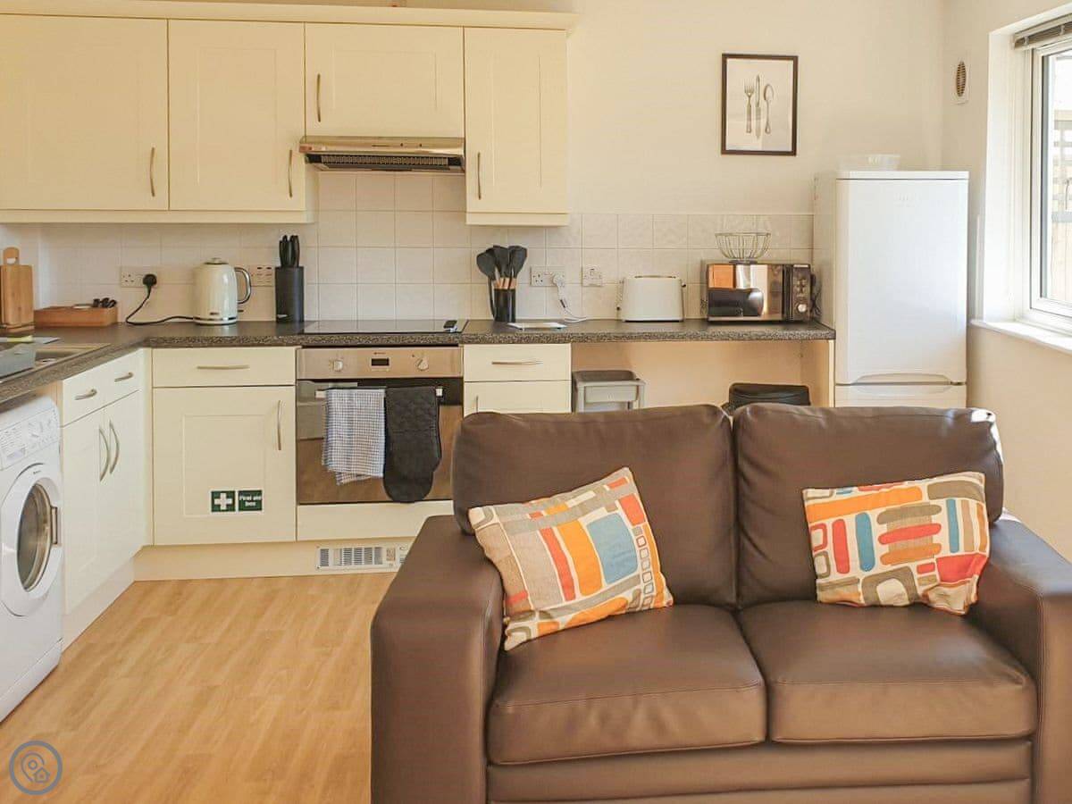 The cottage has the things you'd expect: a washing machine, dishwasher, WiFi, TV. Bedding and towels are included. There's parking right there.