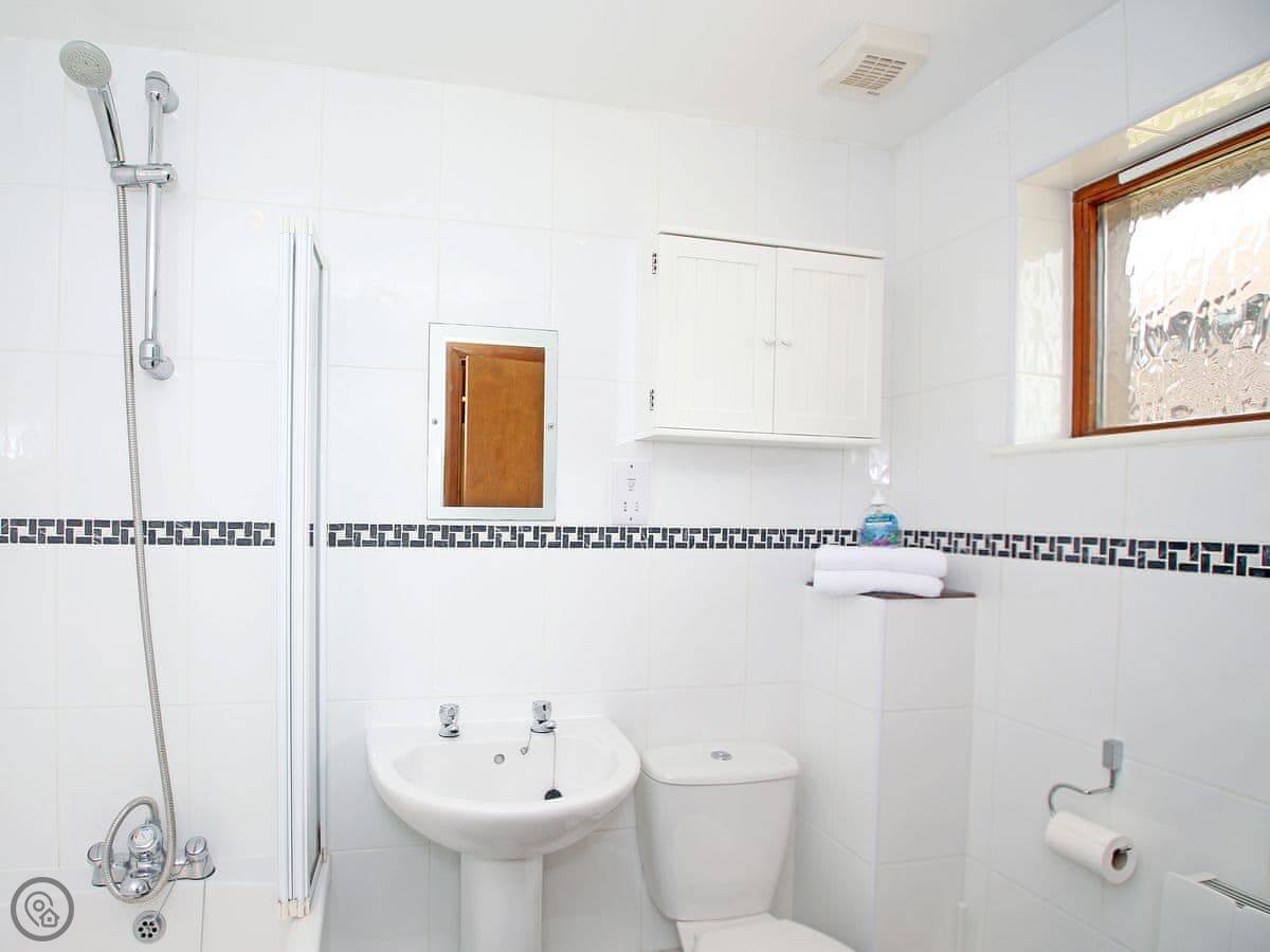 The deck is not fully enclosed, but the garden area around it is. You can bring up to two dogs. There's a washing machine, a TV, and the wifi works. Bedding and towels are included. We can provide a cot and a highchair if you need them. Parking is right outside.