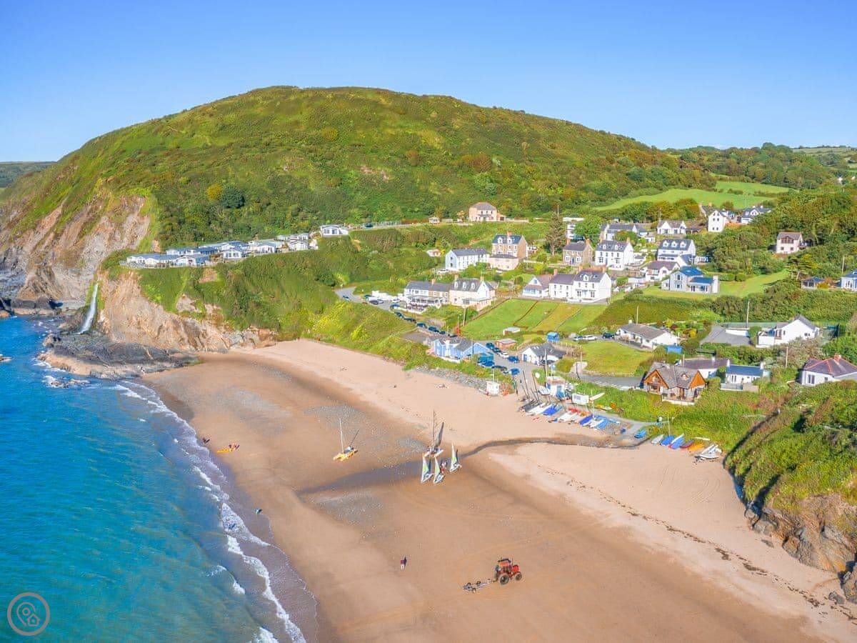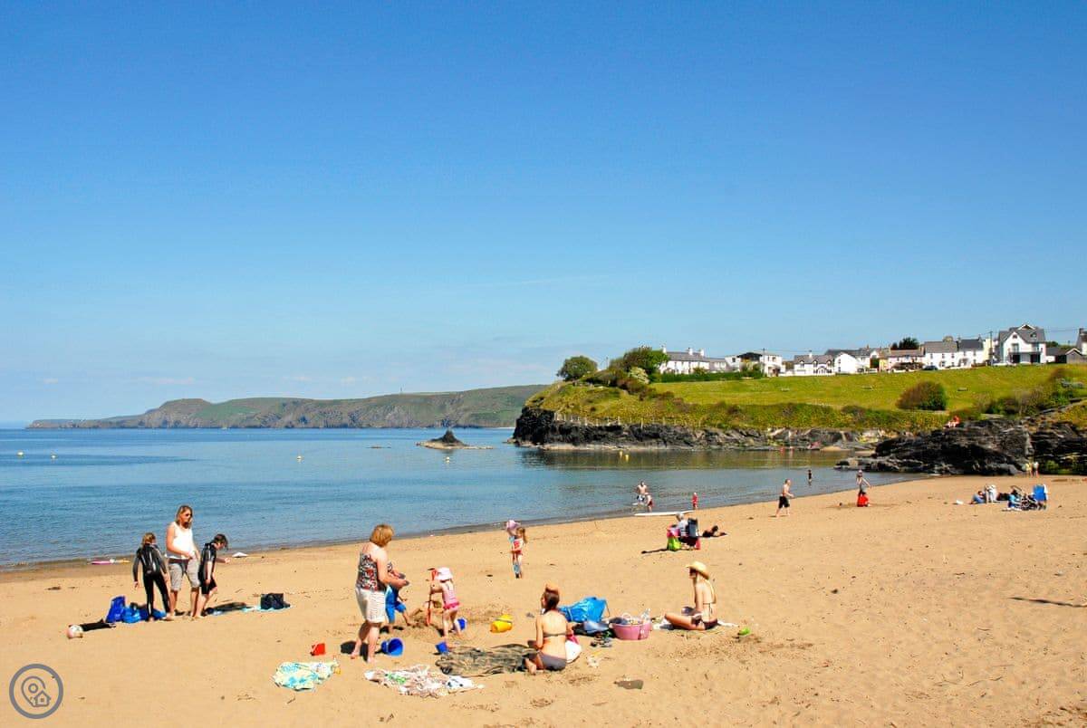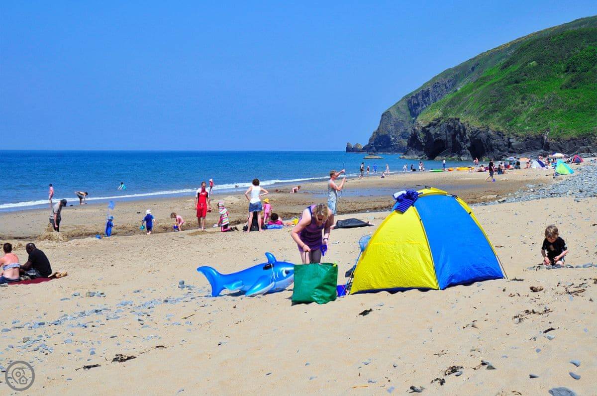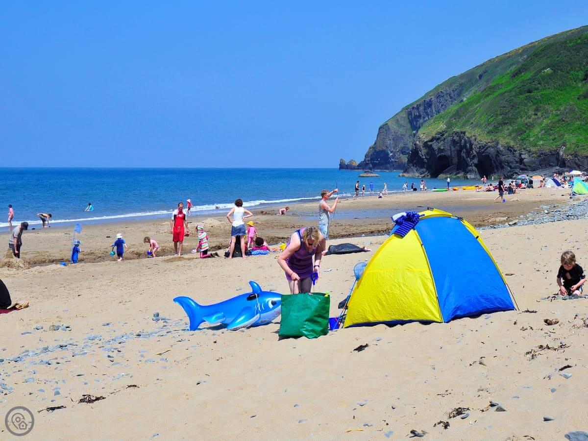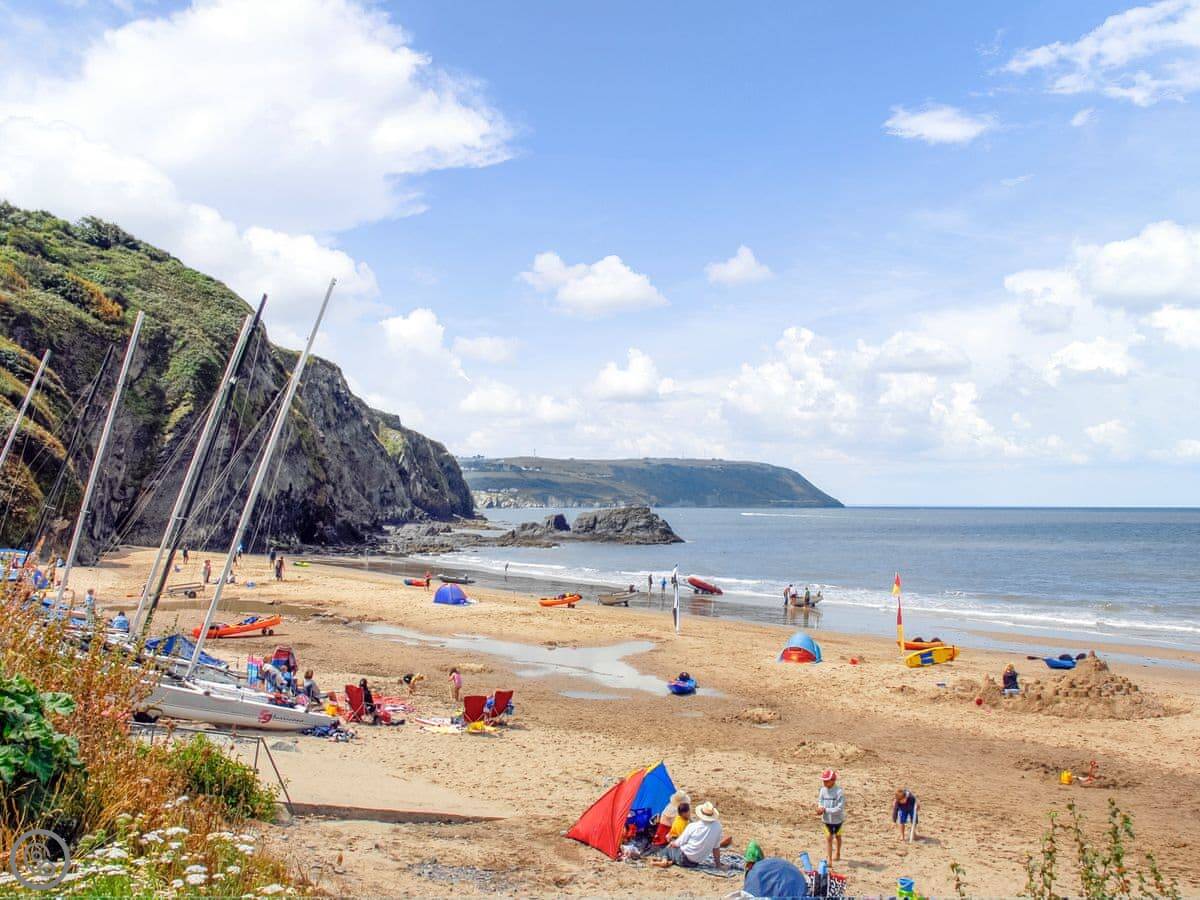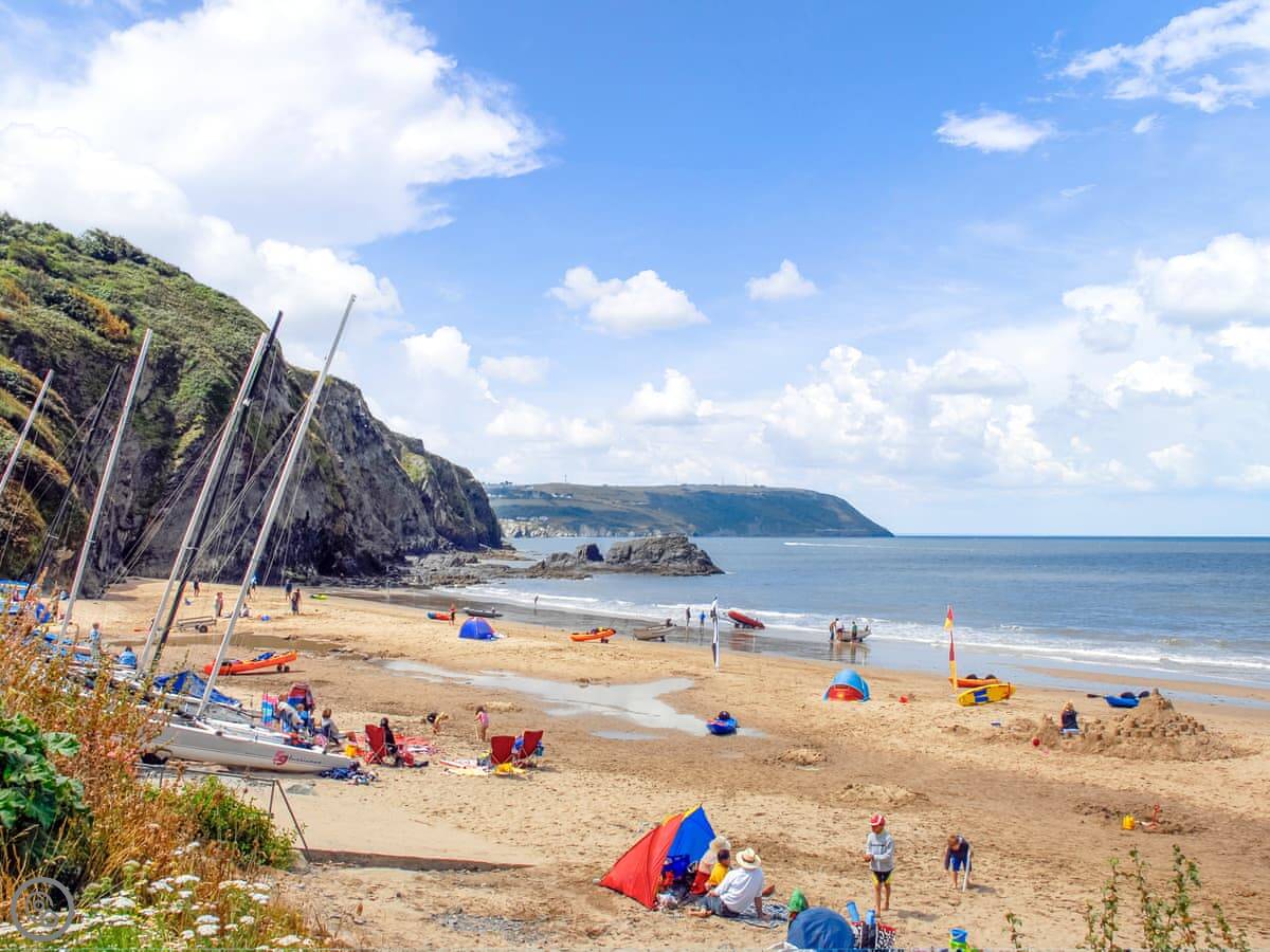 You can see dolphins from the beach sometimes. At low tide you can walk along the sand to Penbryn beach. The Wales Coast Path is right there for cliff walks.