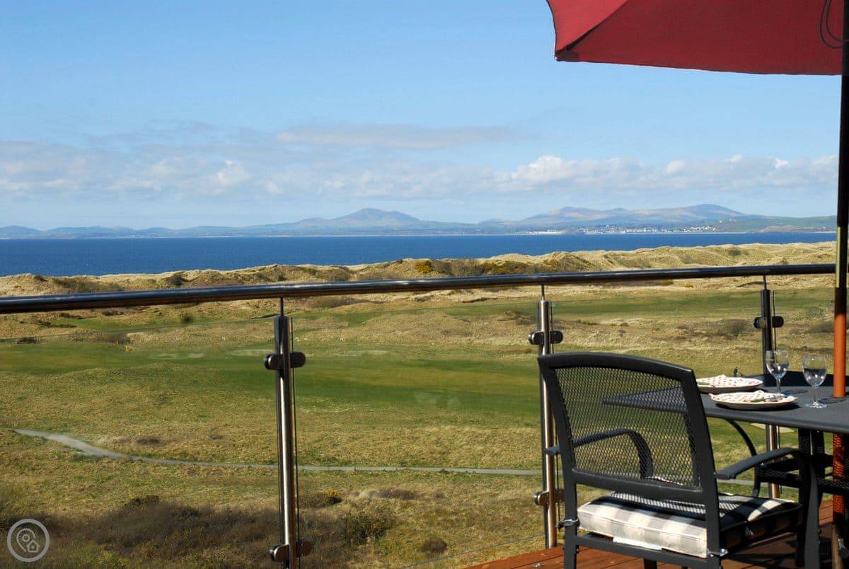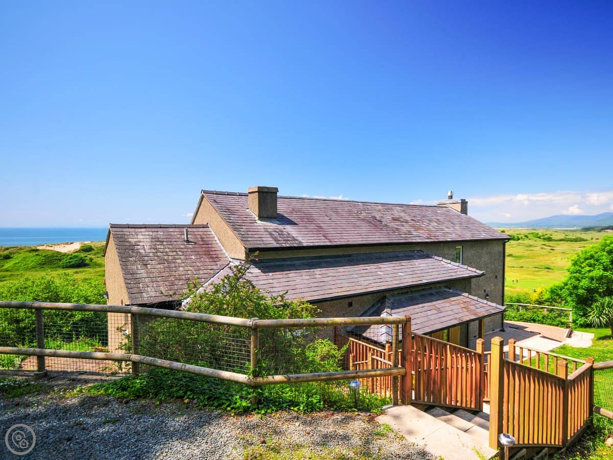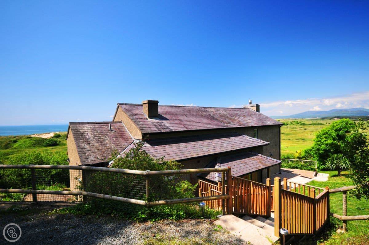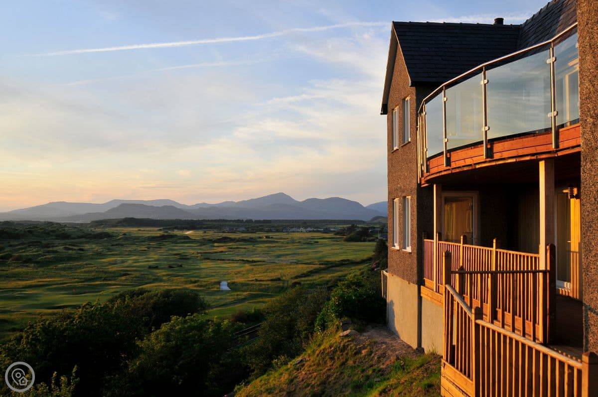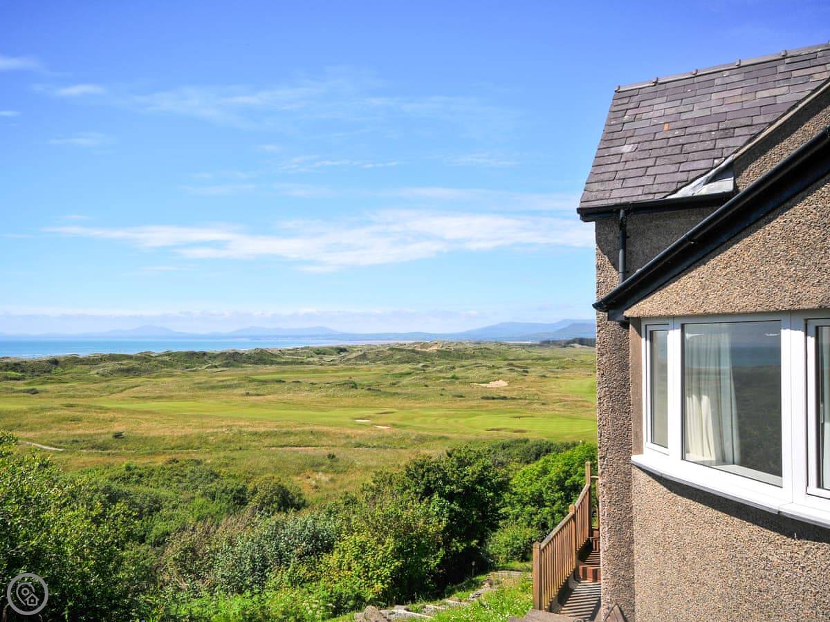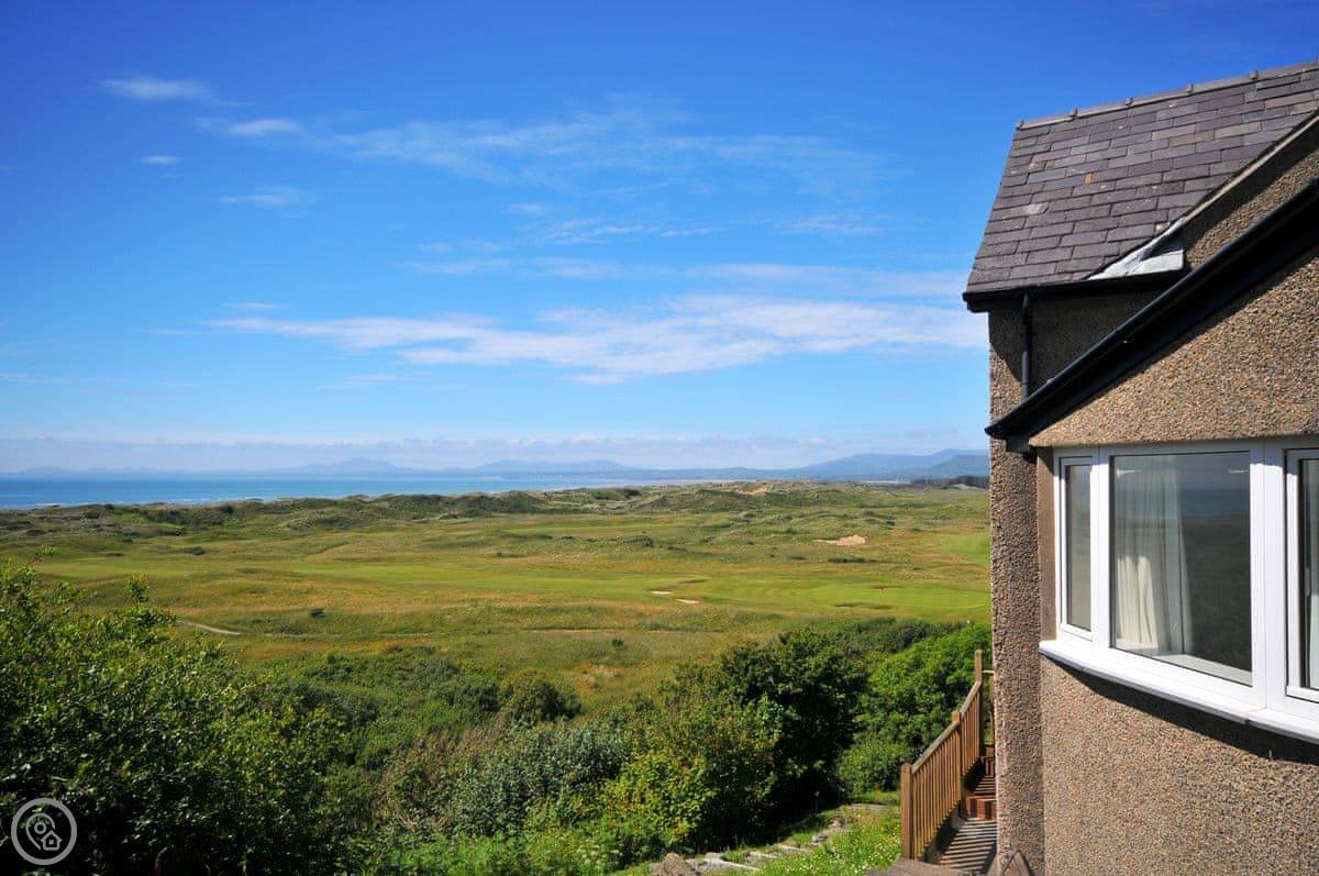 Tir Gafr is on the outskirts of Harlech. It's a modern house, detached, built into the hill. The front looks out over the golf course to the sea. The view is the main thing. You can see all the way from Snowdon, across the bay to Shell Island.