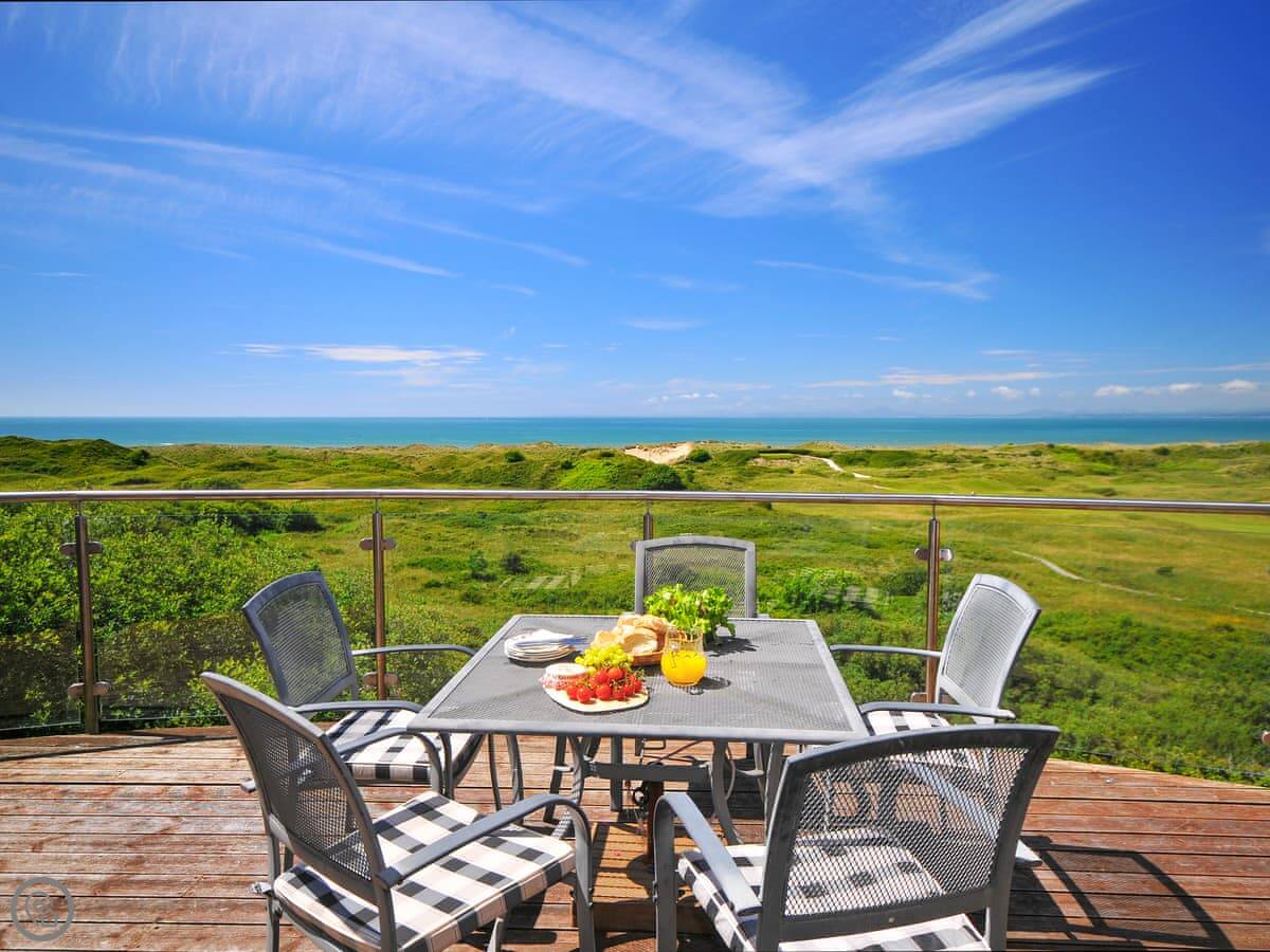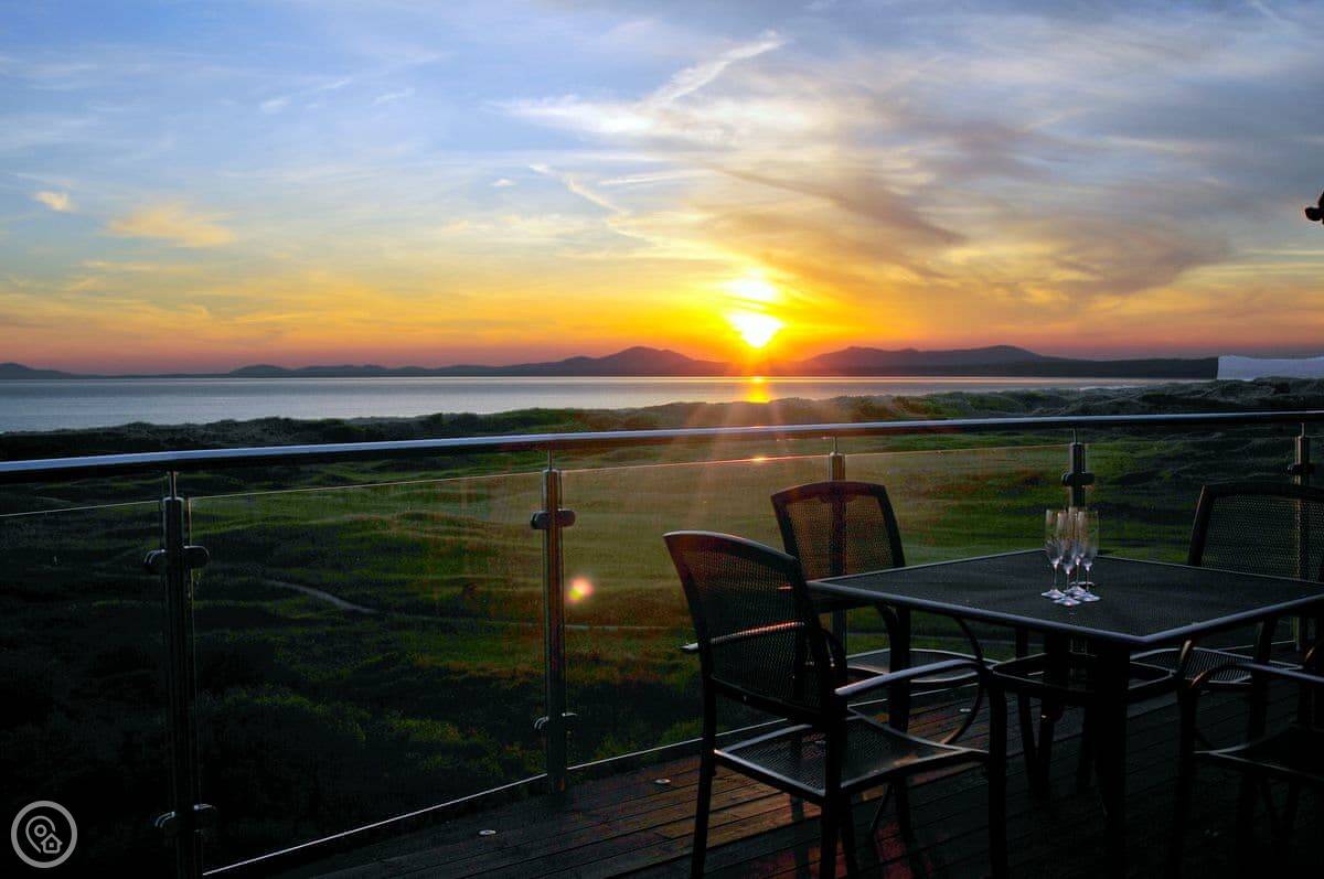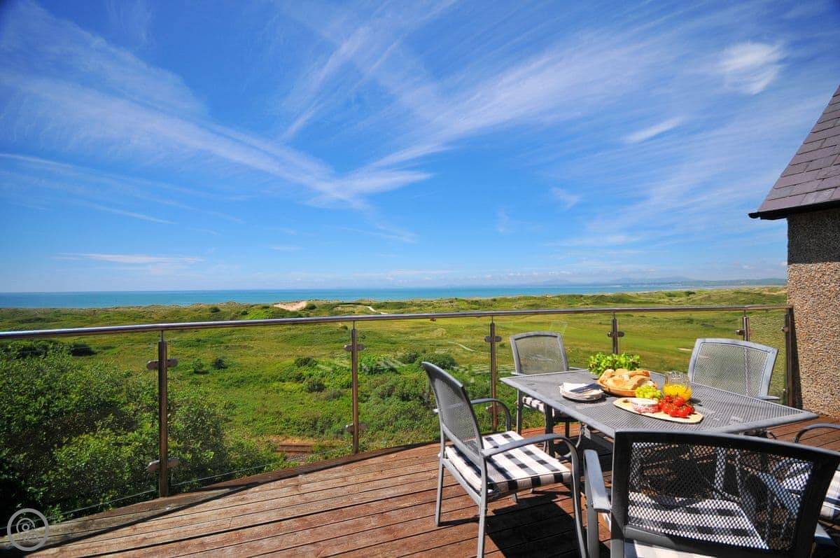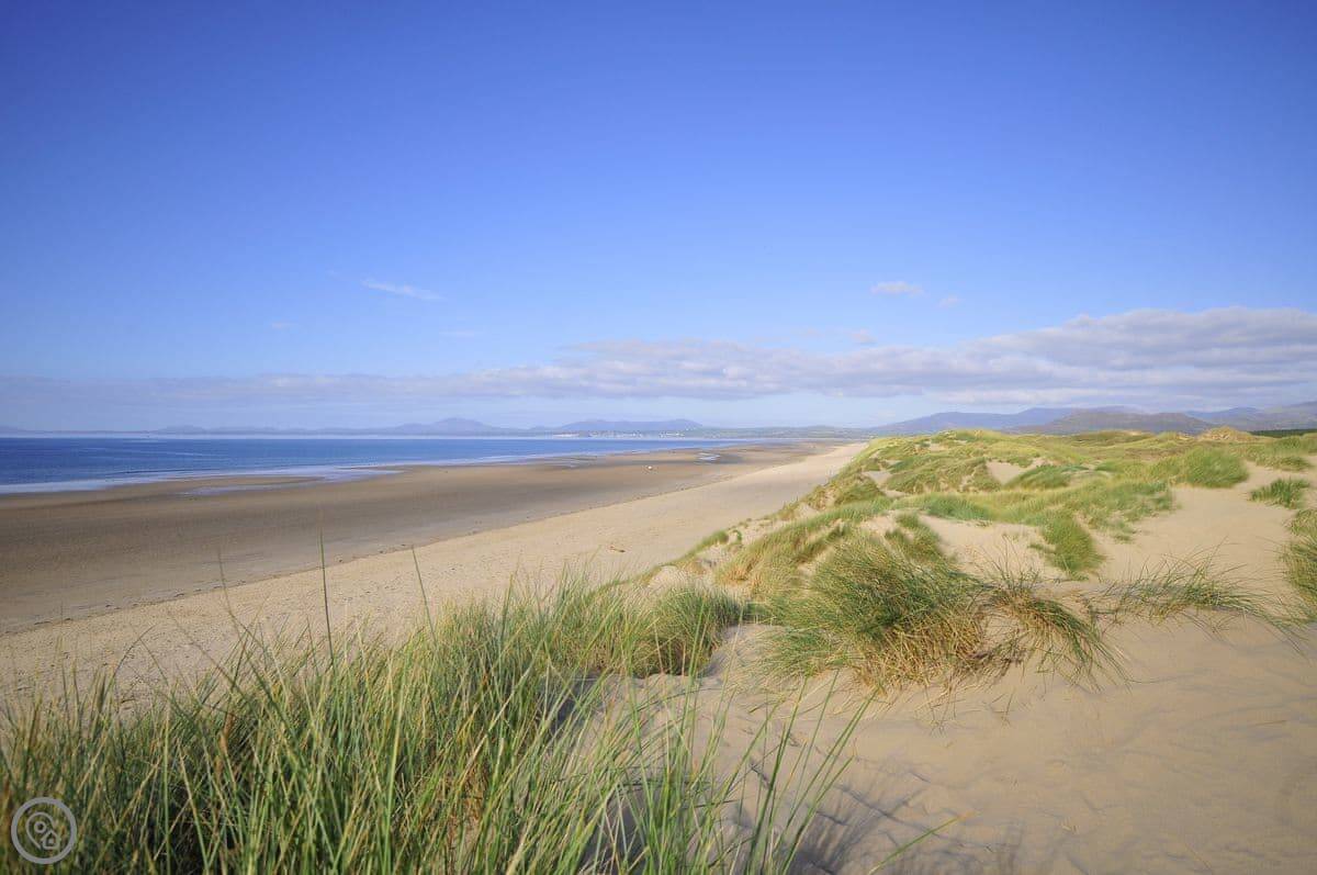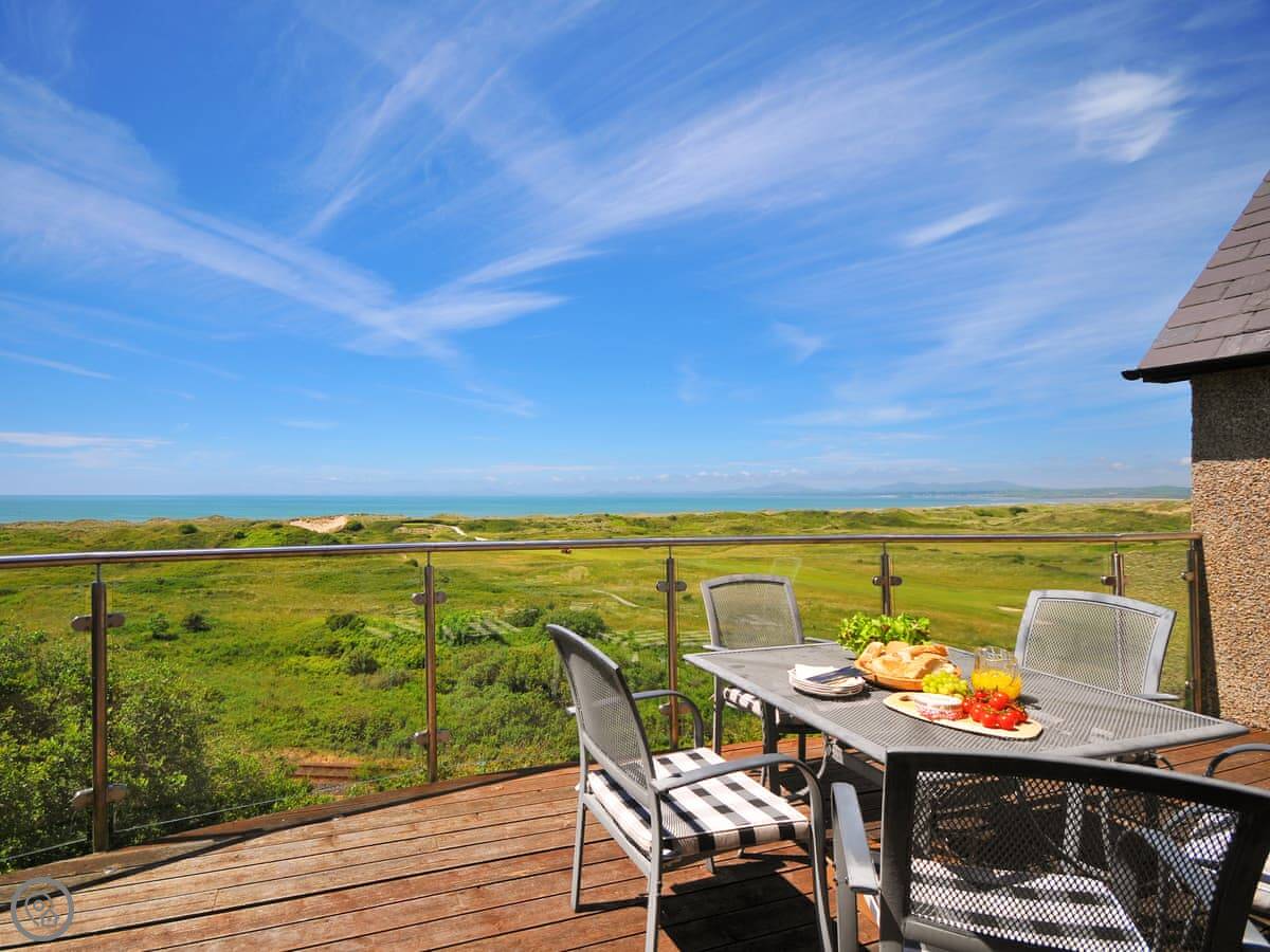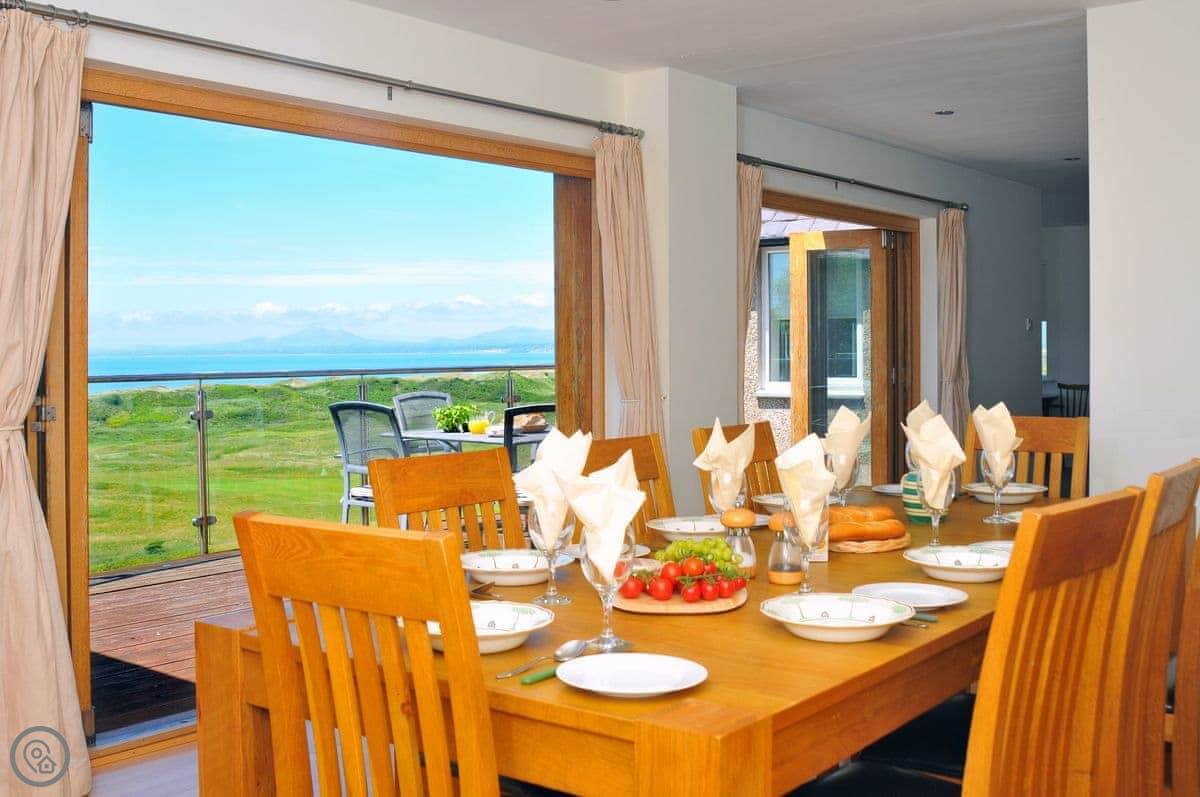 Tir Gafr is on the outskirts of Harlech. It's a modern house, detached, built into the hill. The front looks out over the golf course to the sea. The view is the main thing. You can see all the way from Snowdon, across the bay to Shell Island.