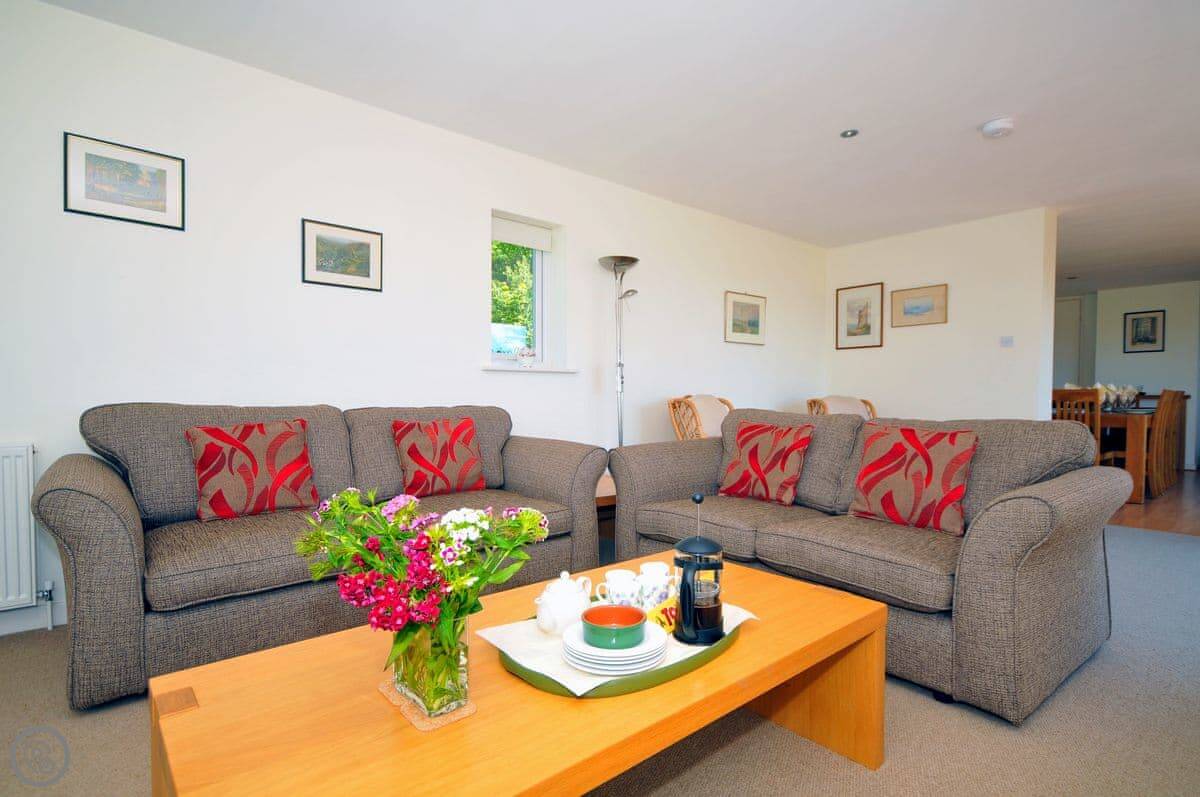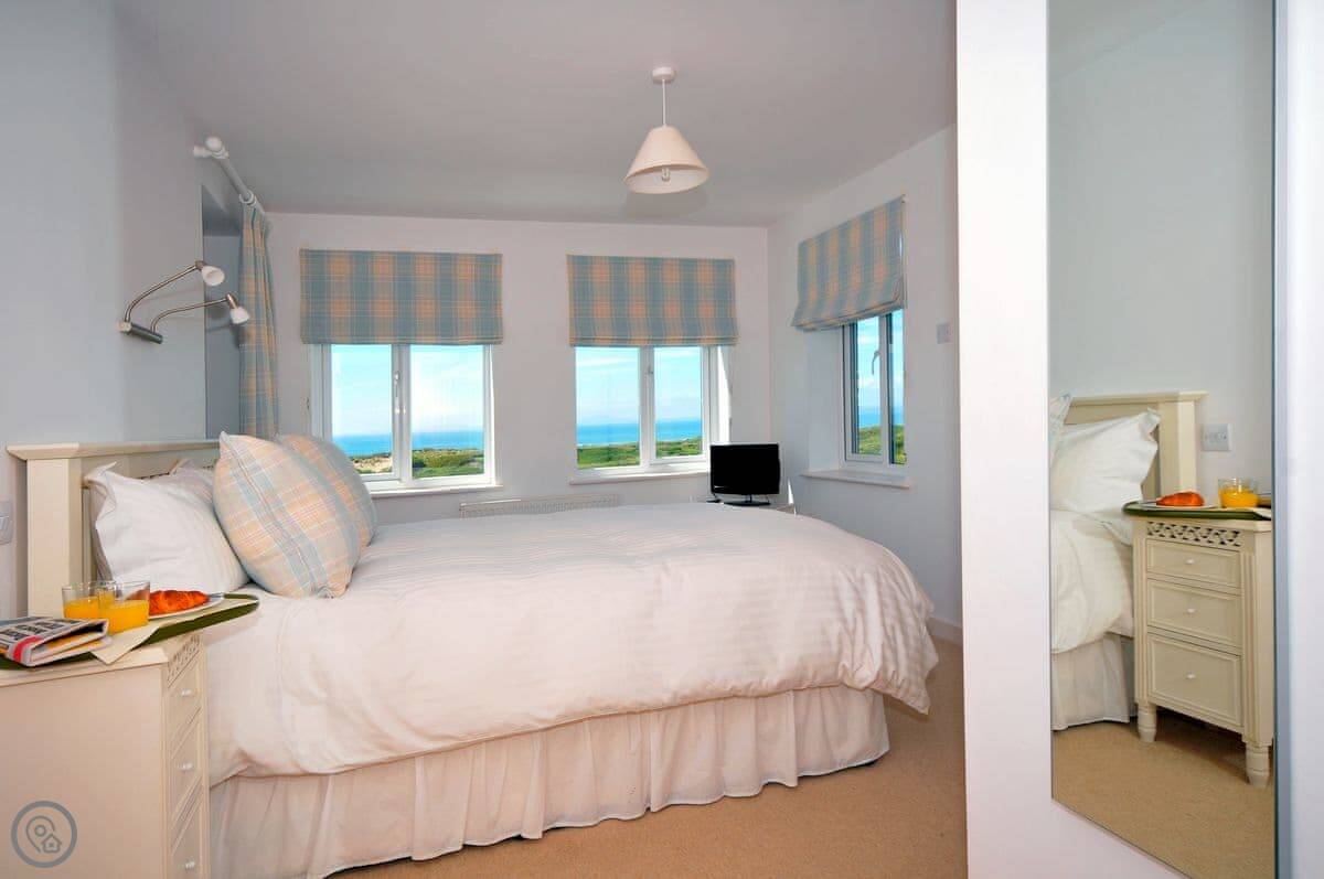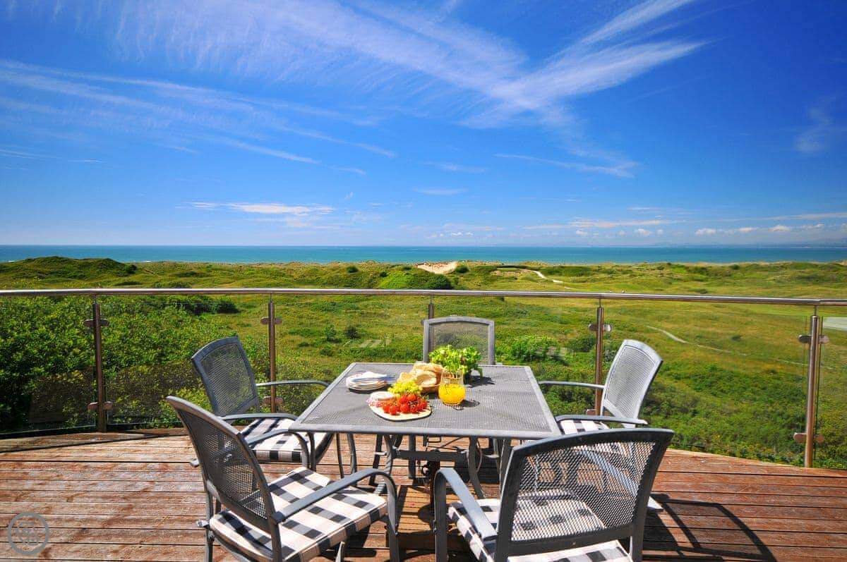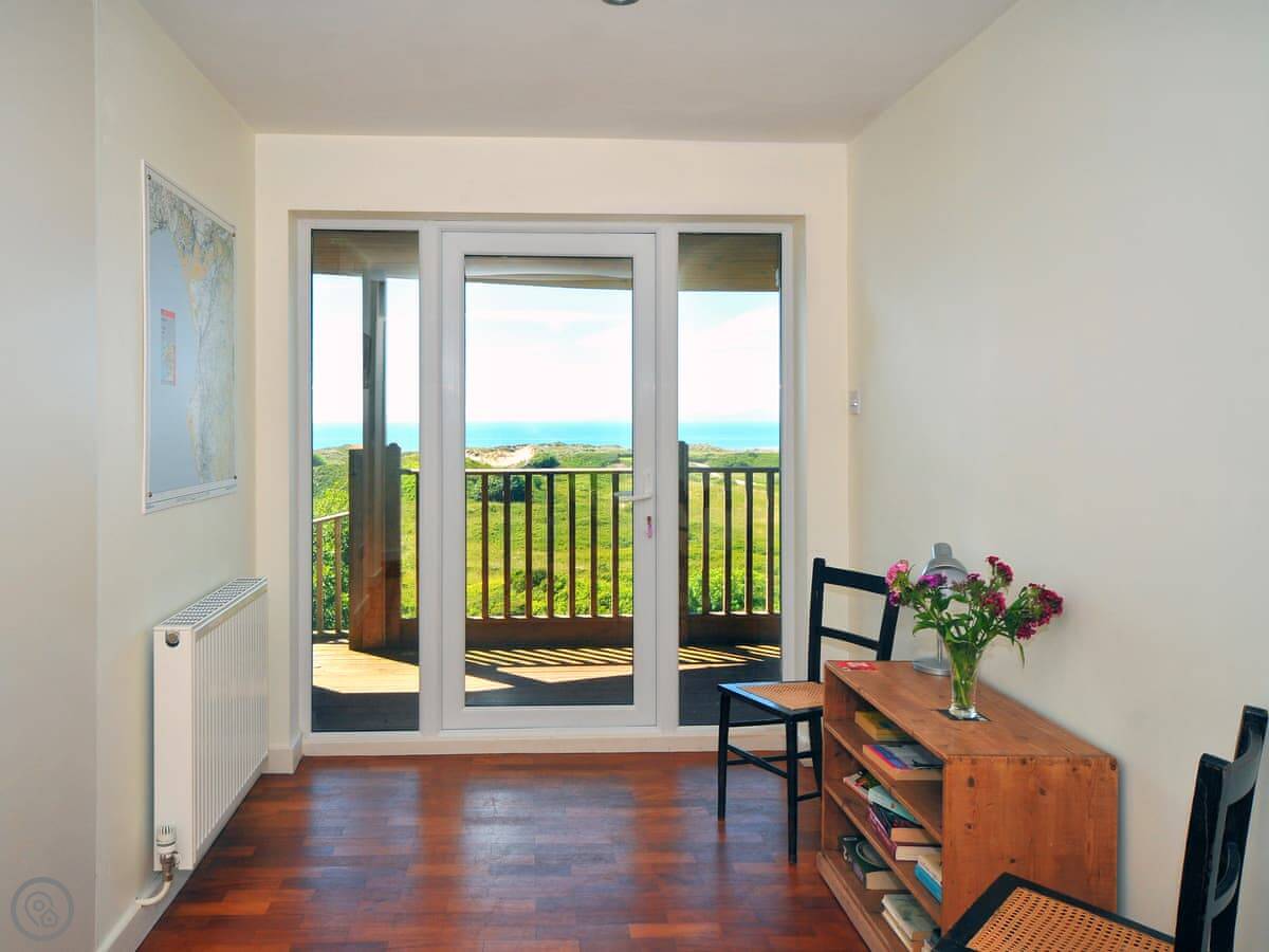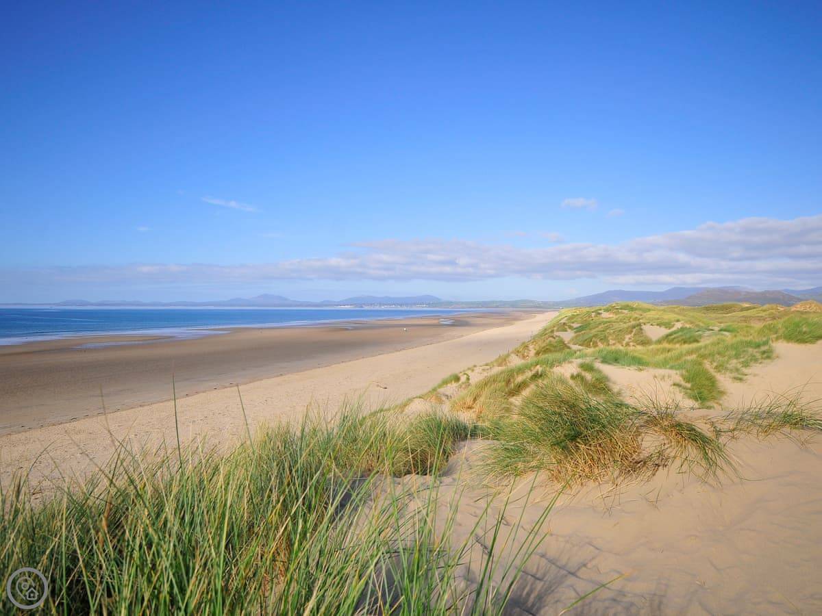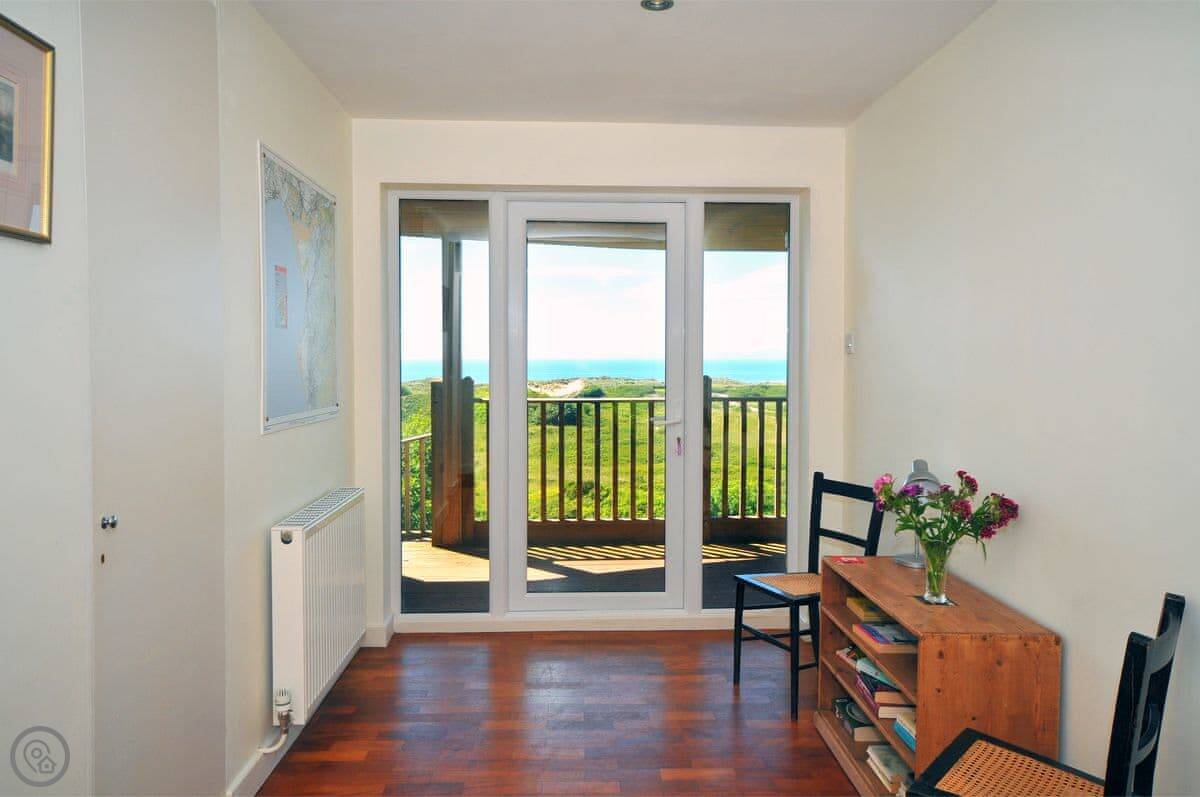 Tir Gafr is on the outskirts of Harlech. It's a modern house, detached, built into the hill. The front looks out over the golf course to the sea. The view is the main thing. You can see all the way from Snowdon, across the bay to Shell Island.