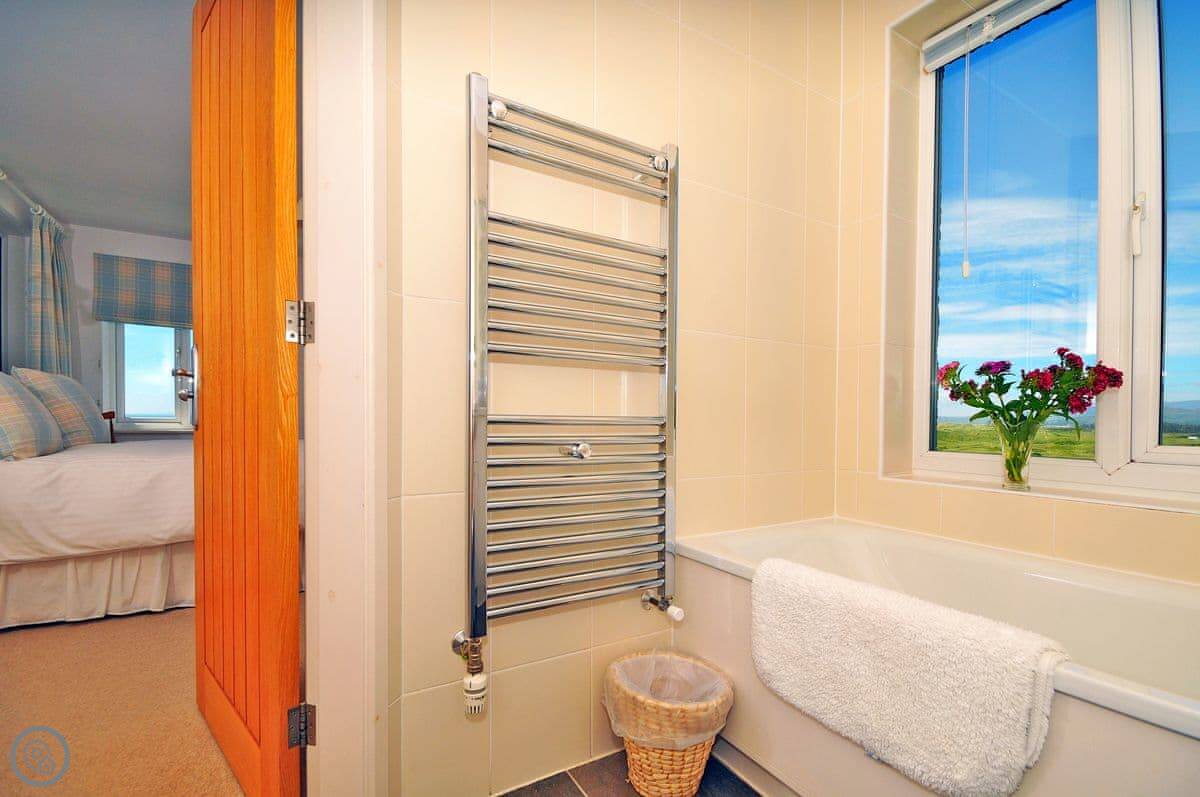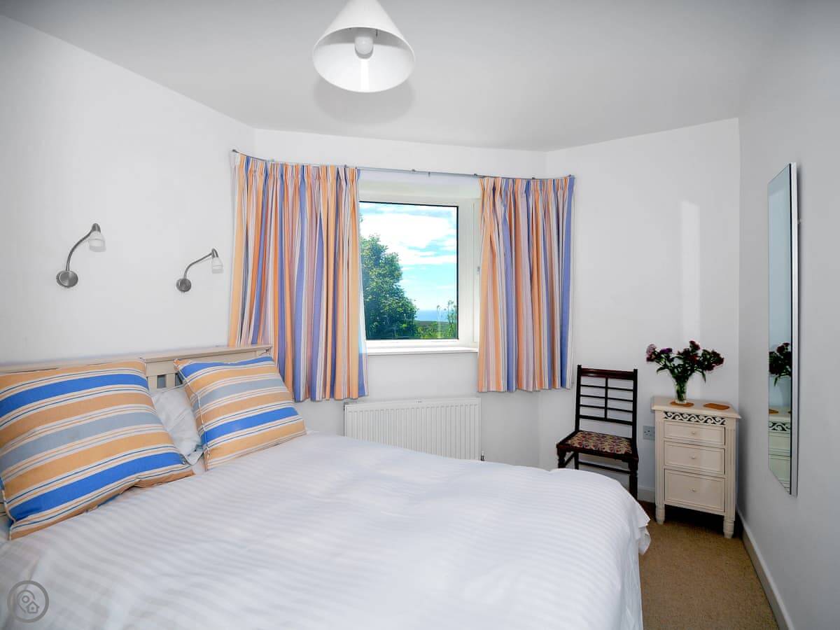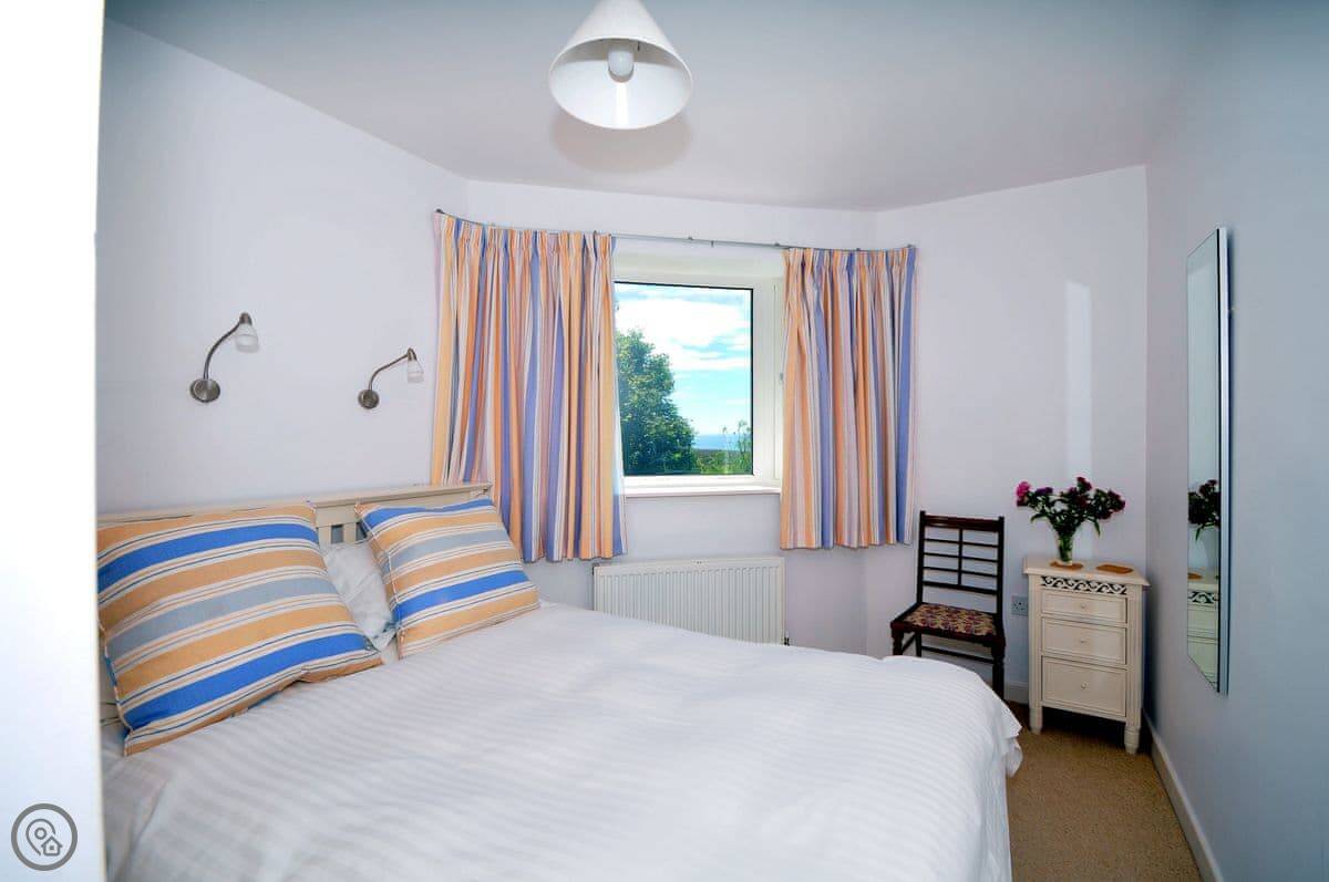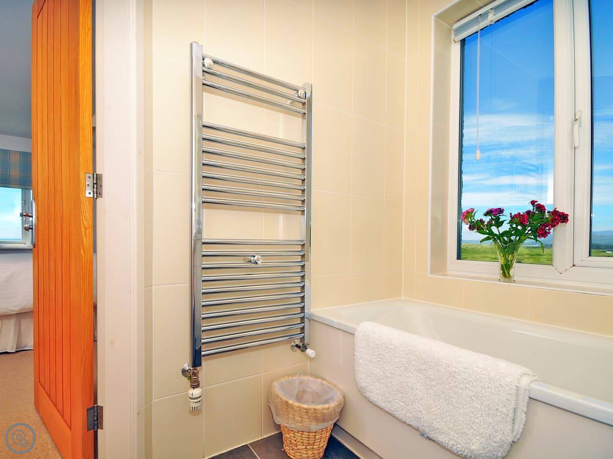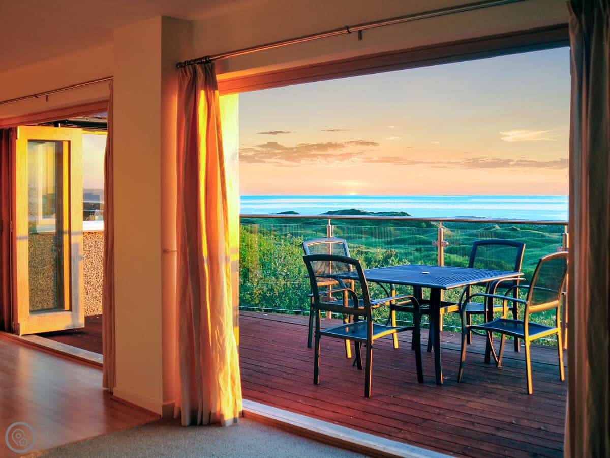 Tir Gafr is on the outskirts of Harlech. It's a modern house, detached, built into the hill. The front looks out over the golf course to the sea. The view is the main thing. You can see all the way from Snowdon, across the bay to Shell Island.