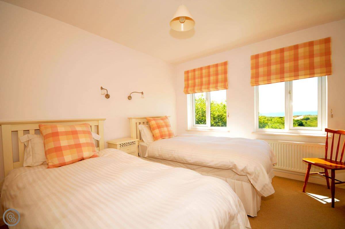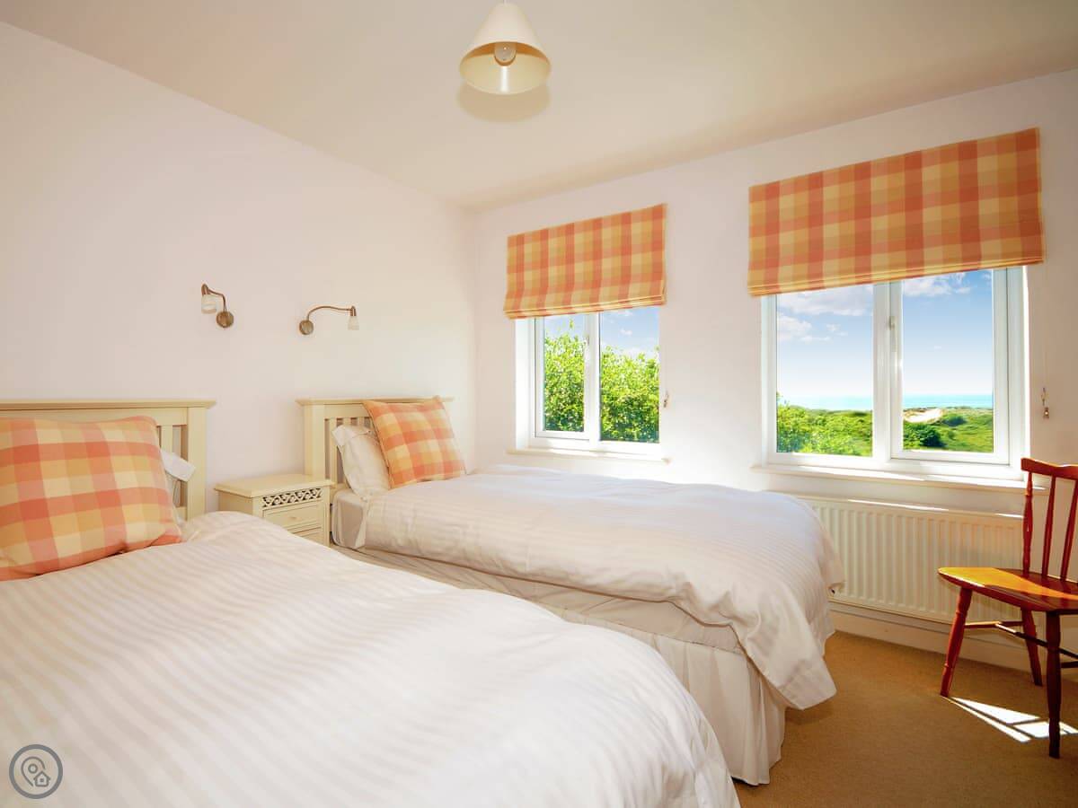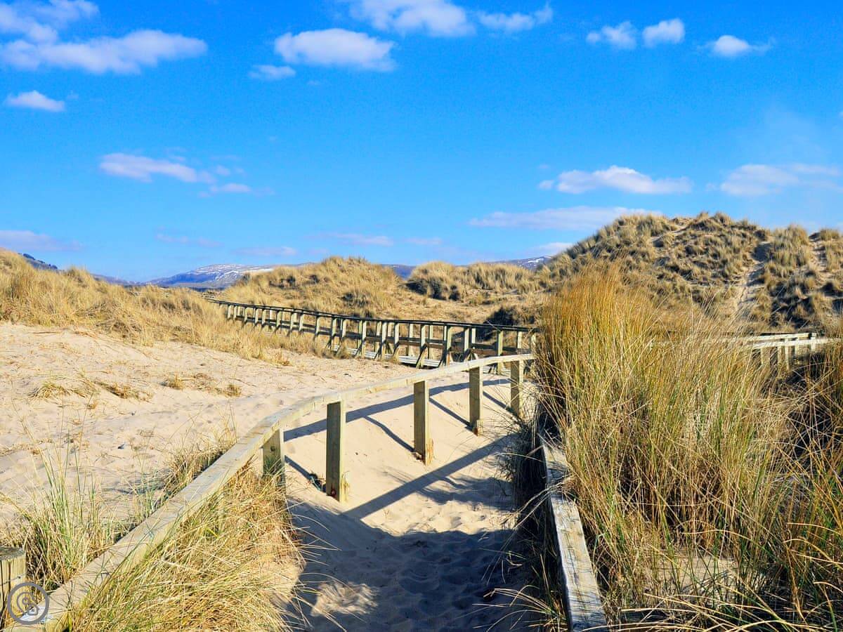 You can walk to the beach from here. It's about a mile, maybe twenty minutes. There's a path through the dunes. The golf course is the Royal St. Davids, right there. The town has a few shops and a couple of pubs. You can get supermarket deliveries, which we do.