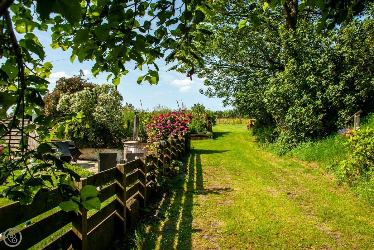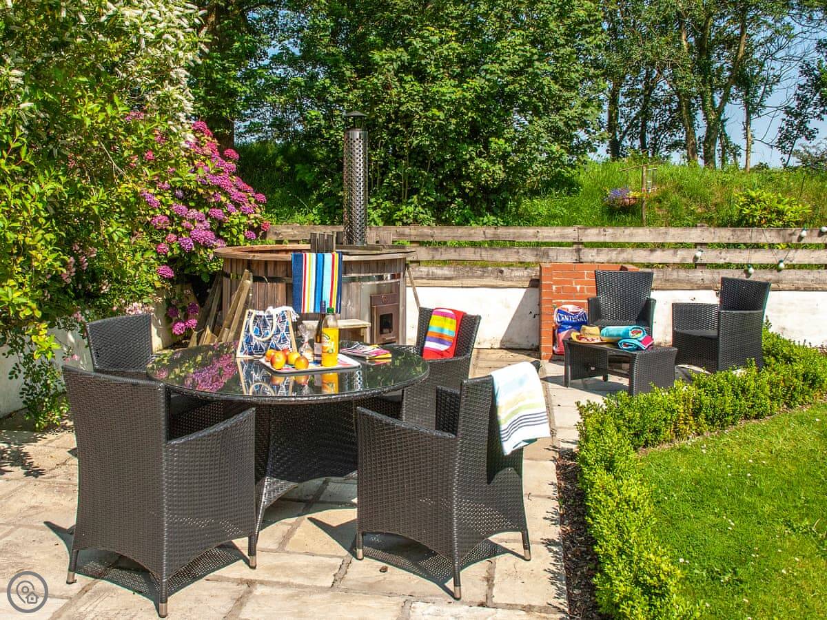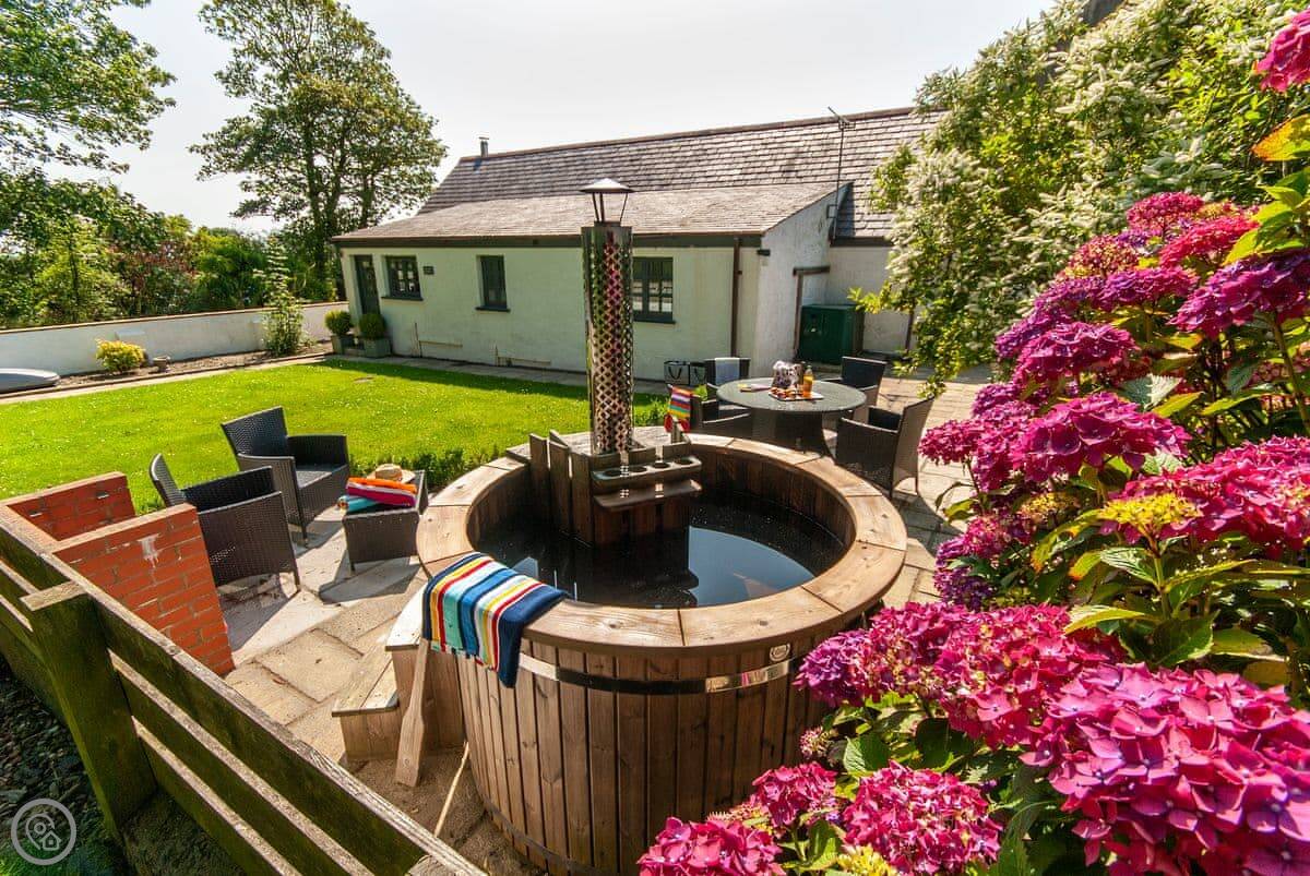 Outside, there's a wood-fired hot tub. You have to light it yourself, it takes a few hours to heat. It's under the open sky. There's also a BBQ.