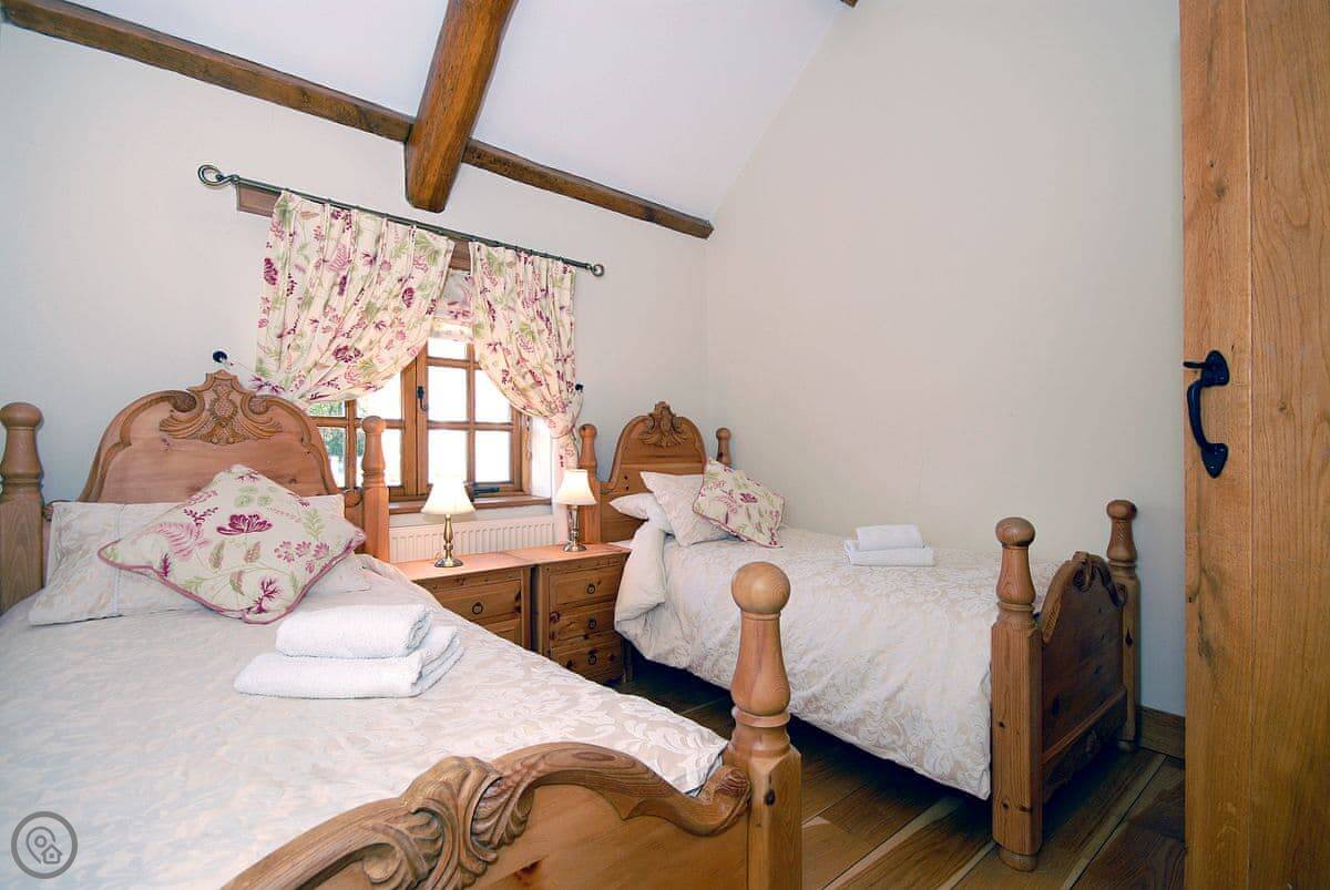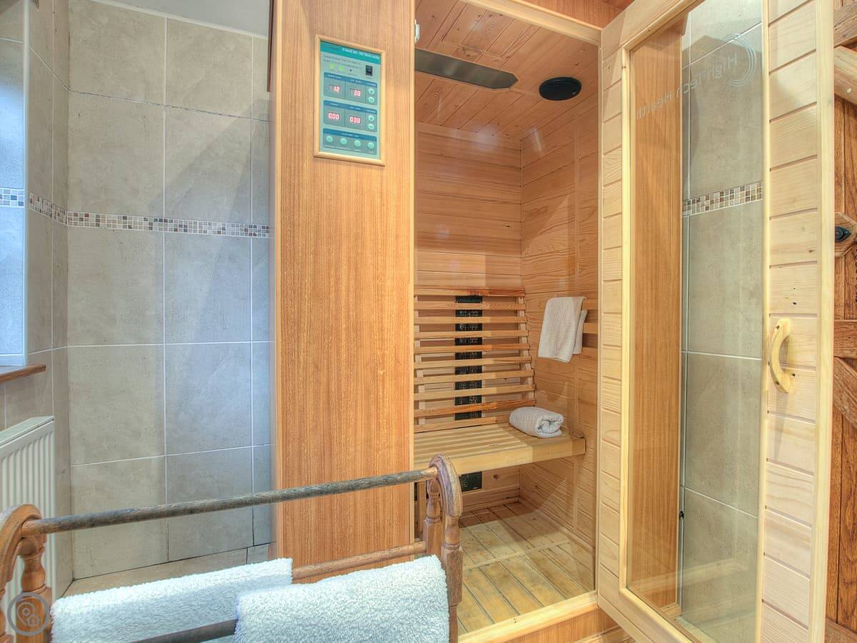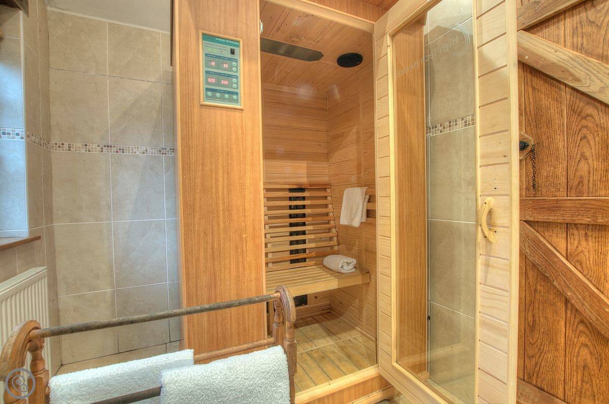It sleeps six, in three bedrooms. There are two bathrooms, which is handy. One bedroom has an en-suite with a small sauna for two people.