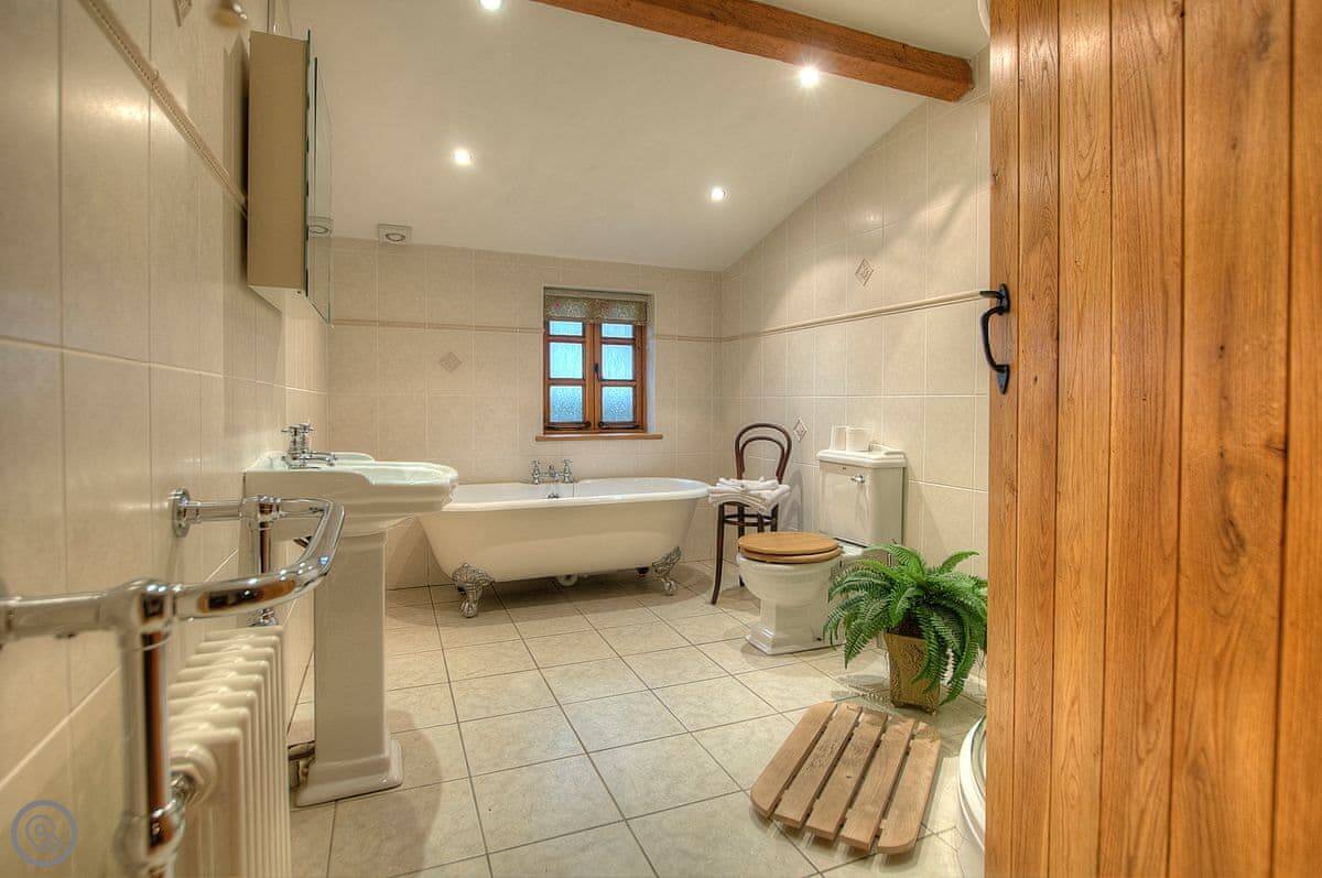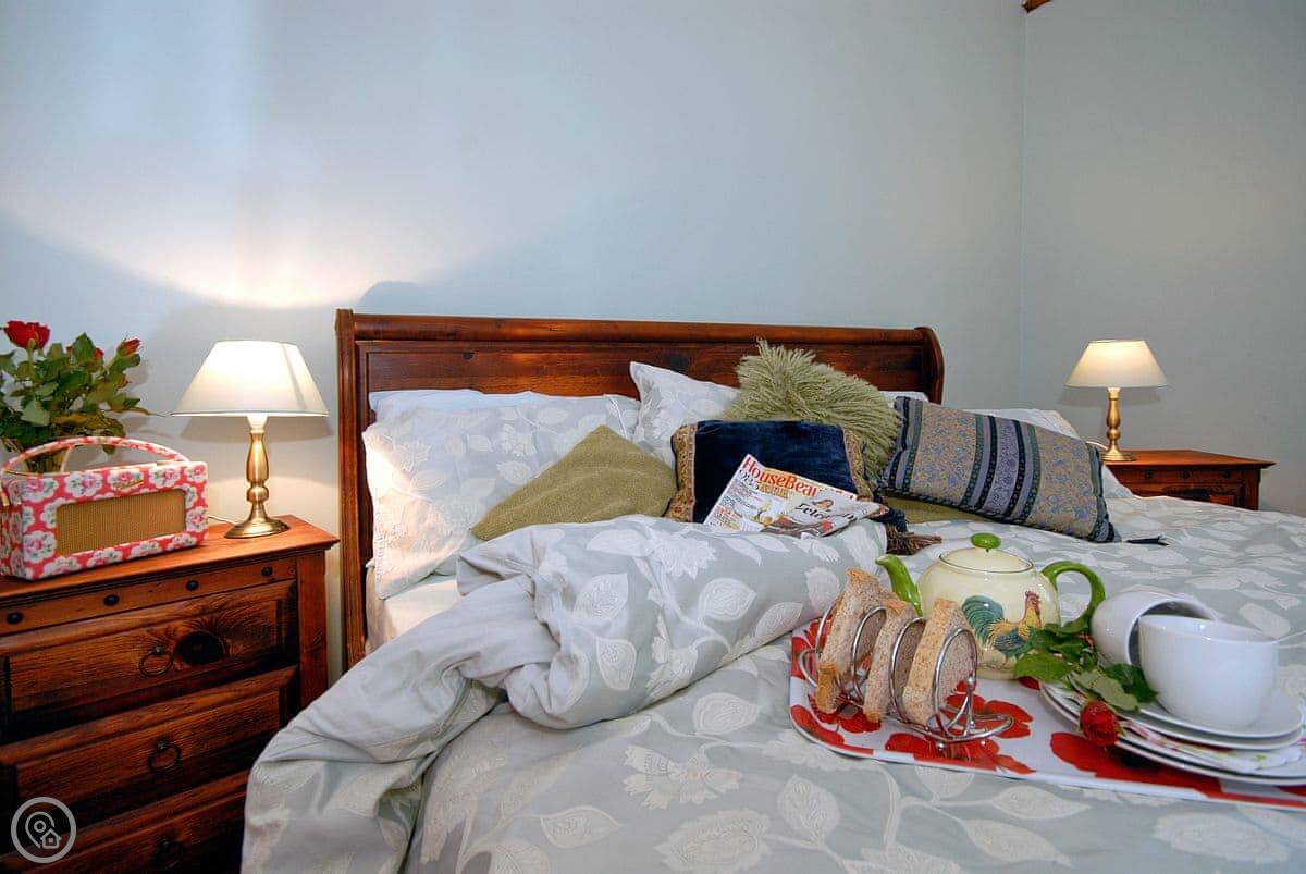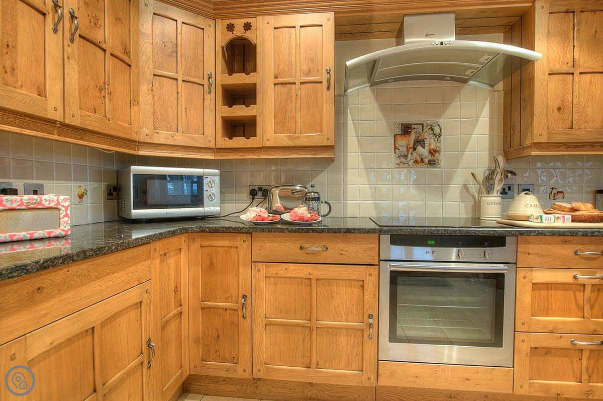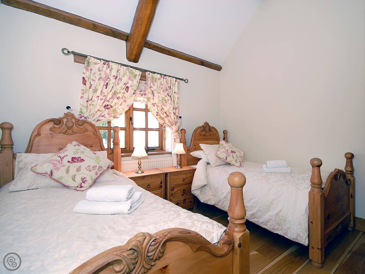 It sleeps six, in three bedrooms. There are two bathrooms, which is handy. One bedroom has an en-suite with a small sauna for two people.