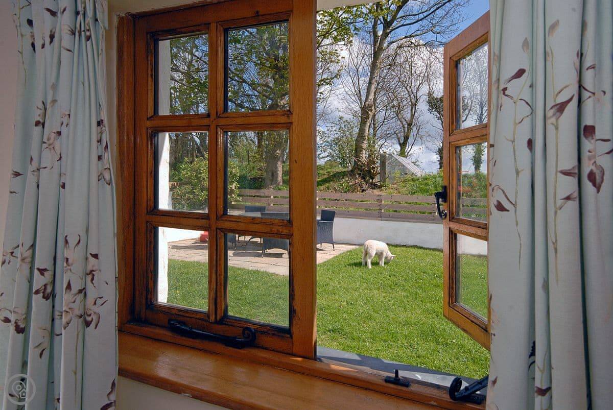 This cottage is Yr Hen Glowty. It's on our farm near Wallis, in Pembrokeshire. We've been here three generations. It's a stone barn we've done up. Detached, so it's just you. The garden's enclosed.
