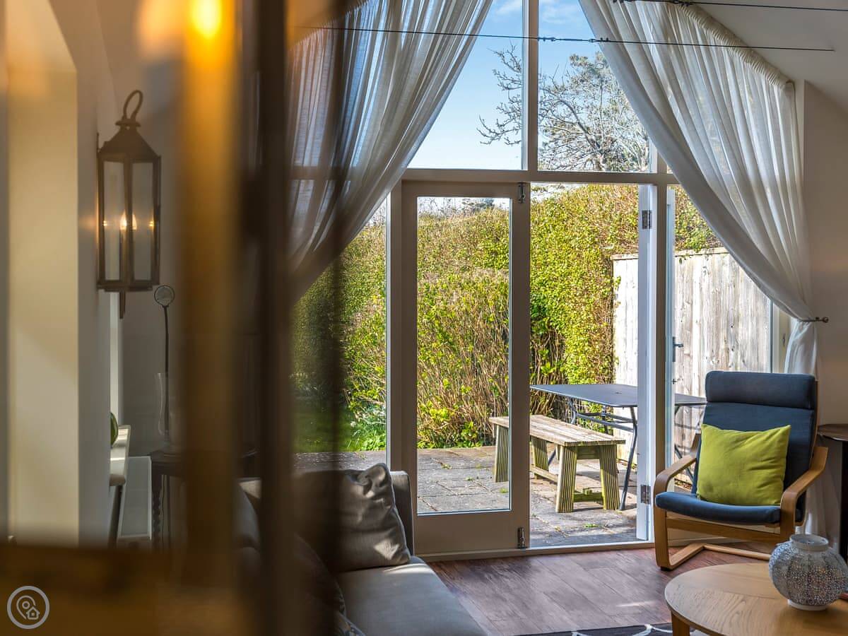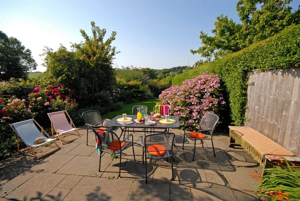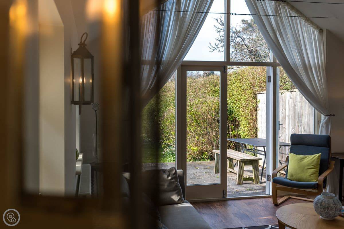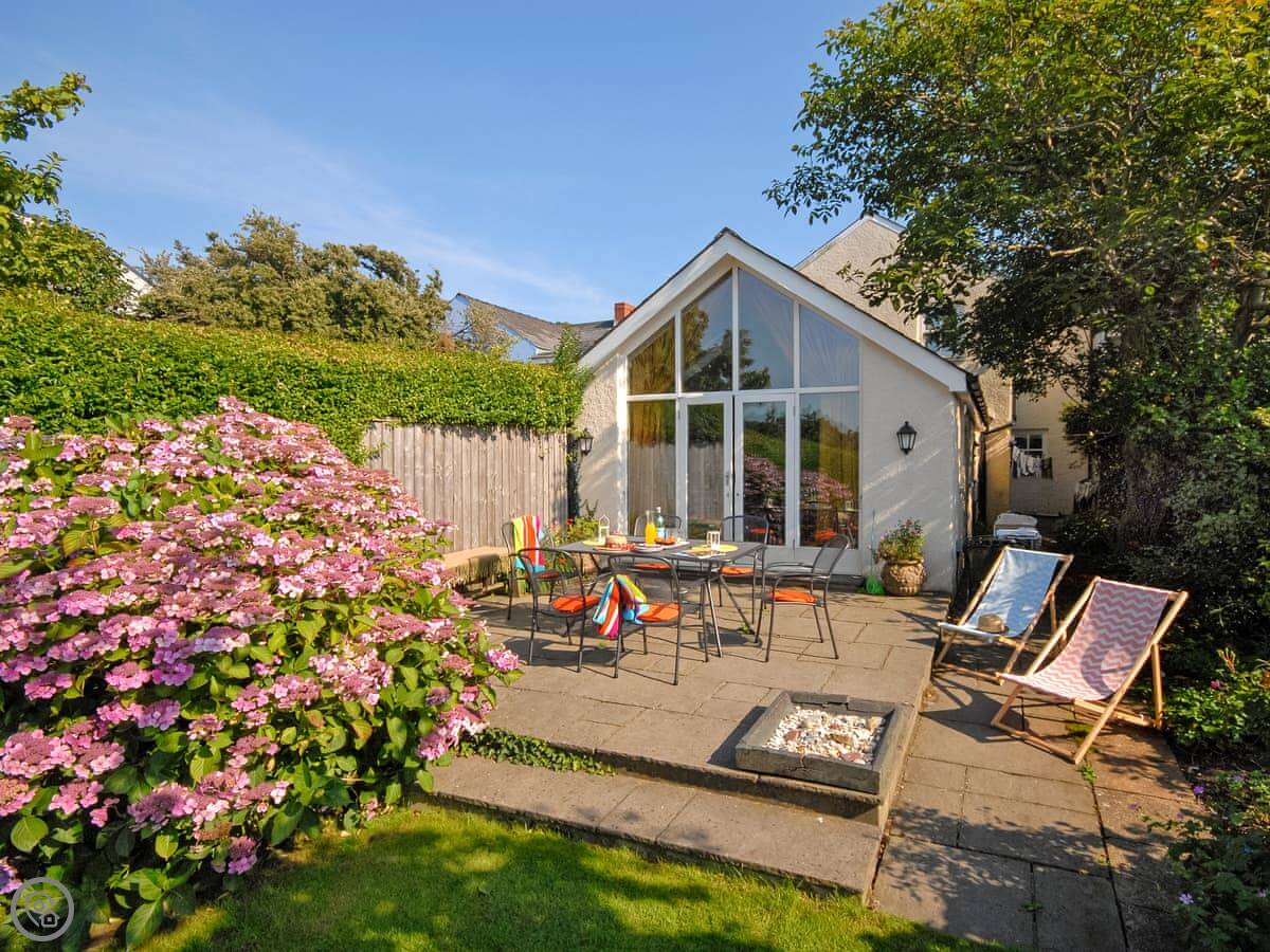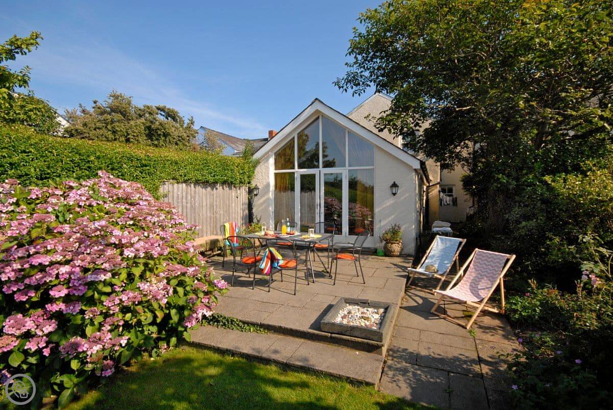 It sleeps eight, with four bedrooms and three bathrooms. The garden is enclosed and private.