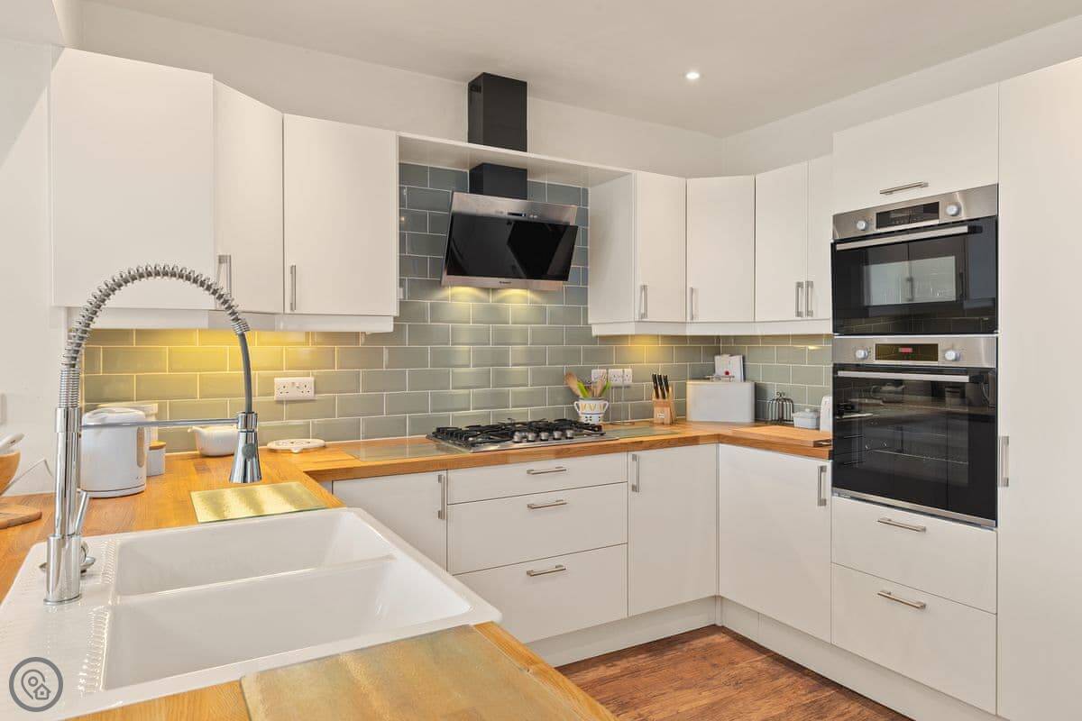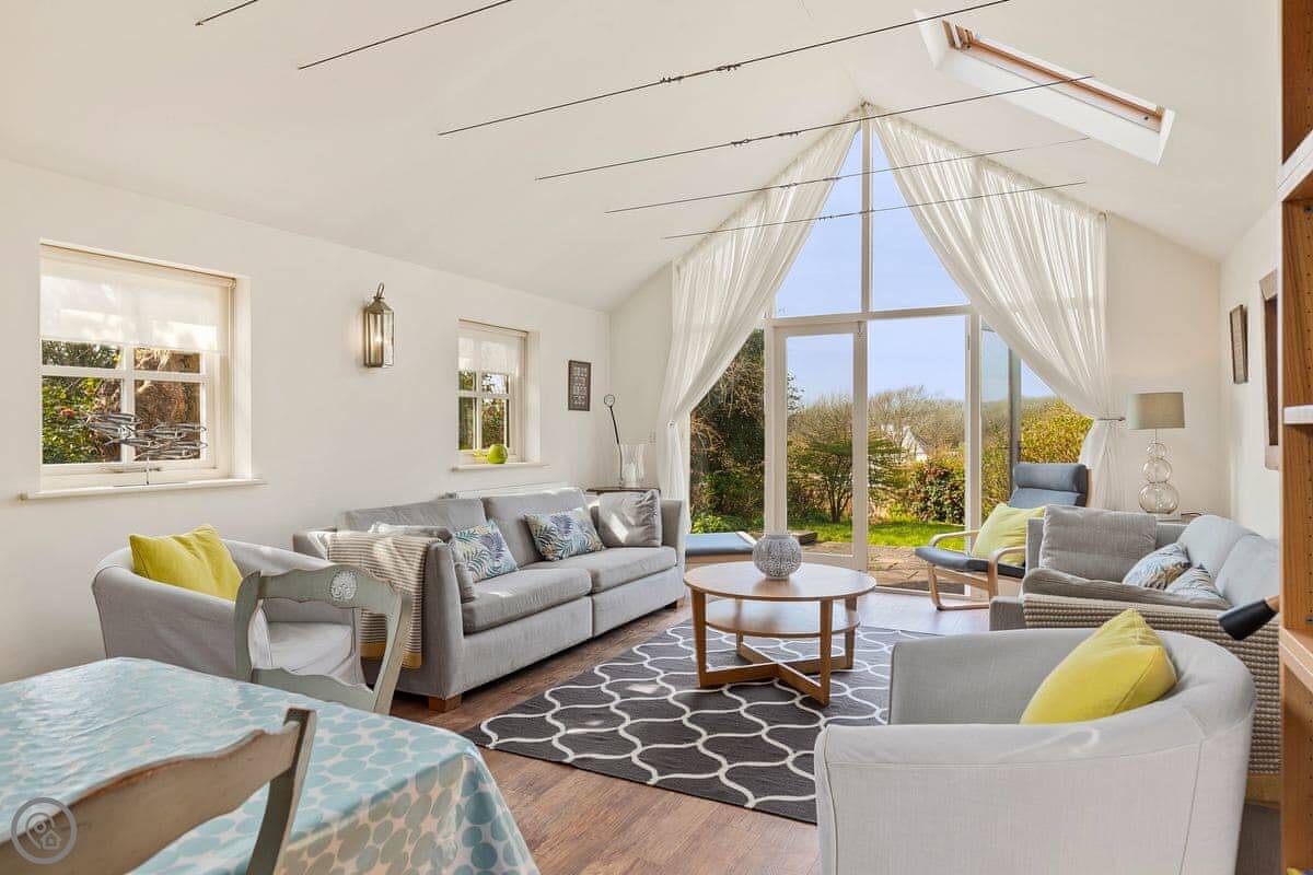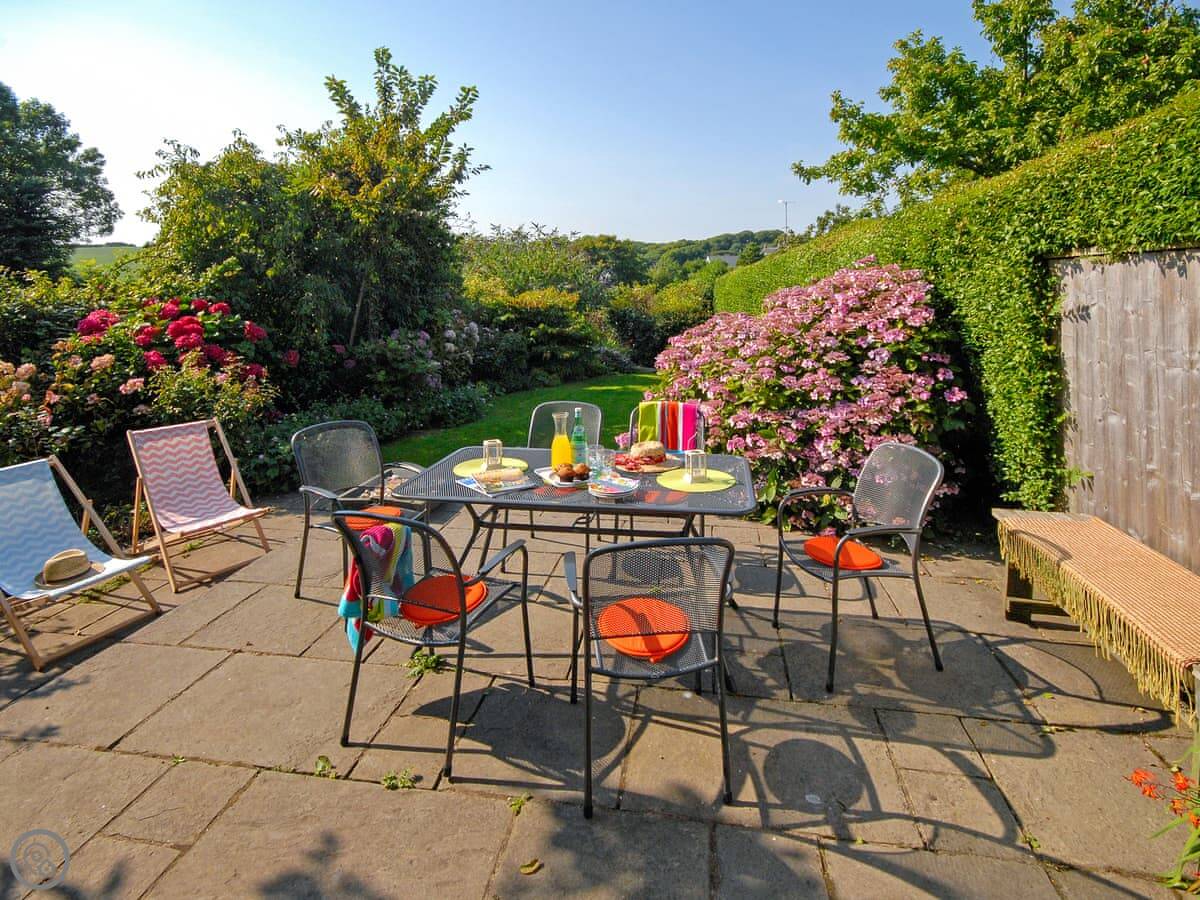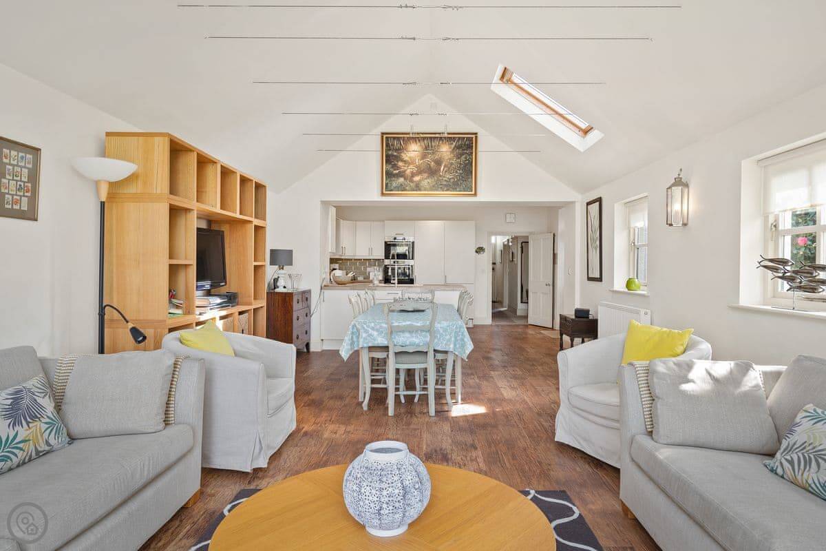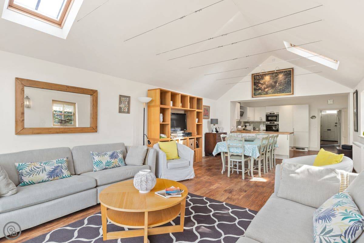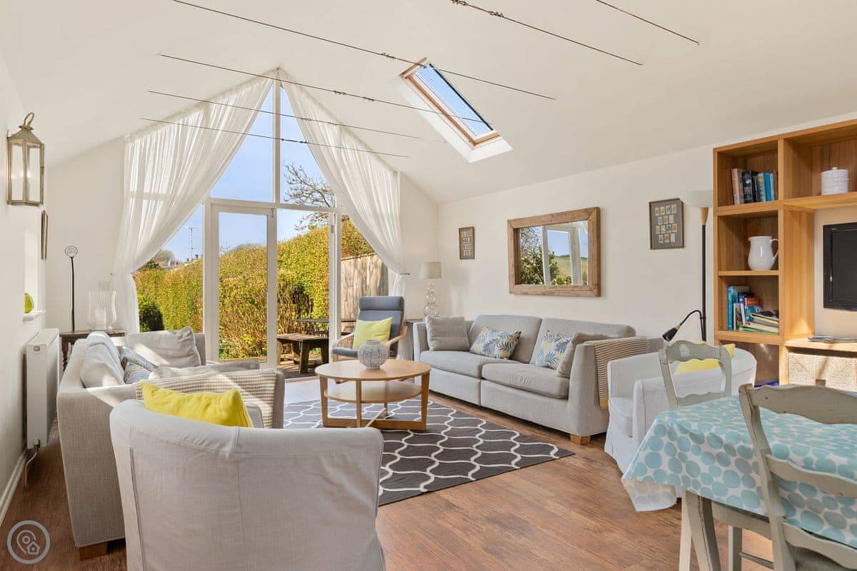 It sleeps eight, with four bedrooms and three bathrooms. The garden is enclosed and private.