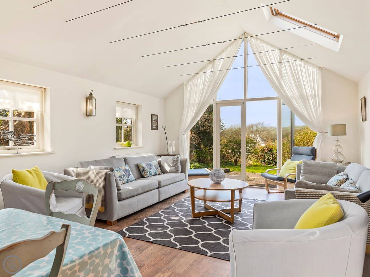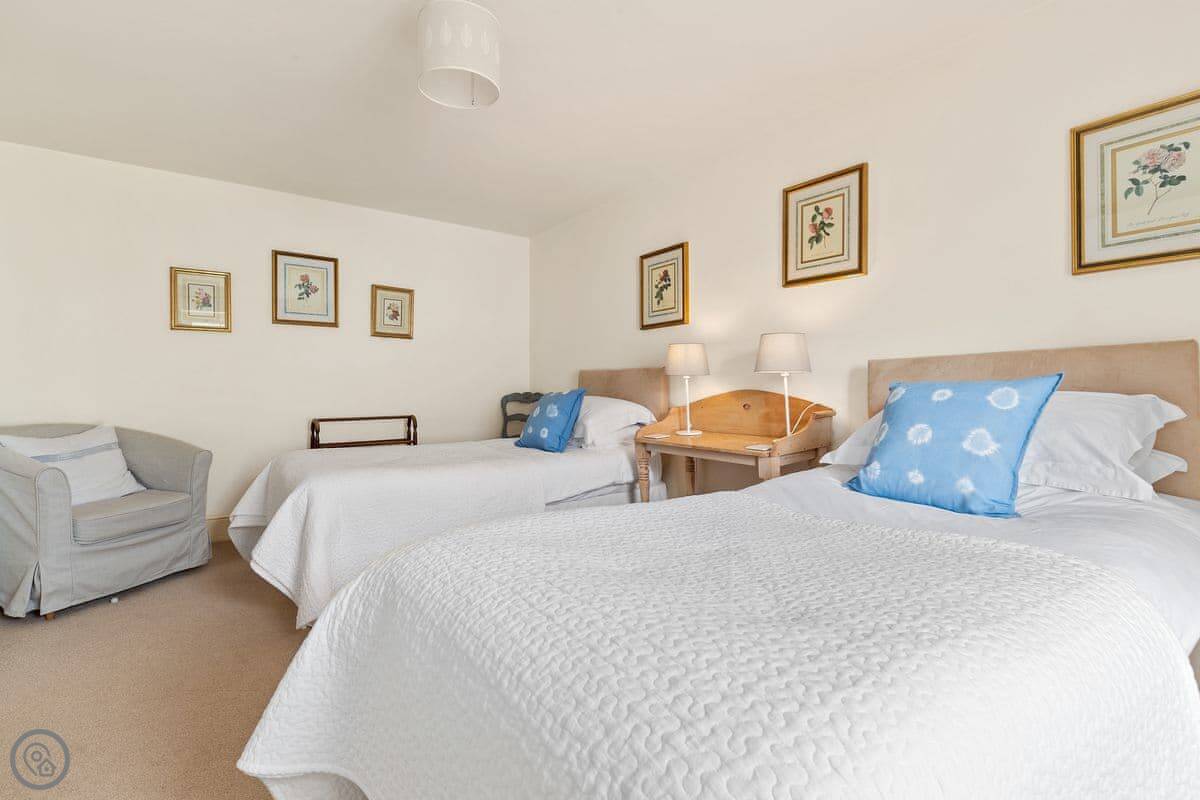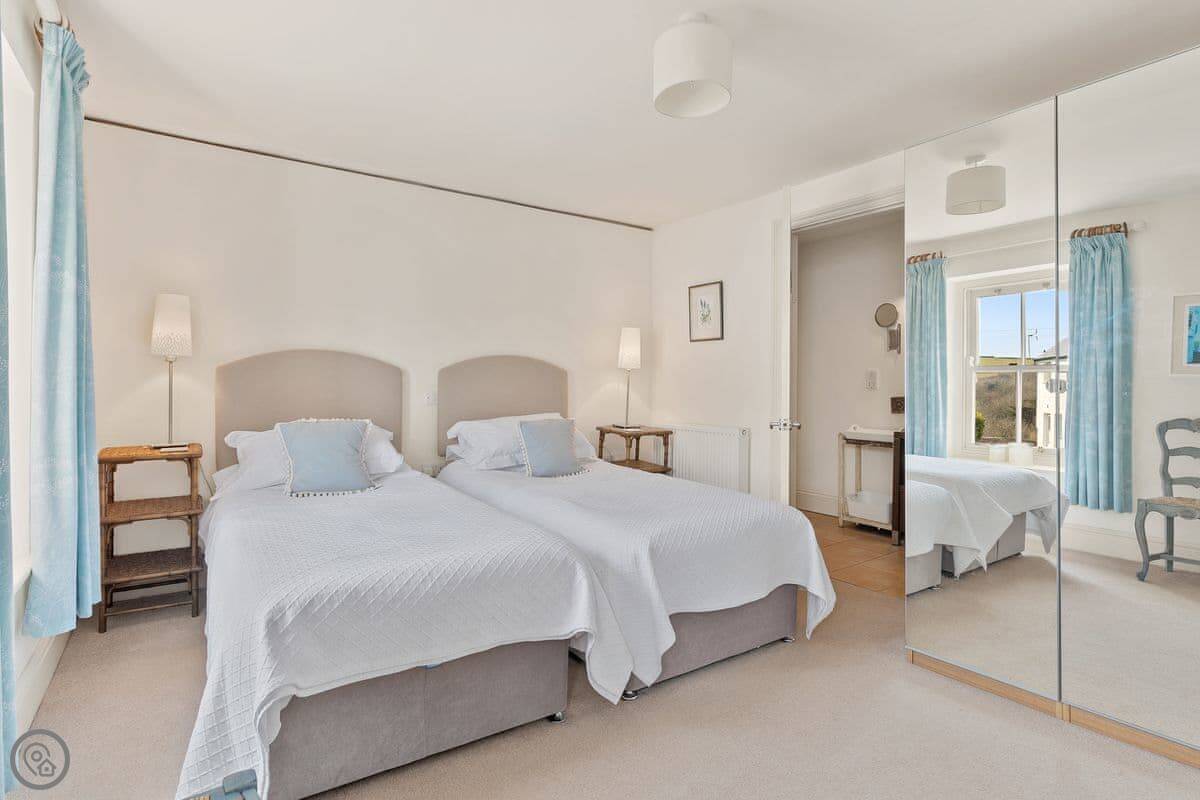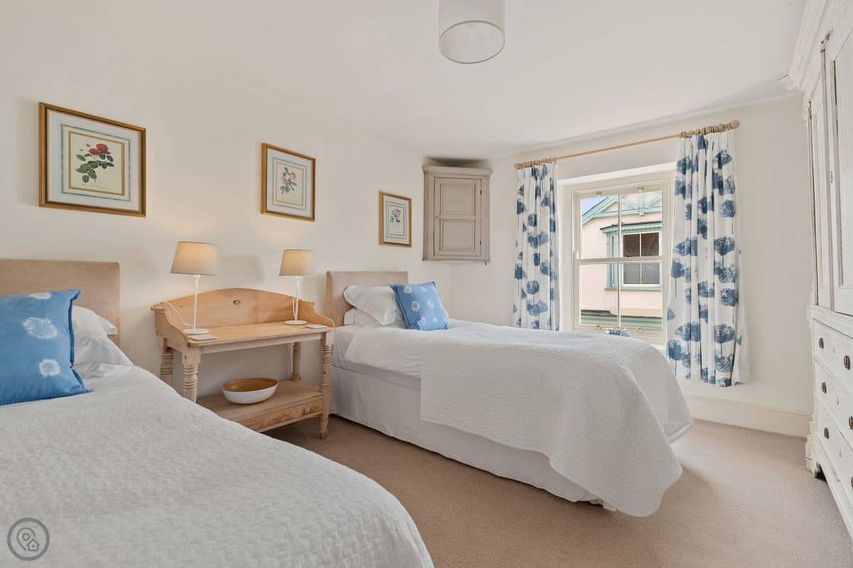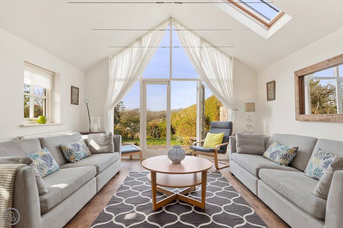 It sleeps eight, with four bedrooms and three bathrooms. The garden is enclosed and private.