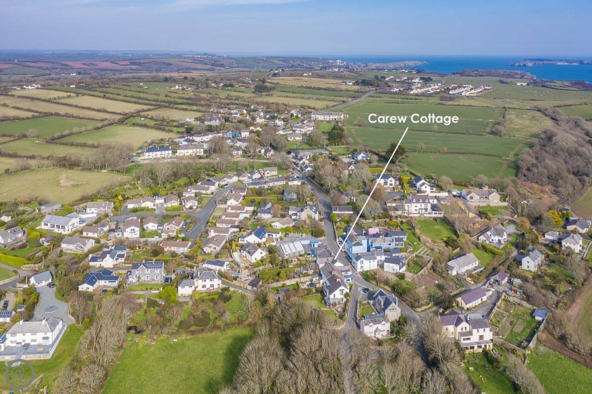 Carew Cottage is in Manorbier village in Pembrokeshire. It's a short walk from the beach, maybe five minutes.