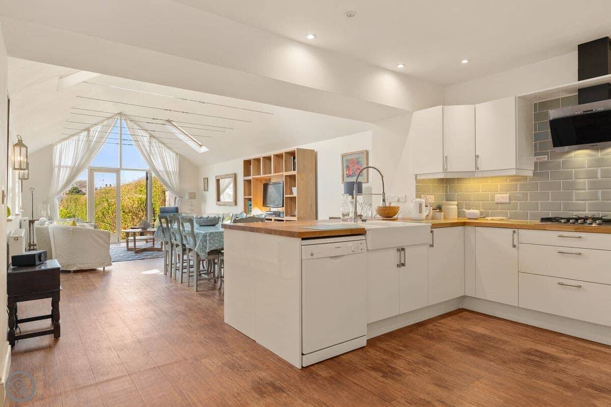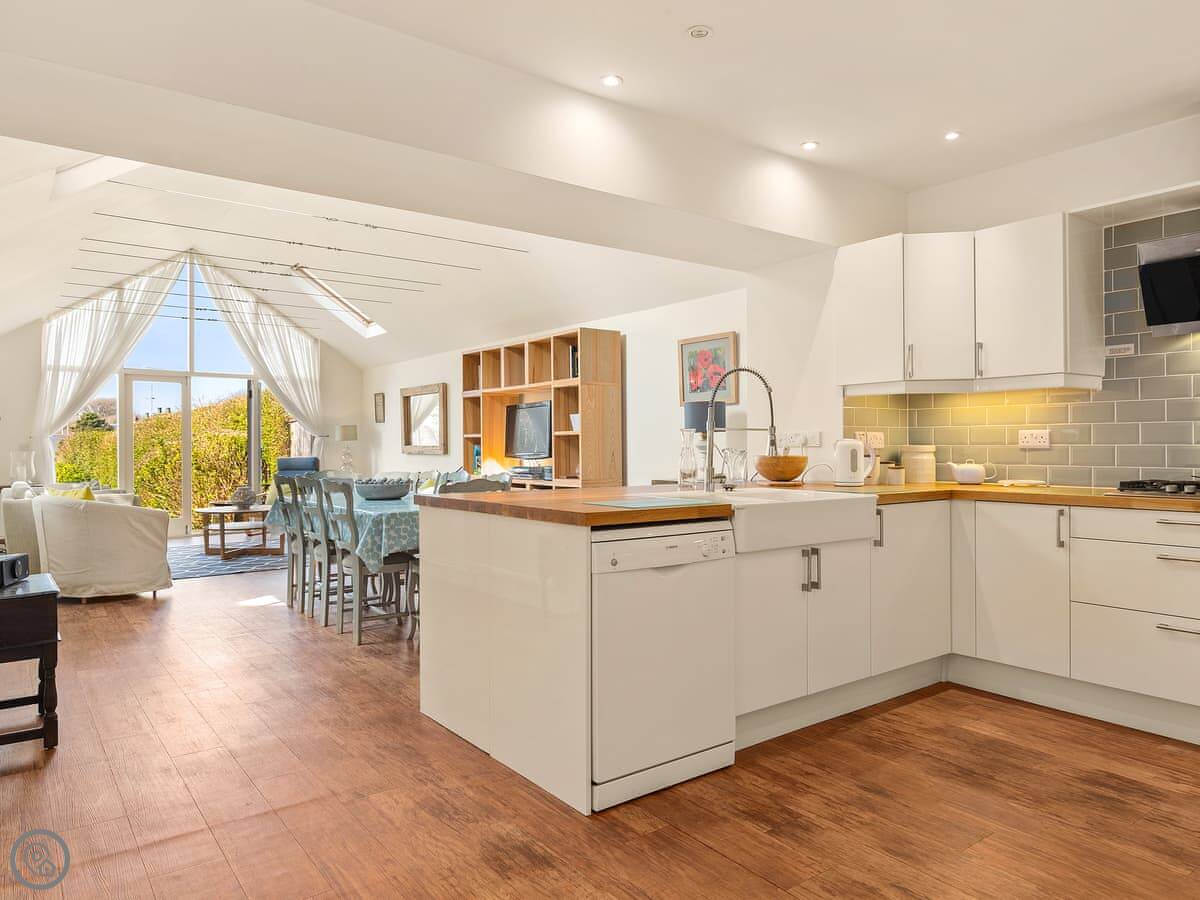 Facilities are all there: parking on site, WiFi, washing machine, dishwasher. The kitchen is open plan. It's got a 5 Star rating, so it's well equipped and maintained. We take one well-behaved dog.