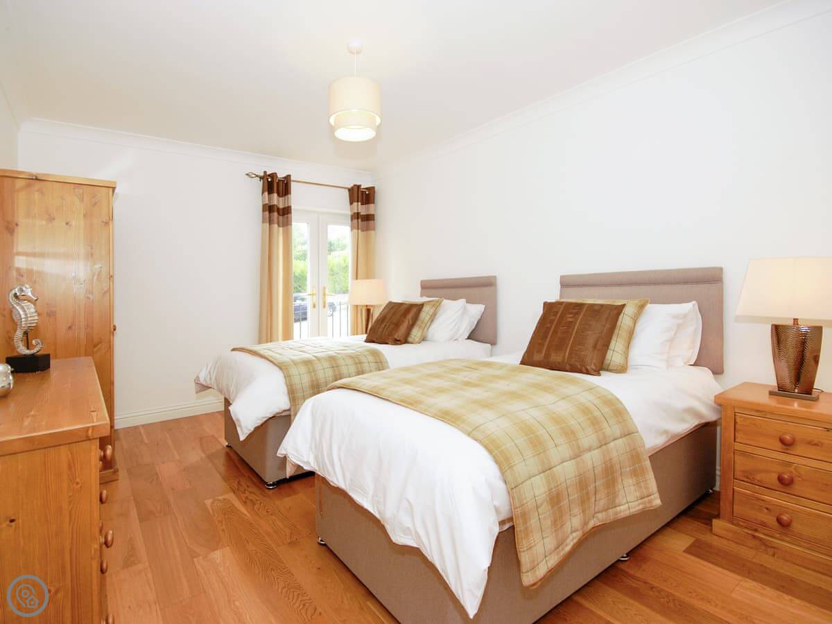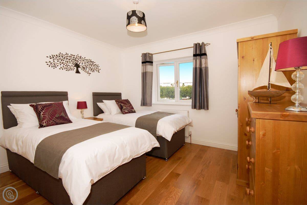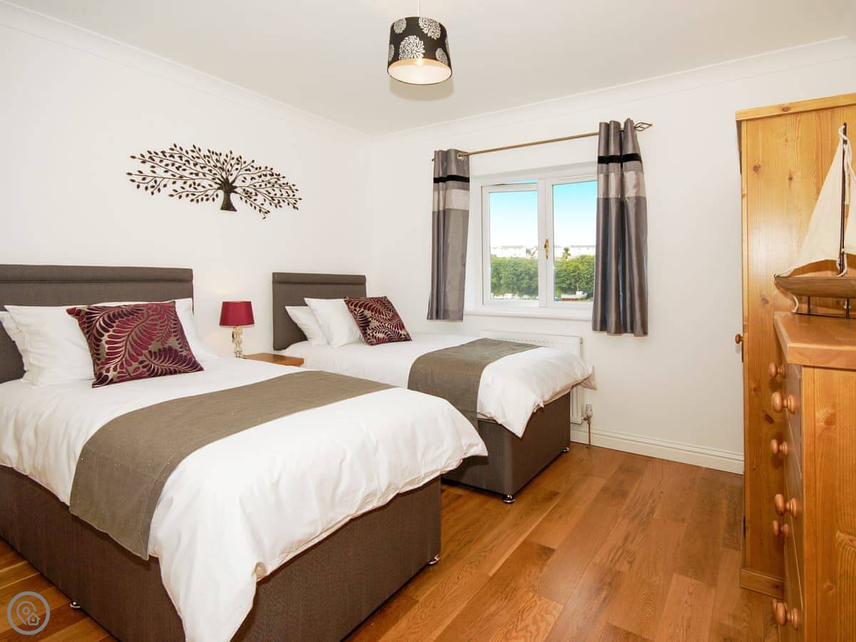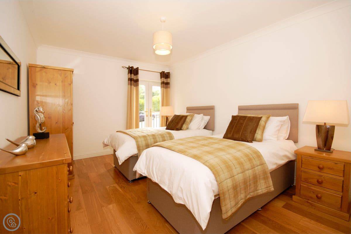 It sleeps six in three bedrooms. Each bedroom has its own bathroom, which is handy. It's a 5 Star place, so it's well equipped and in good order.