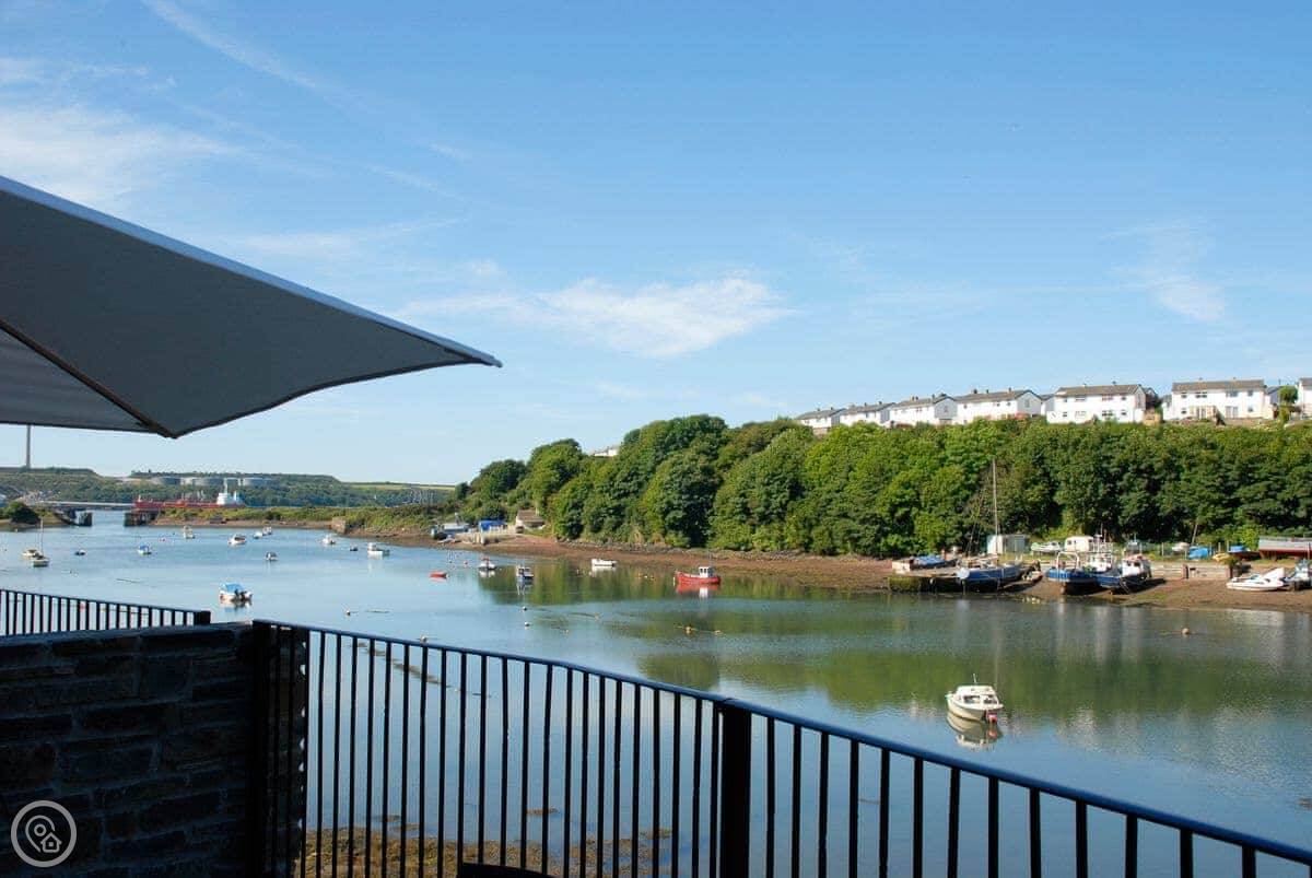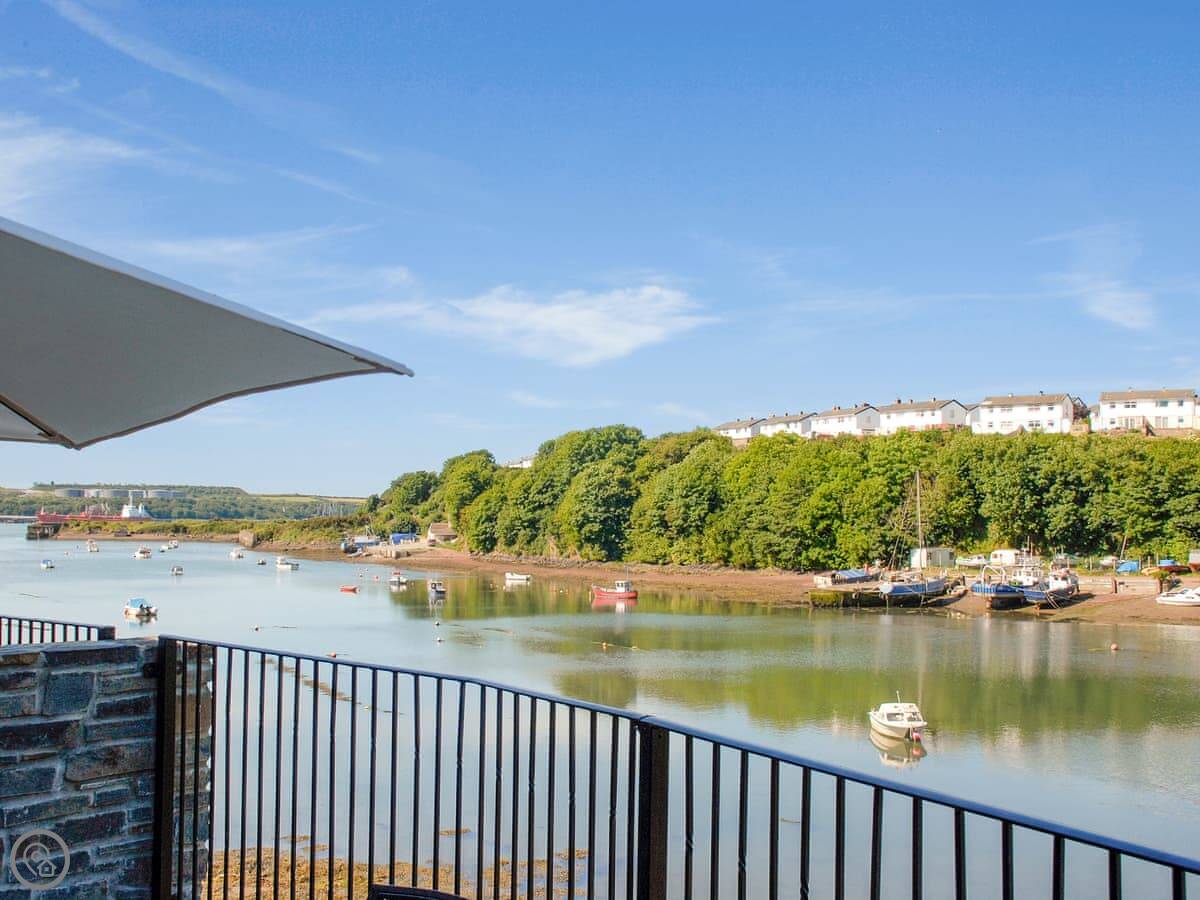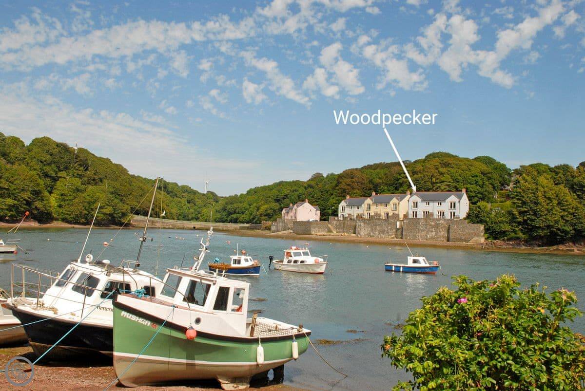 Woodpecker is in Milford Haven, looking out over an inlet called Castle Pill. It's a new build, one of a pair. You get your own terrace out the front.