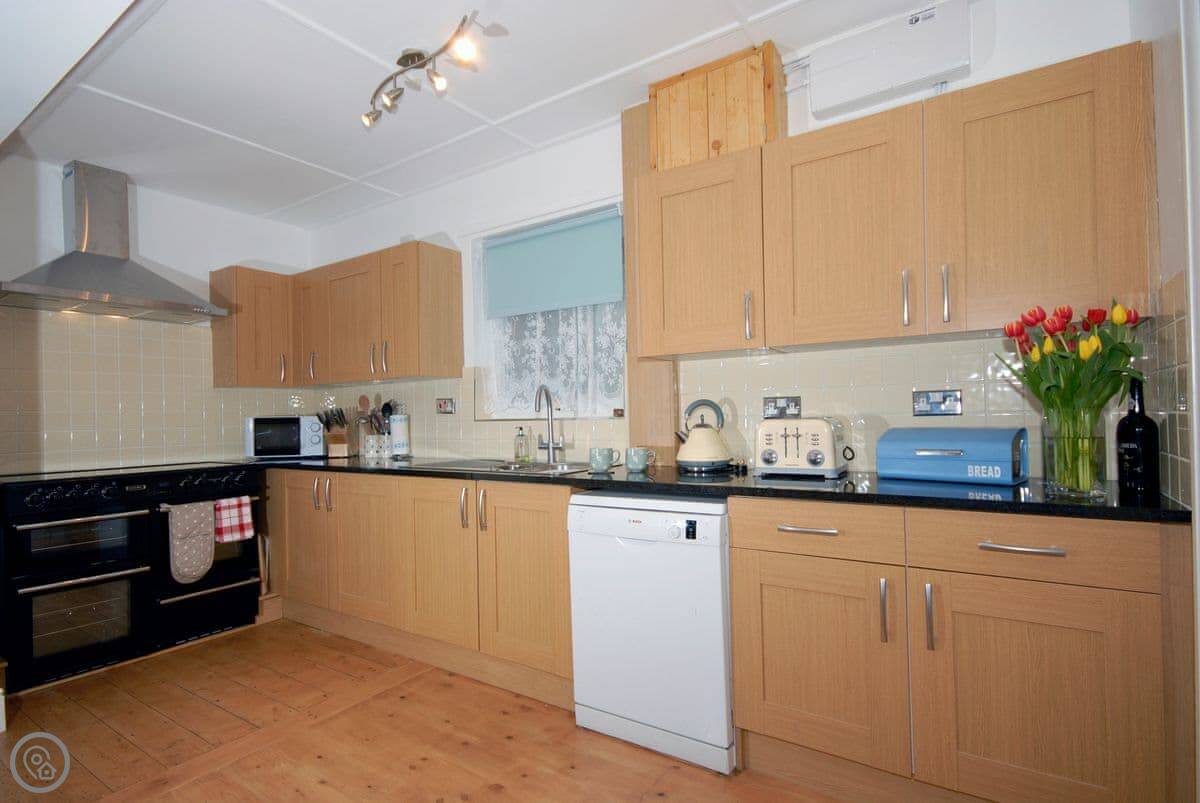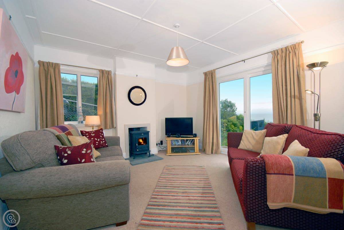 The living room has a wood burner and patio doors out to the terrace. There's a lot of Lego and some board games for kids, and a selection of DVDs. We’ve put in things like a cot, highchair, and stairgate because we know families use it.