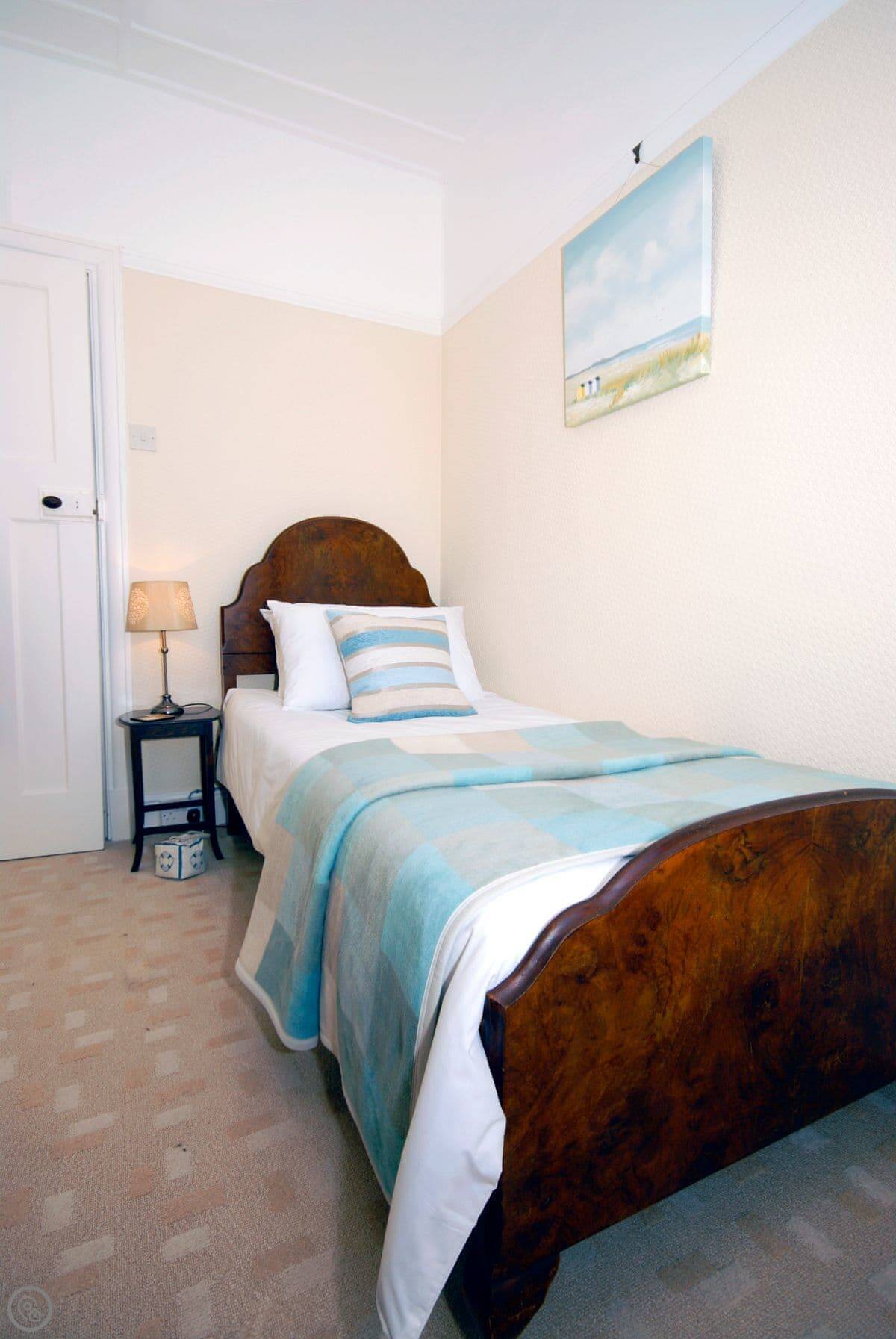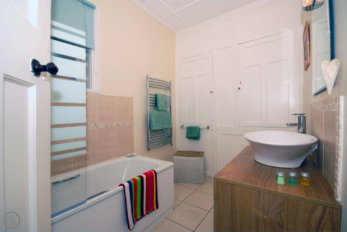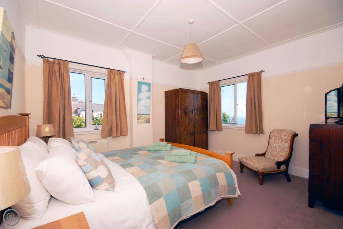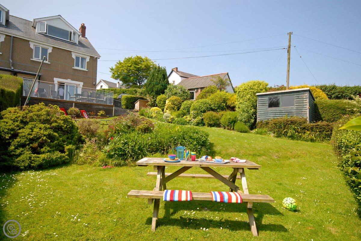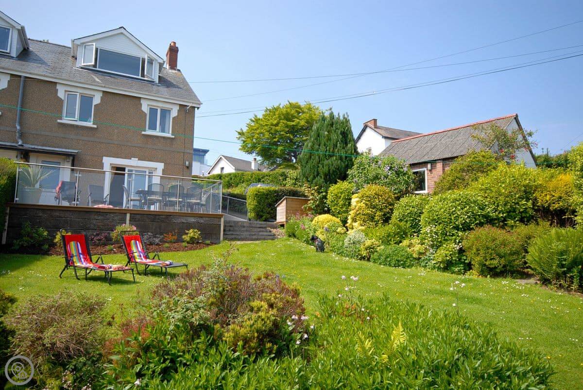 It sleeps up to seven people. Four bedrooms, two bathrooms. It's got a 4 Star rating. It's been recently done up, so it's comfortable and clean. The garden is big and paved, but it's on a slope. You need to be a bit steady on your feet.